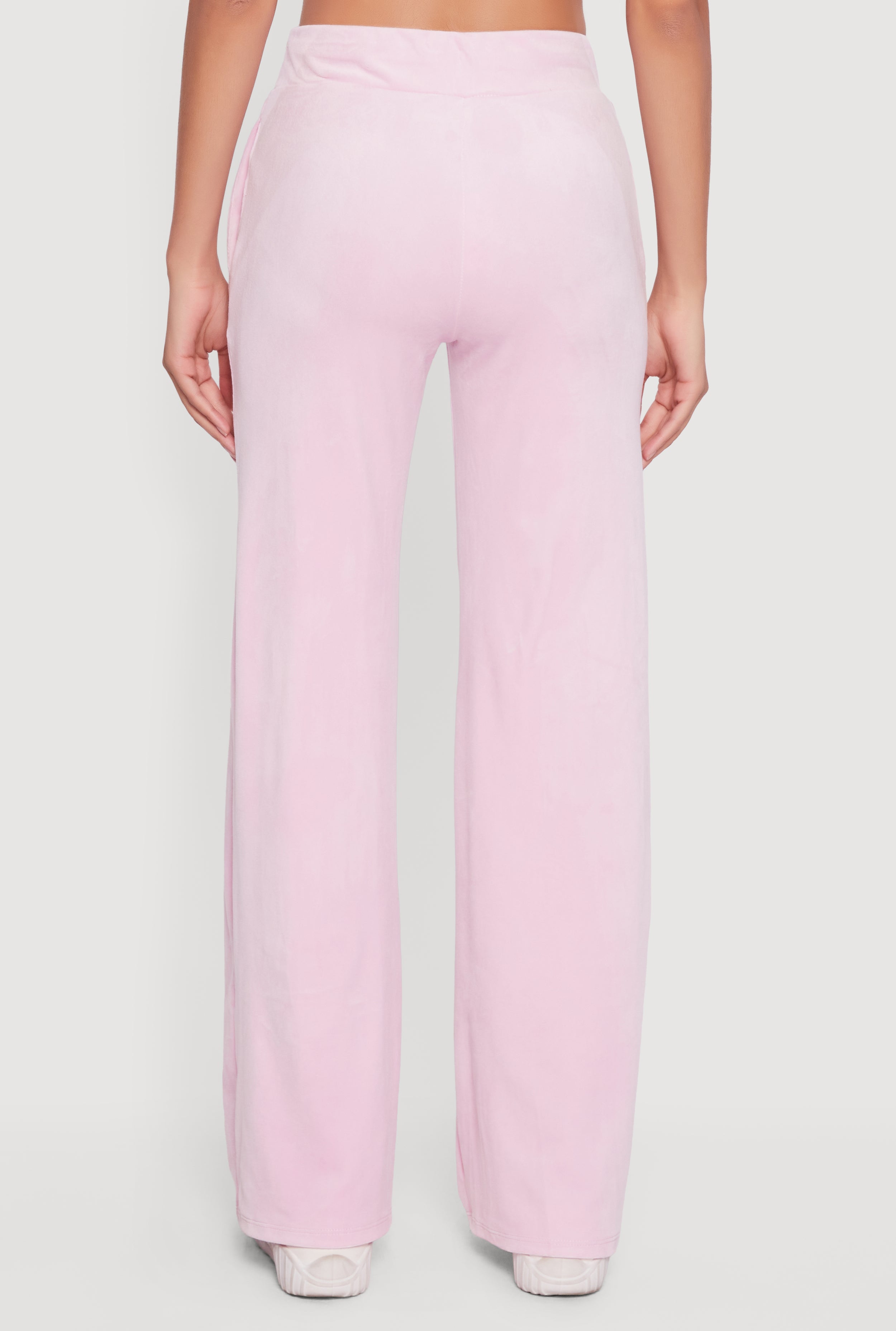 Step up your chill game with these Drawstring High Waisted Velour Sweatpants. Designed for ultimate comfort and effortless style, these sweatpants feature a flattering high waist and a trendy wide-leg cut that moves with you. The plush velour fabric feels soft against your skin, making them perfect for lounging at home or casual days out. Adjustable drawstring closure lets you customize your fit while the classic solid color makes it easy to pair with any top.