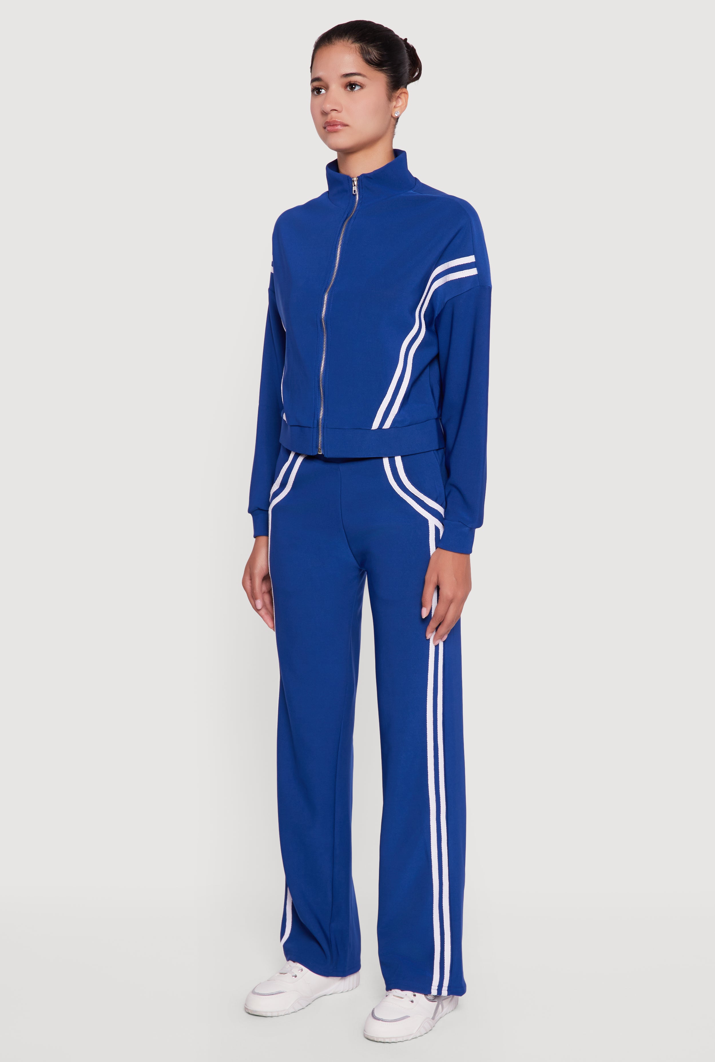 Long Sleeve Mock Neck Varsity Stripe Detail Track Jacket