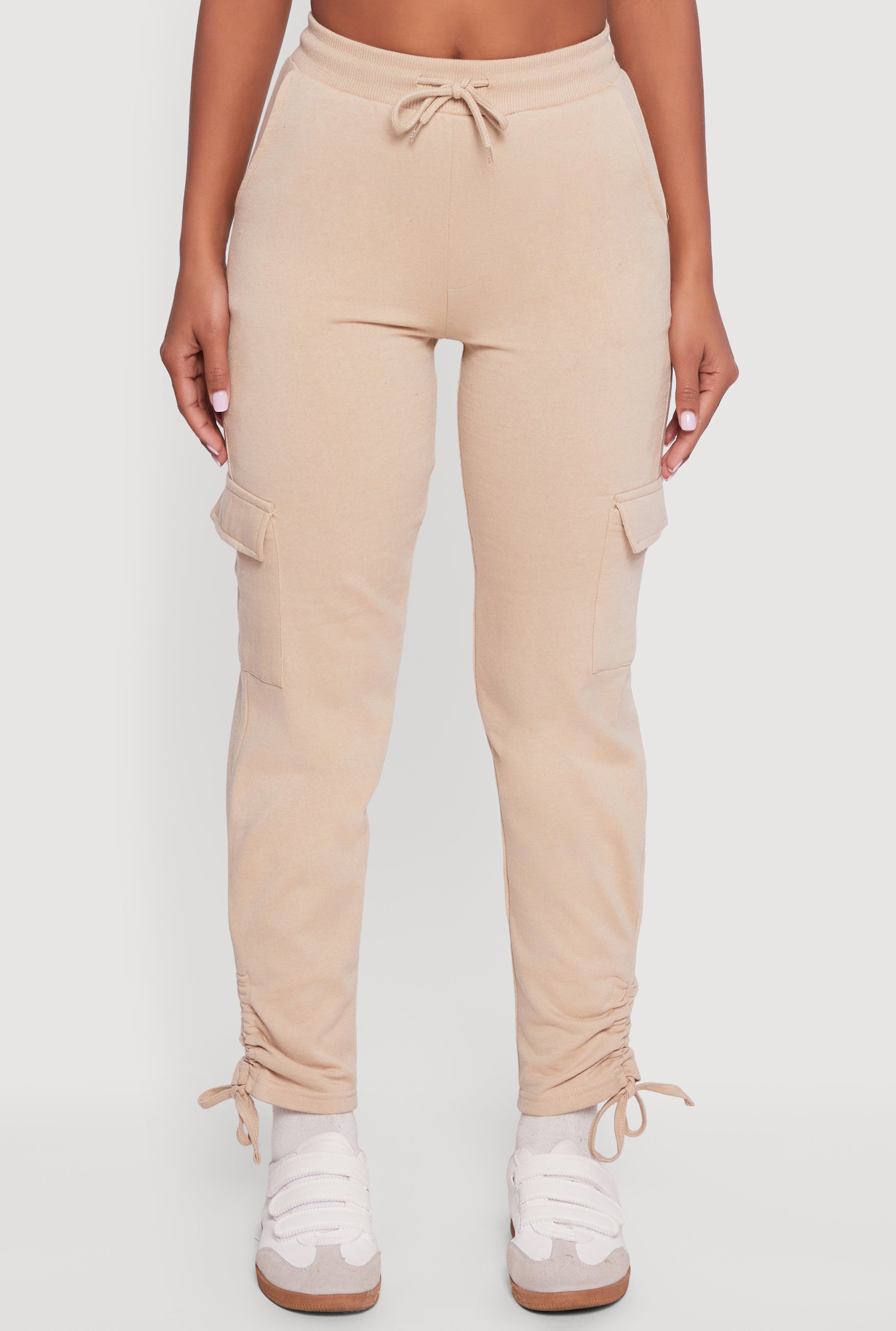 Step up your casual game with these High Waisted Cargo Pocket Side Ruched Sweatpants. Designed for those who crave comfort without sacrificing style, these sweatpants feature a flattering high waist and sleek slim straight legs that hit right at the ankle. The side ruching adds a trendy twist while the cargo pockets bring a cool, functional edge. Made from cozy fleece and finished with an adjustable drawstring waist, they are perfect for lounging, running errands, or athleisure vibes that turn heads.