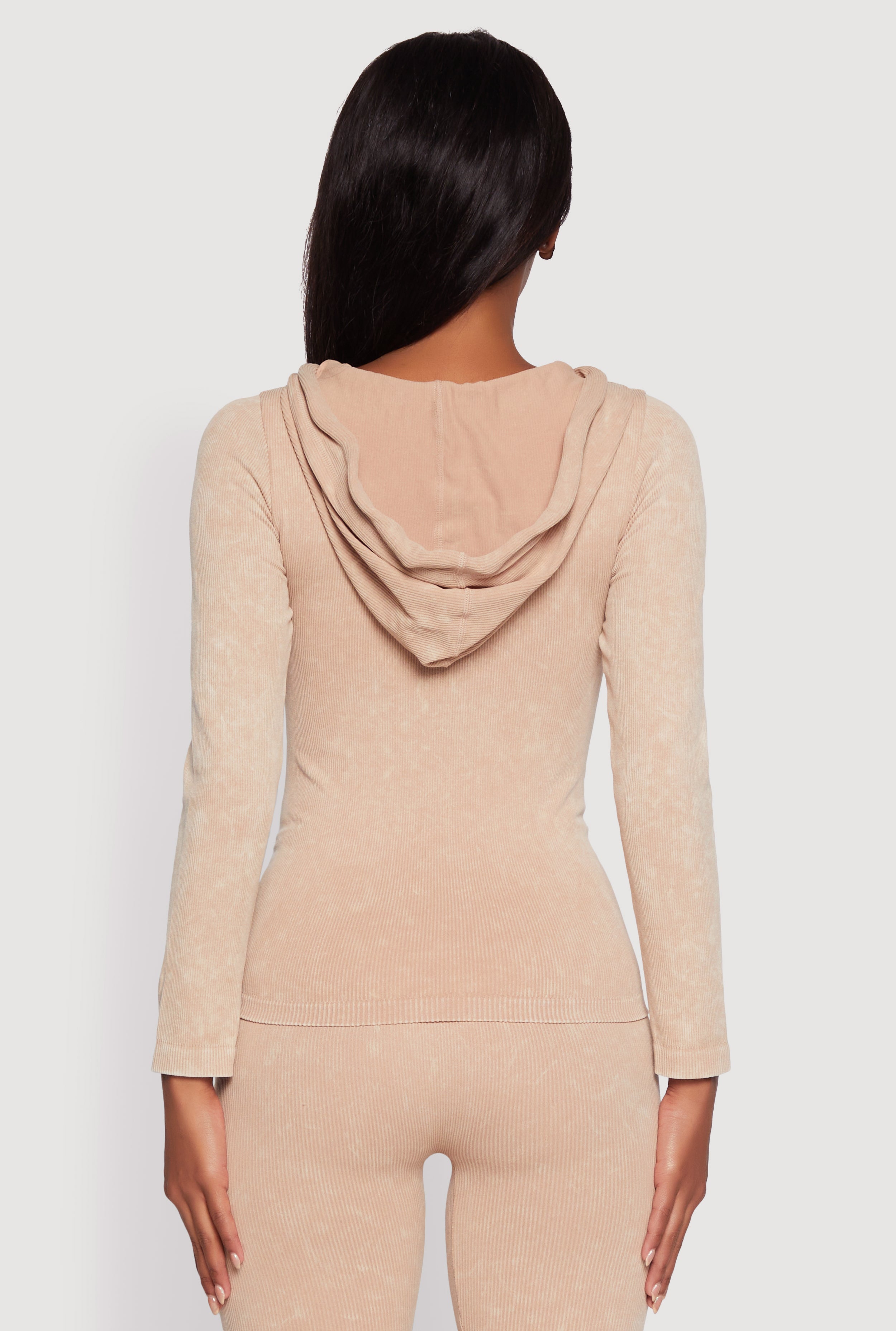 Seamless Acid Wash Zip Front Hooded Sweatshirt