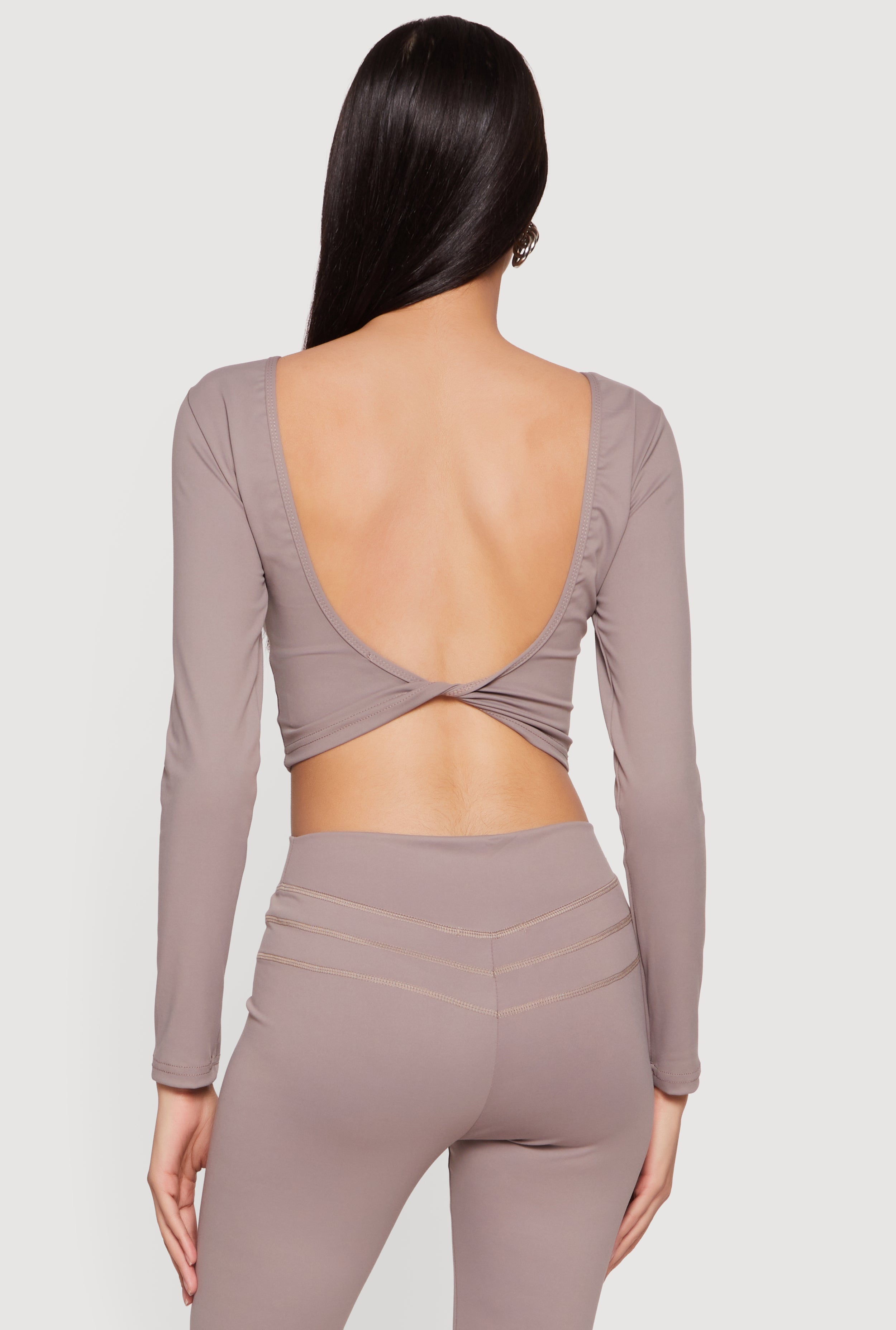 Long Sleeve Boat Neck Open Twist Back Crop Top