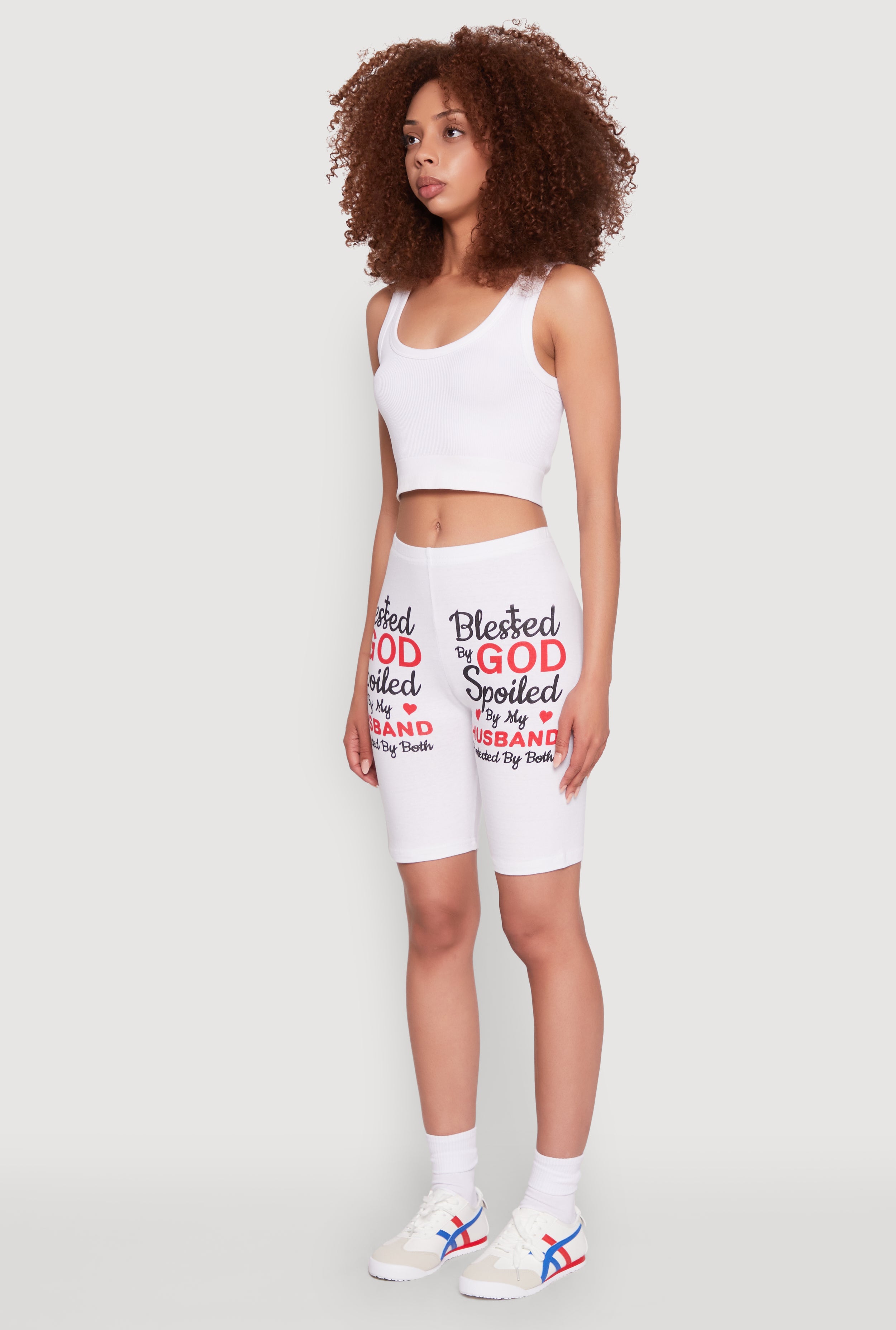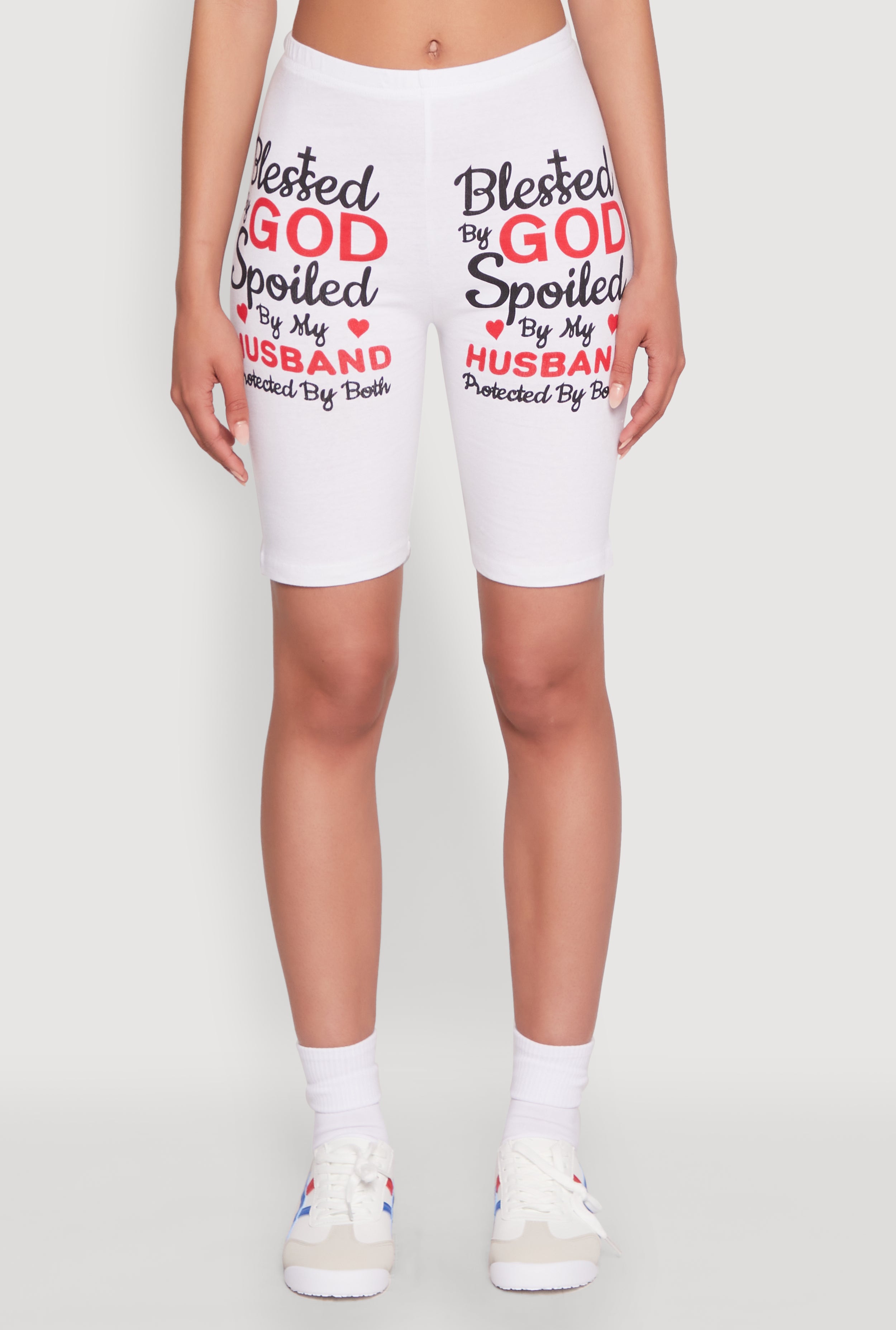 Get ready to turn heads and feel empowered with our Blessed By God Graphic Biker Shorts. Perfect for a quick workout or just lounging in style, these shorts combine comfort with a bold statement. Featuring the uplifting phrase "Blessed By God Spoiled By My Husband Protected By Both," they’re your new go-to for showing off your faith and fabulousness. Whether you're hitting the gym or running errands, these high-waisted bike shorts are designed to keep you feeling confident and comfortable all day long.