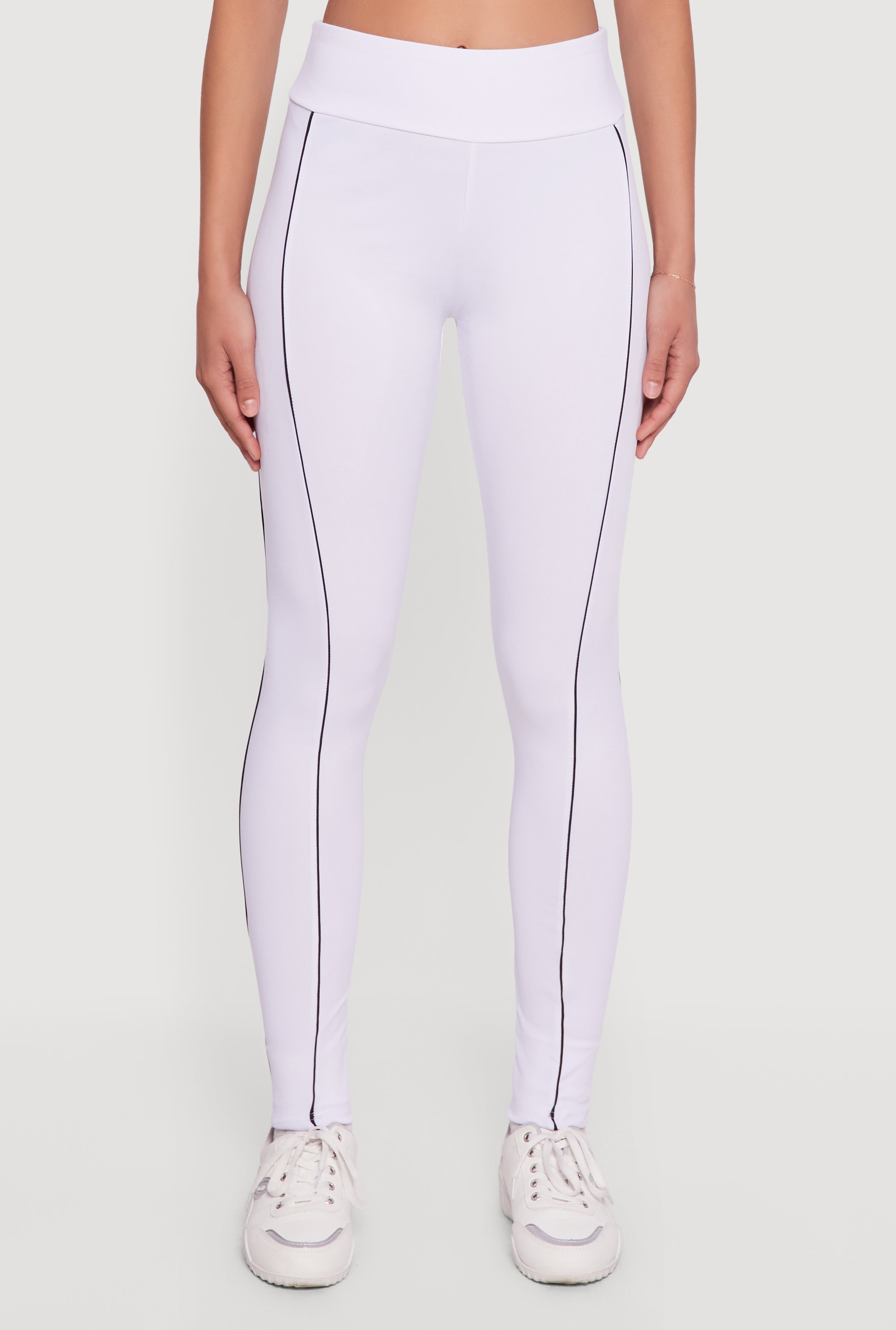 Step up your casual game with these Contrast Trim Pipping Mid Rise Leggings. Designed to hug your curves with a sleek skinny fit, these ankle-length leggings feature eye-catching graphic print details and a trendy mid-rise waist for all-day comfort. Perfect for running errands, lounging, or layering with your favorite oversized tee, they bring effortless style to your everyday look.