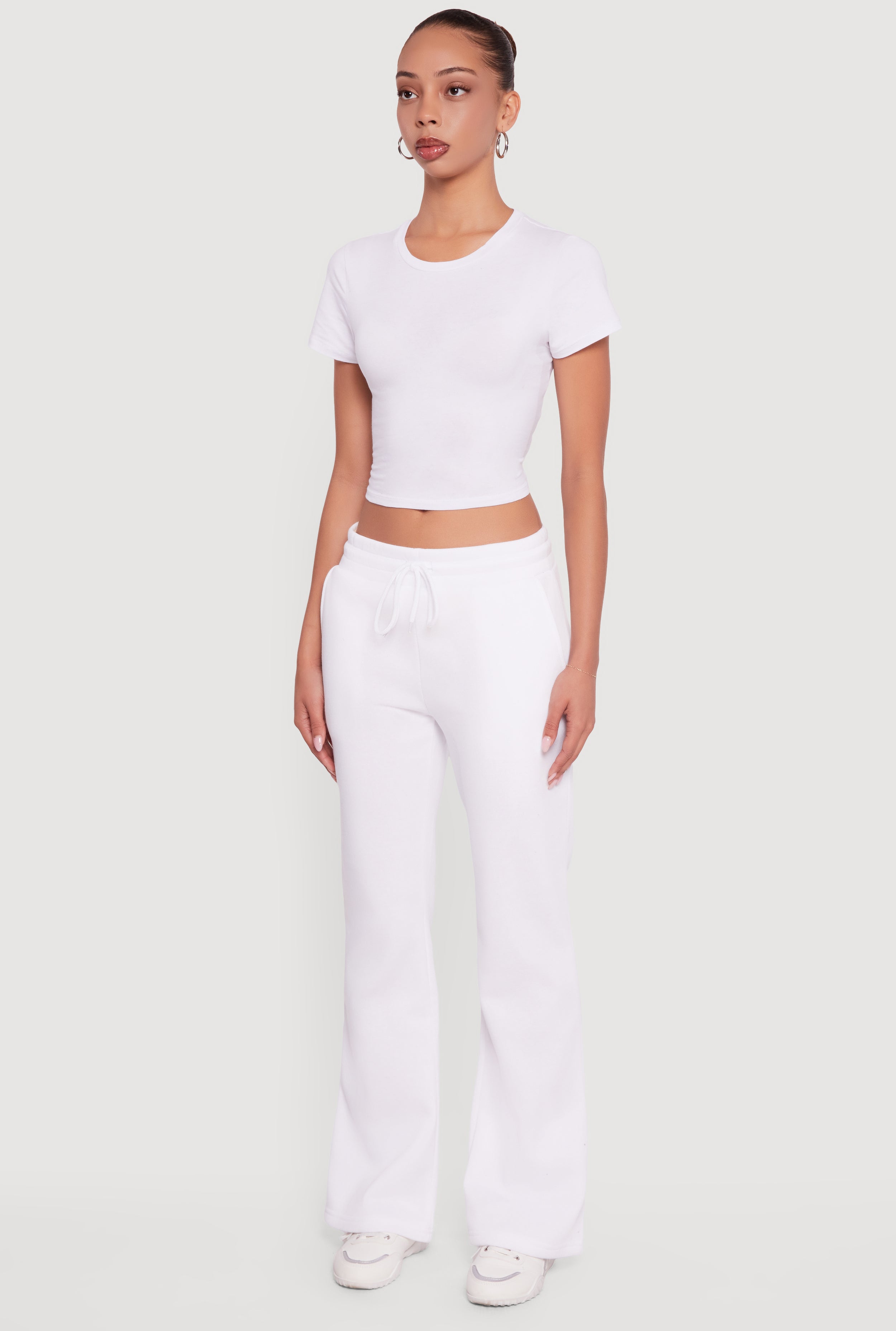Step up your cozy game with these Drawstring Waist Fleece Lined Boot Cut Sweatpants. Designed for those who want to stay warm without sacrificing style, these sweatpants feature a flattering mid rise and a trendy boot cut silhouette that adds a little flair to your casual look. The soft fleece lining keeps you comfy on chilly days, while the adjustable drawstring waist ensures the perfect fit every time. Whether you're lounging at home or running errands, these sweatpants bring effortless cool and comfort together.