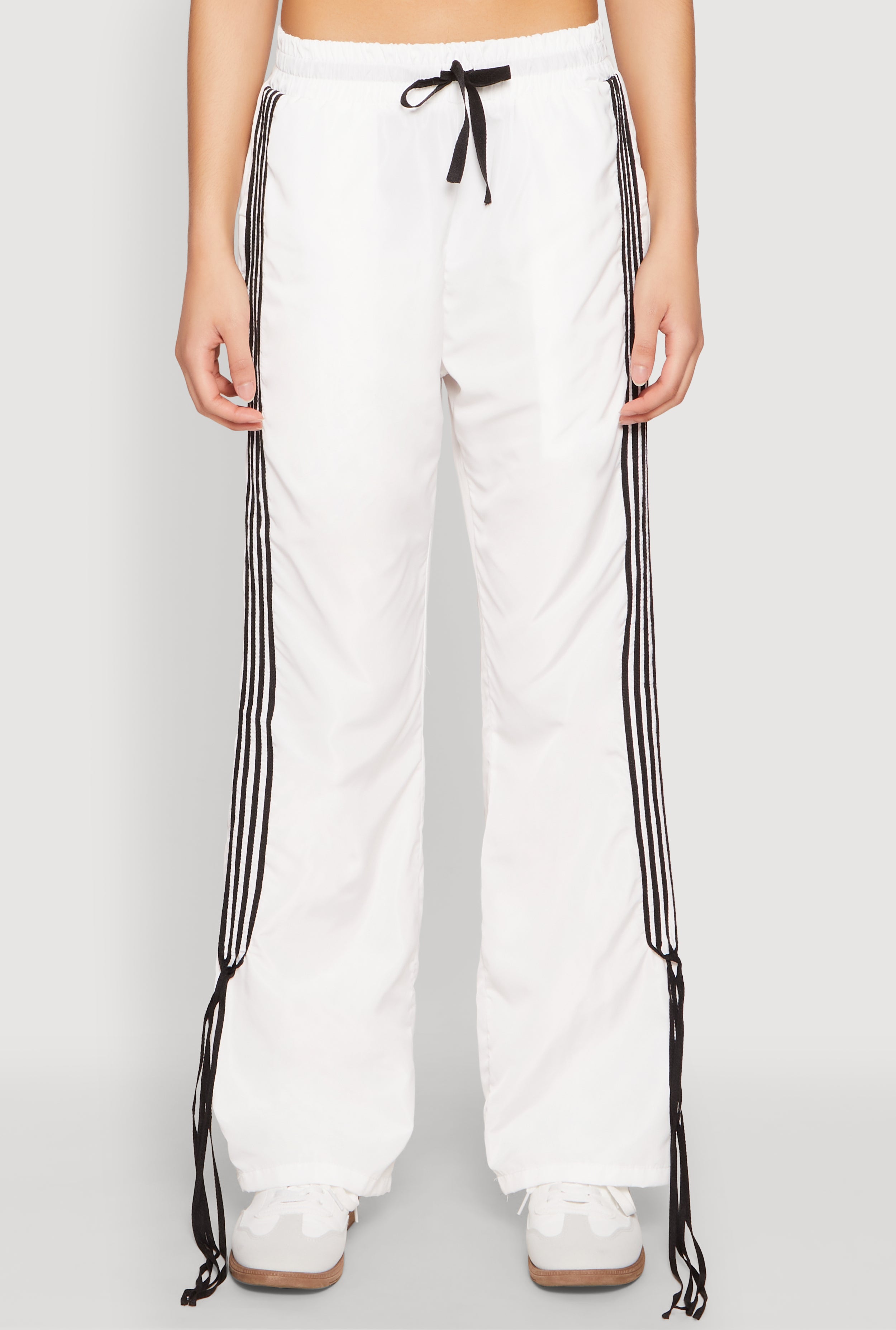 Step up your athleisure game with our Tie Side Varsity Stripe Track Pants. Designed for comfort and style, these wide-leg pants are perfect for your active lifestyle or just lounging in style. The bold varsity stripe detail adds a sporty vibe that makes every outfit pop. Whether you're hitting the gym or running errands, these pants are your new go-to for effortless cool.