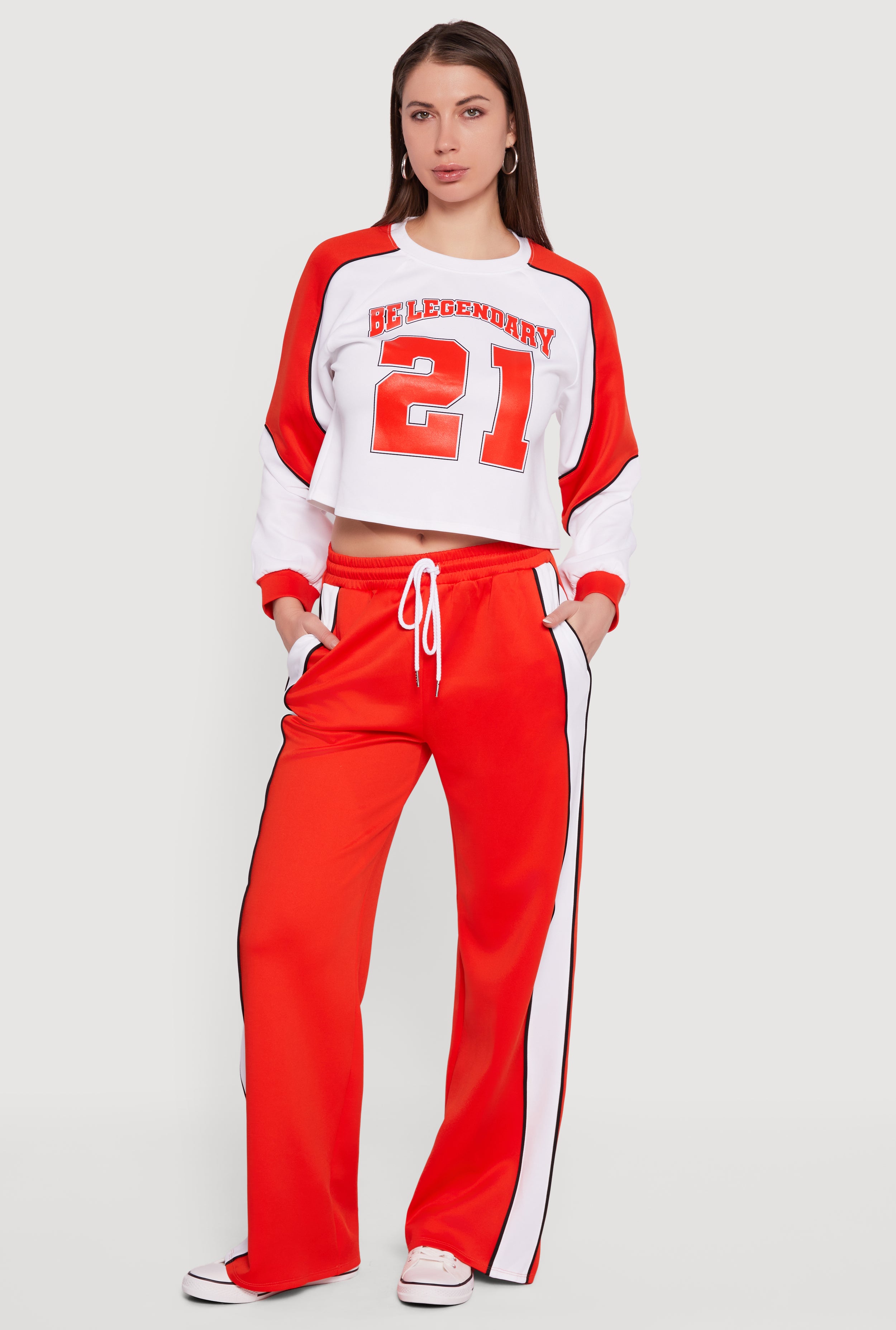 Varsity Stripe Side Graphic Fold Over Pull On Pants