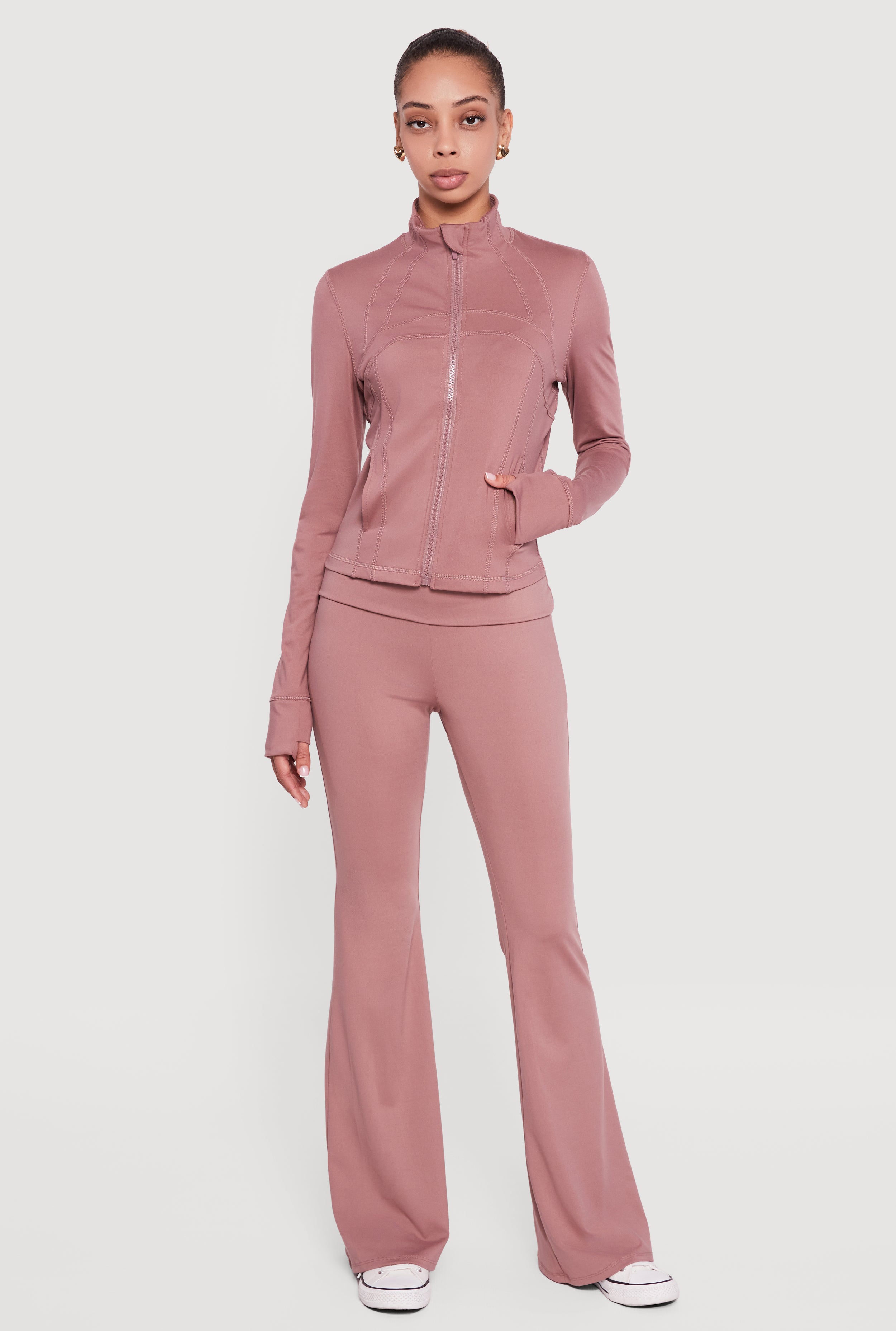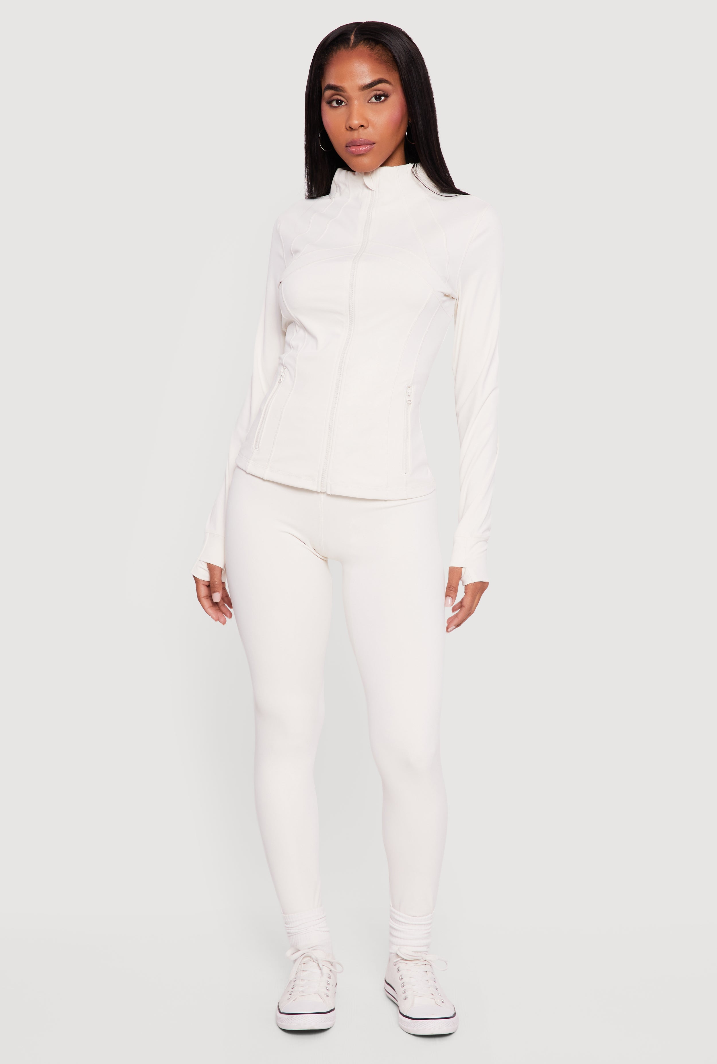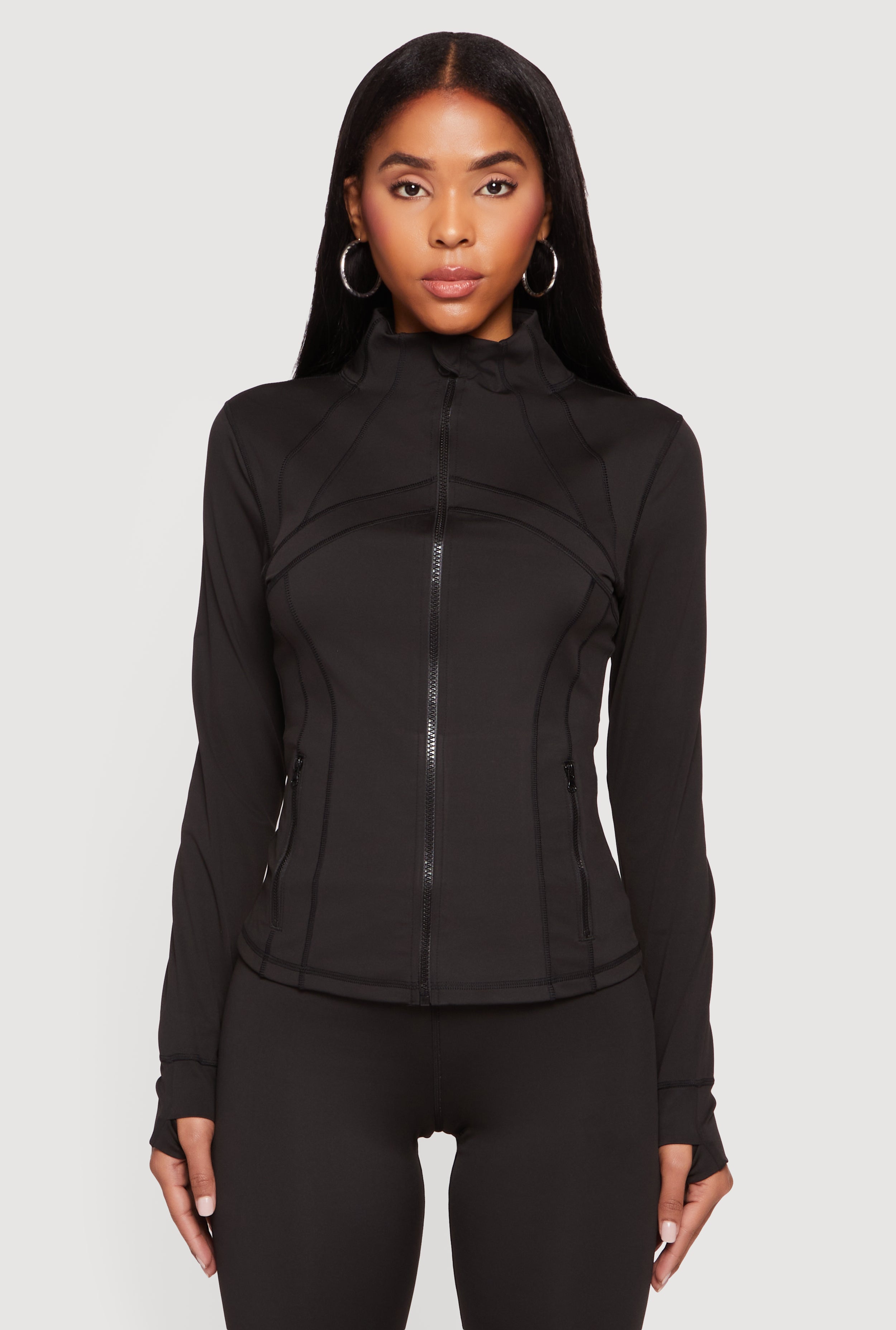Long Sleeve Mock Neck Zip Front Jacket with Thumb Holes