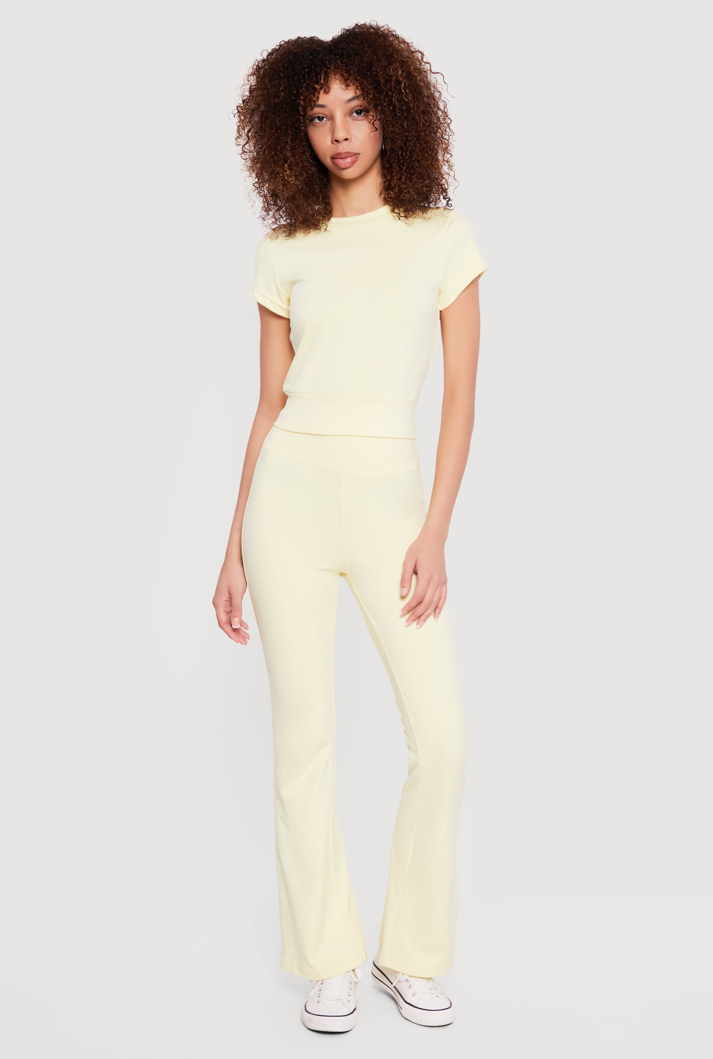 Solid High Waisted Flare Leg Yoga Pants