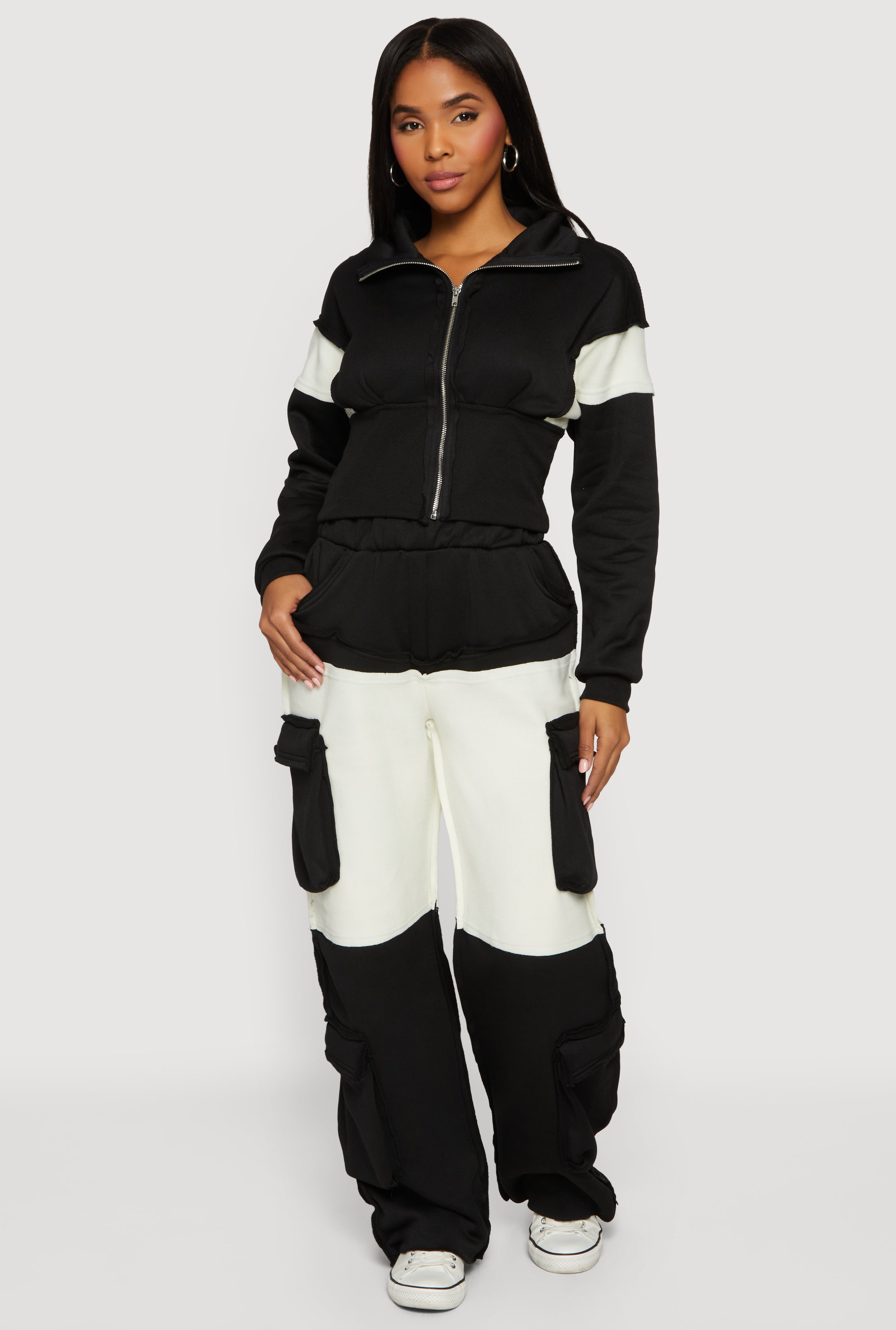 Color Block Wide Leg Utility Sweatpants