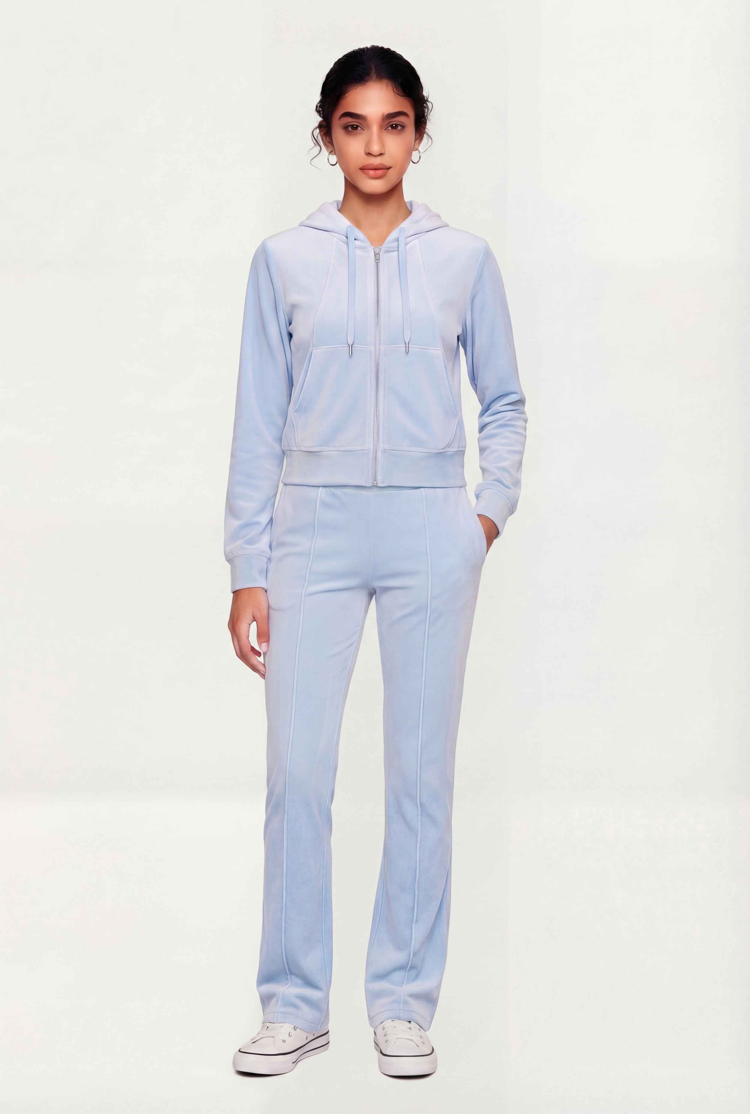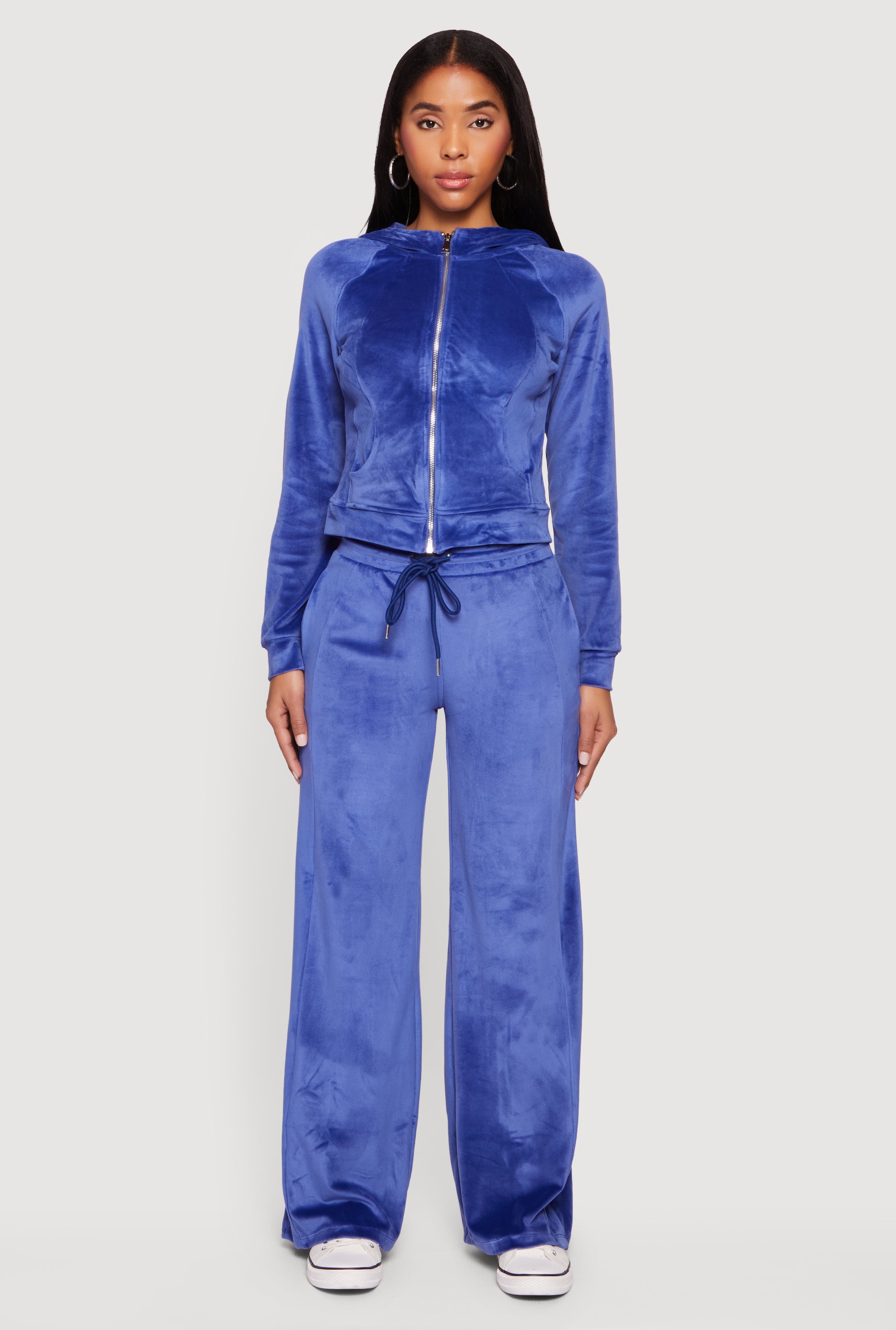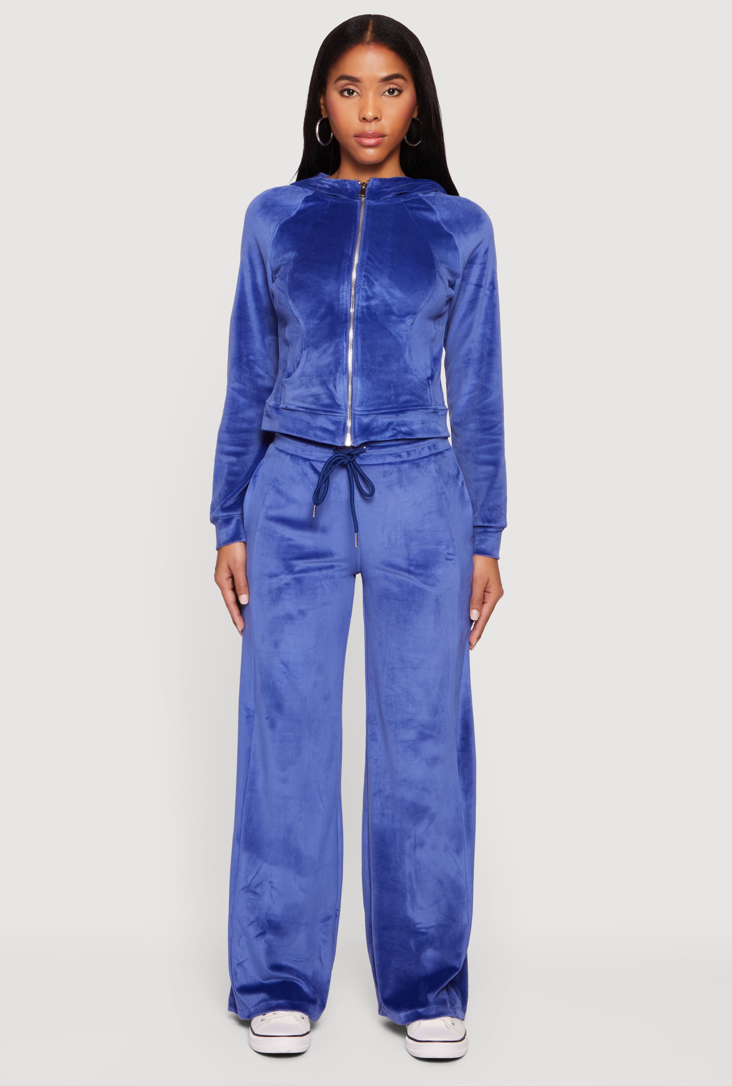 Solid Velour Zip Front Hoodie
