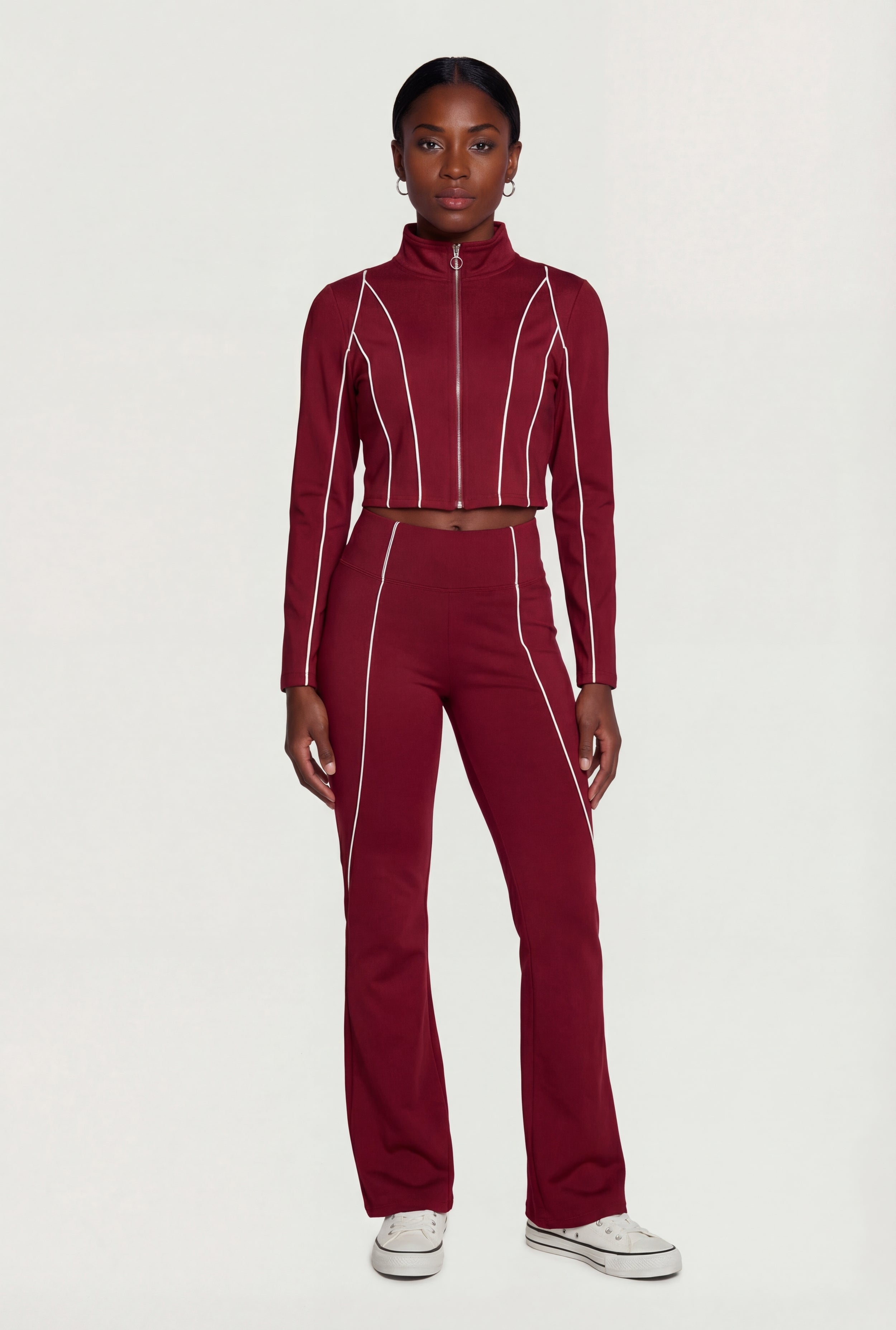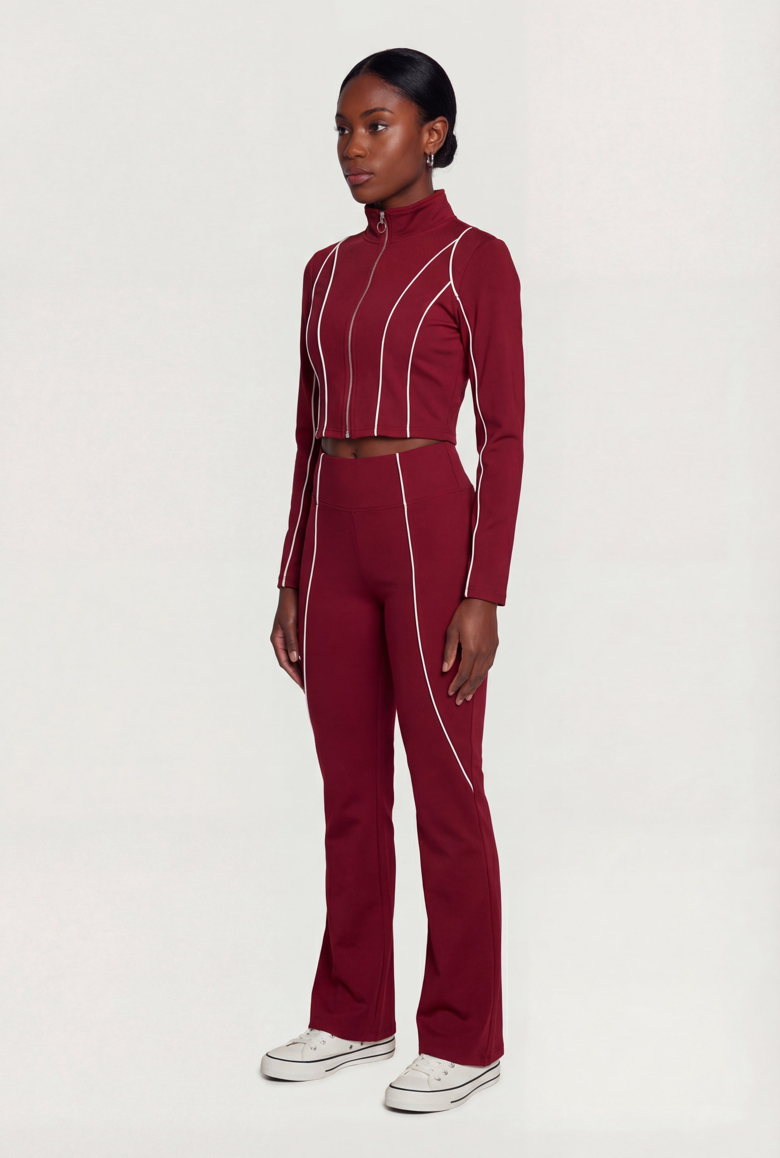 Contrast Trim Pipping Zip Front Mock Neck Track Jacket