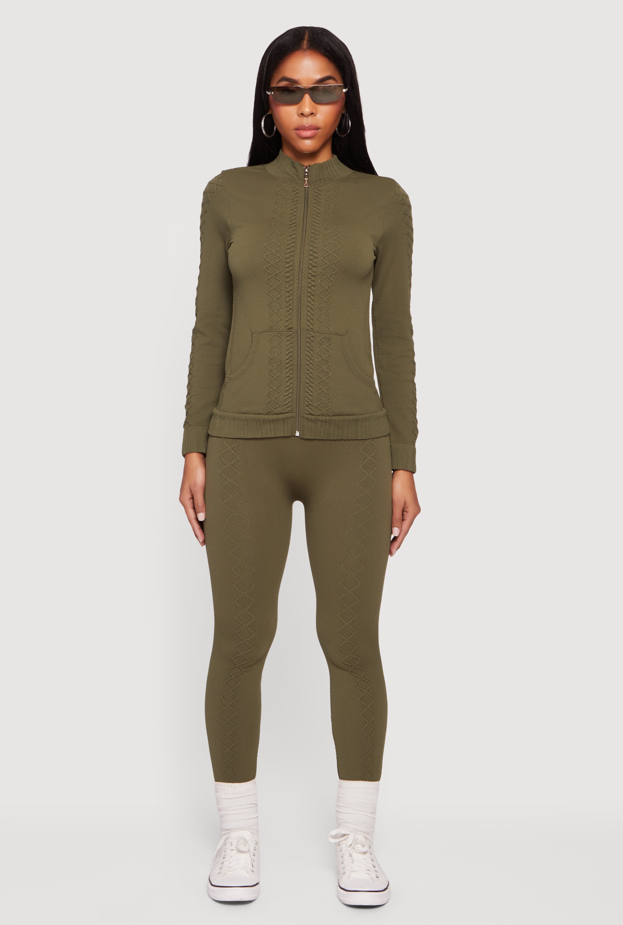 Trendy Textured Knit Zip Front Track Jacket