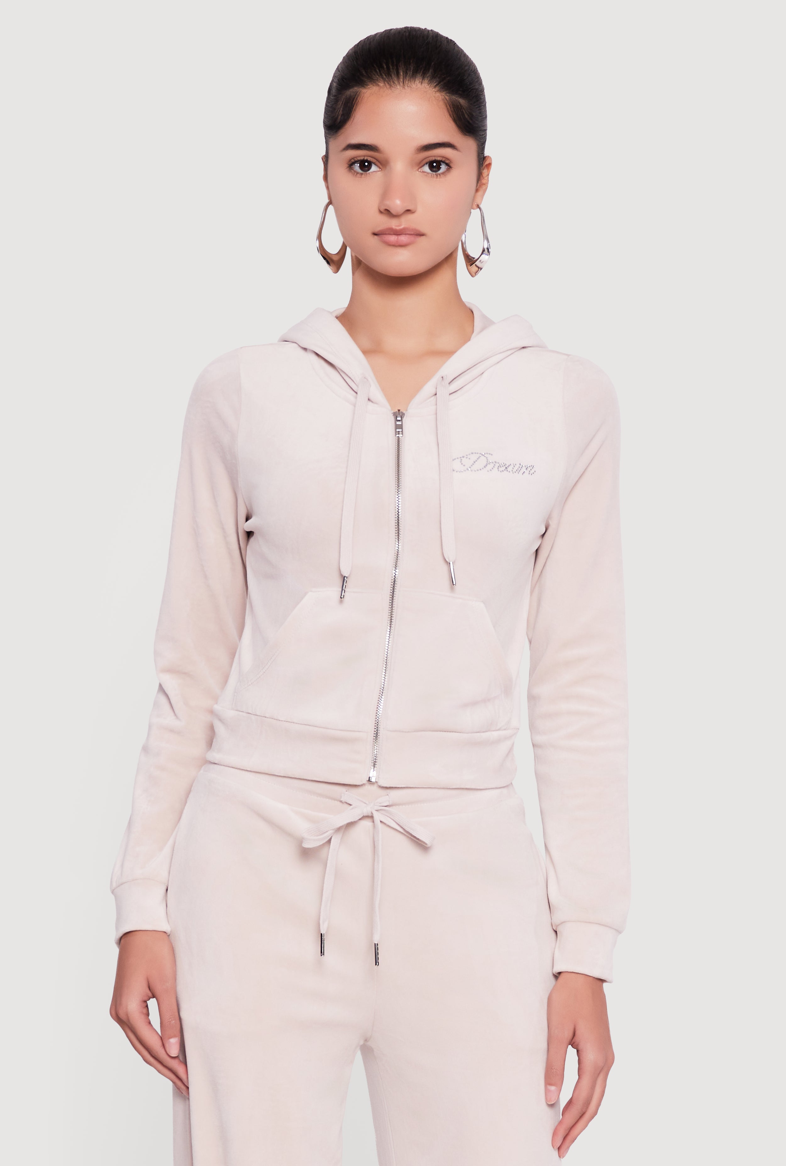 Velour Rhinestone Dream Graphic Zip Front Hoodie
