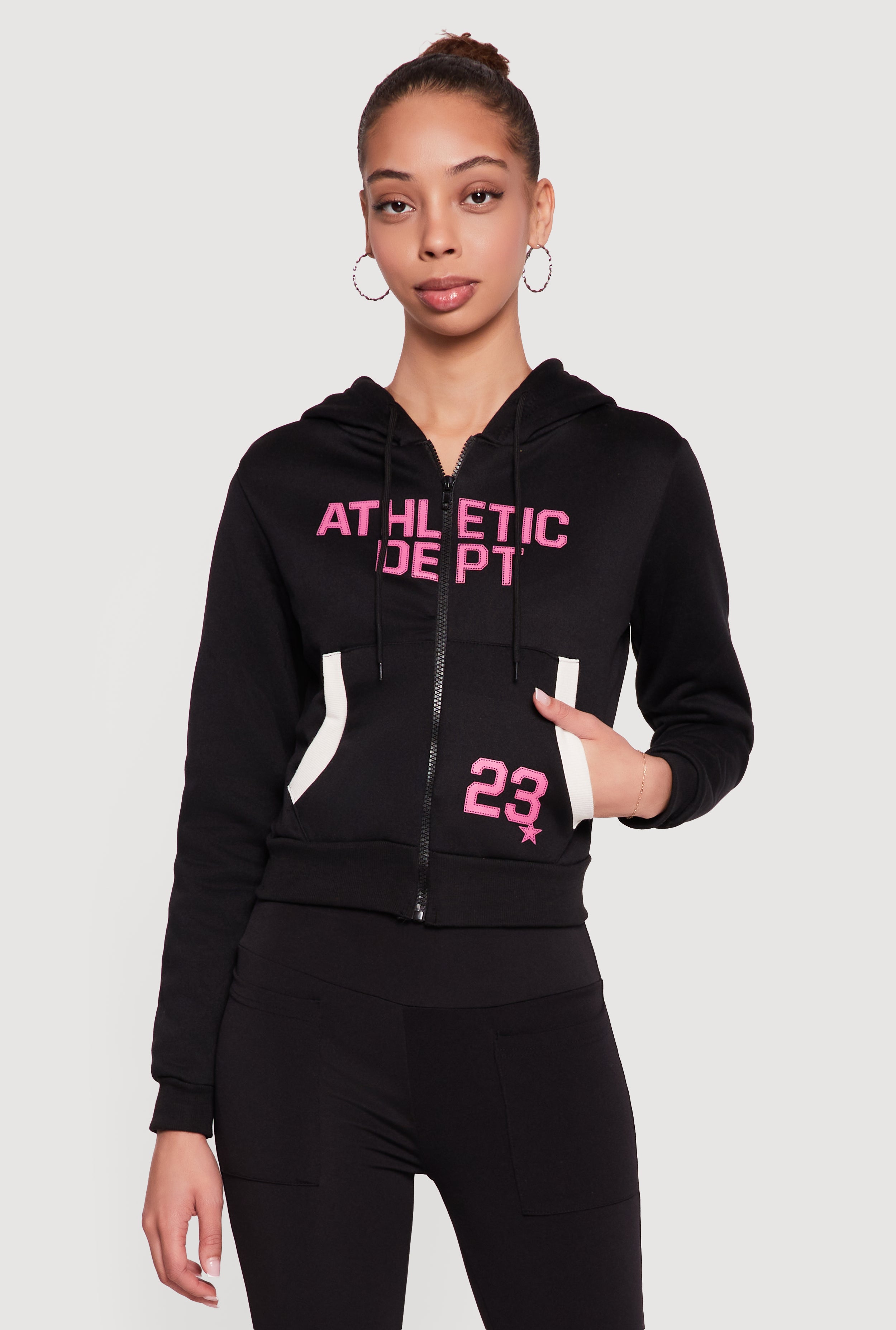 Athletic Dept 23 Graphic Cropped Zip Front Hoodie