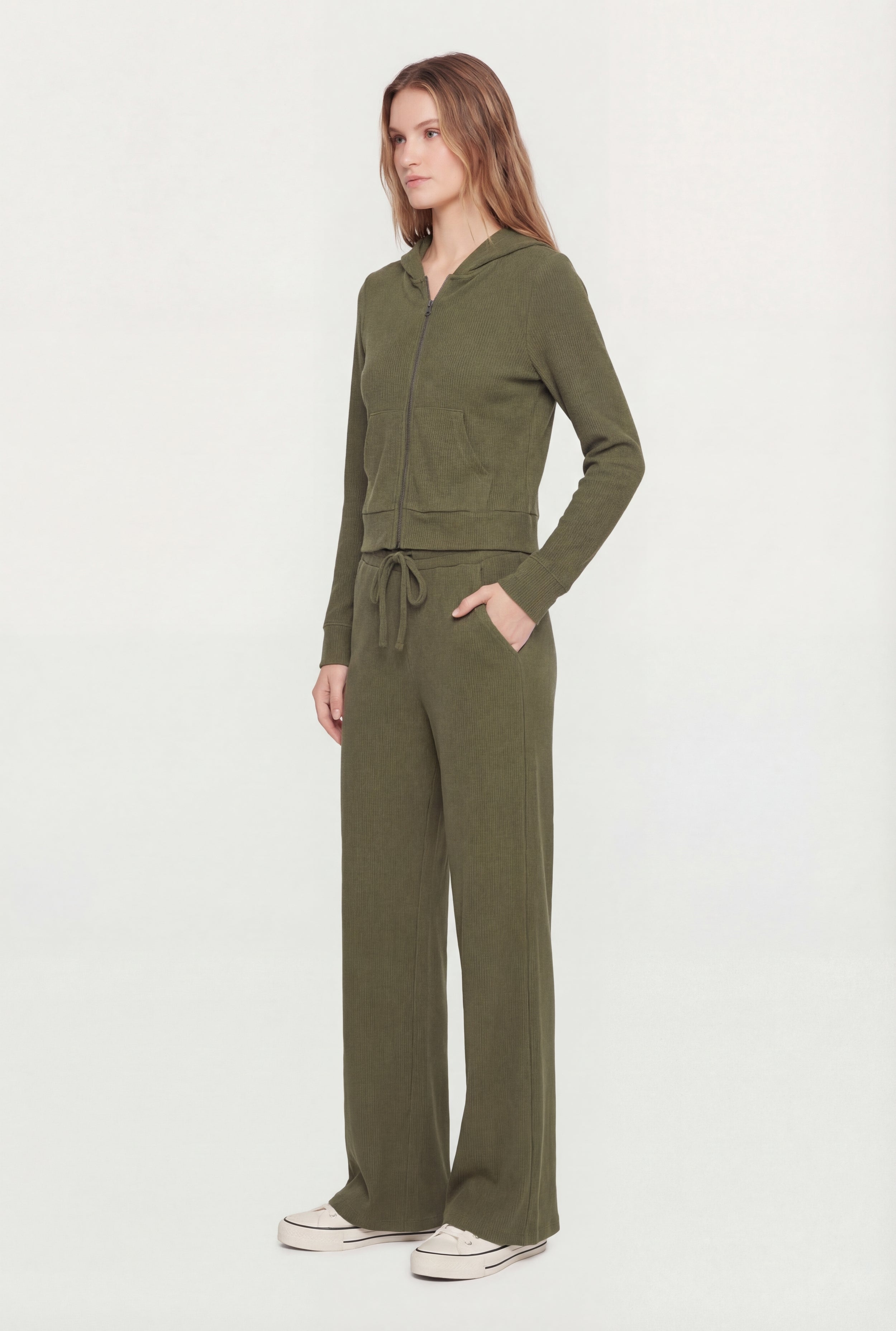 Waffle Knit Drawstring Waist Pants