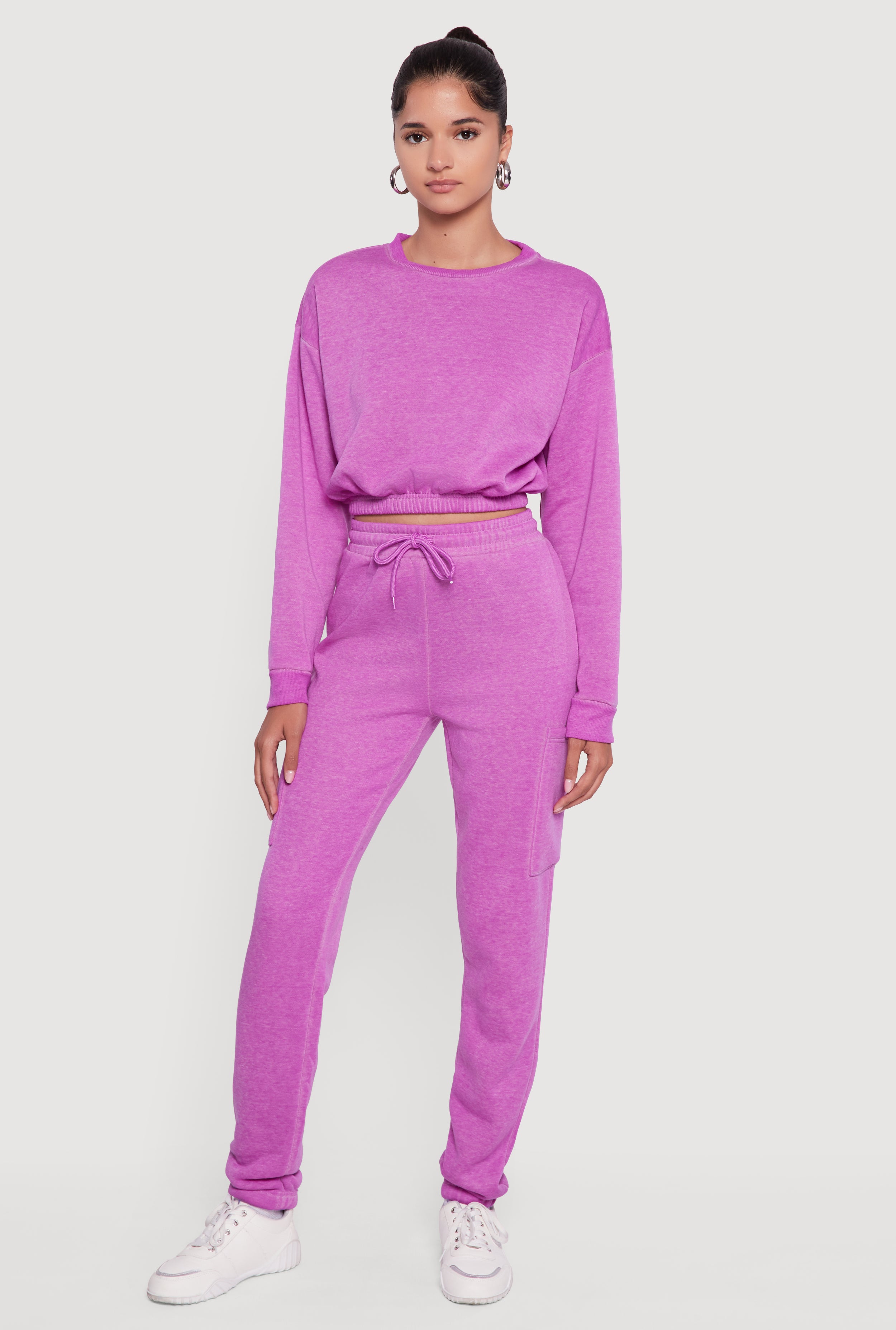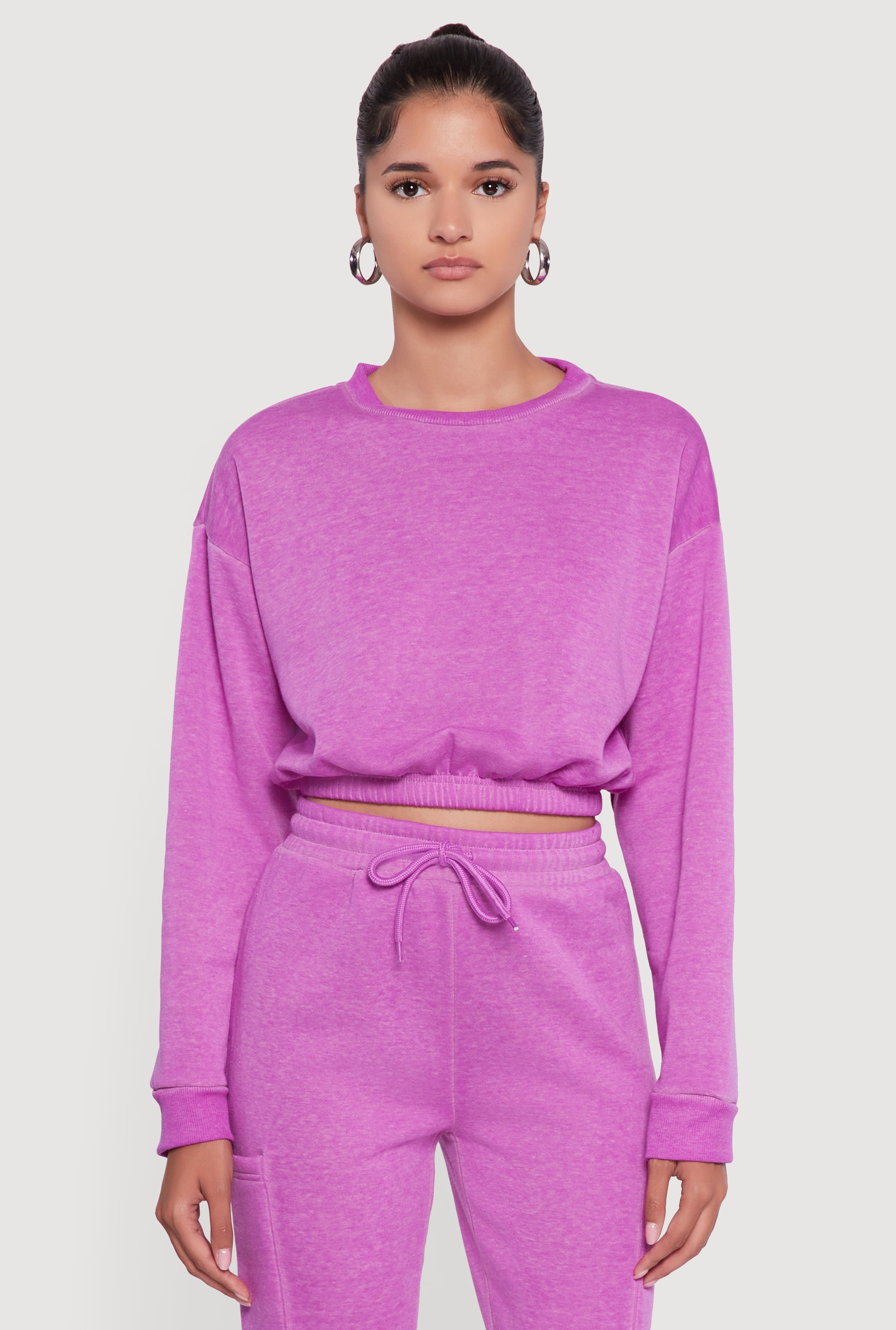 Crew Neck Long Sleeve Cropped Sweatshirt