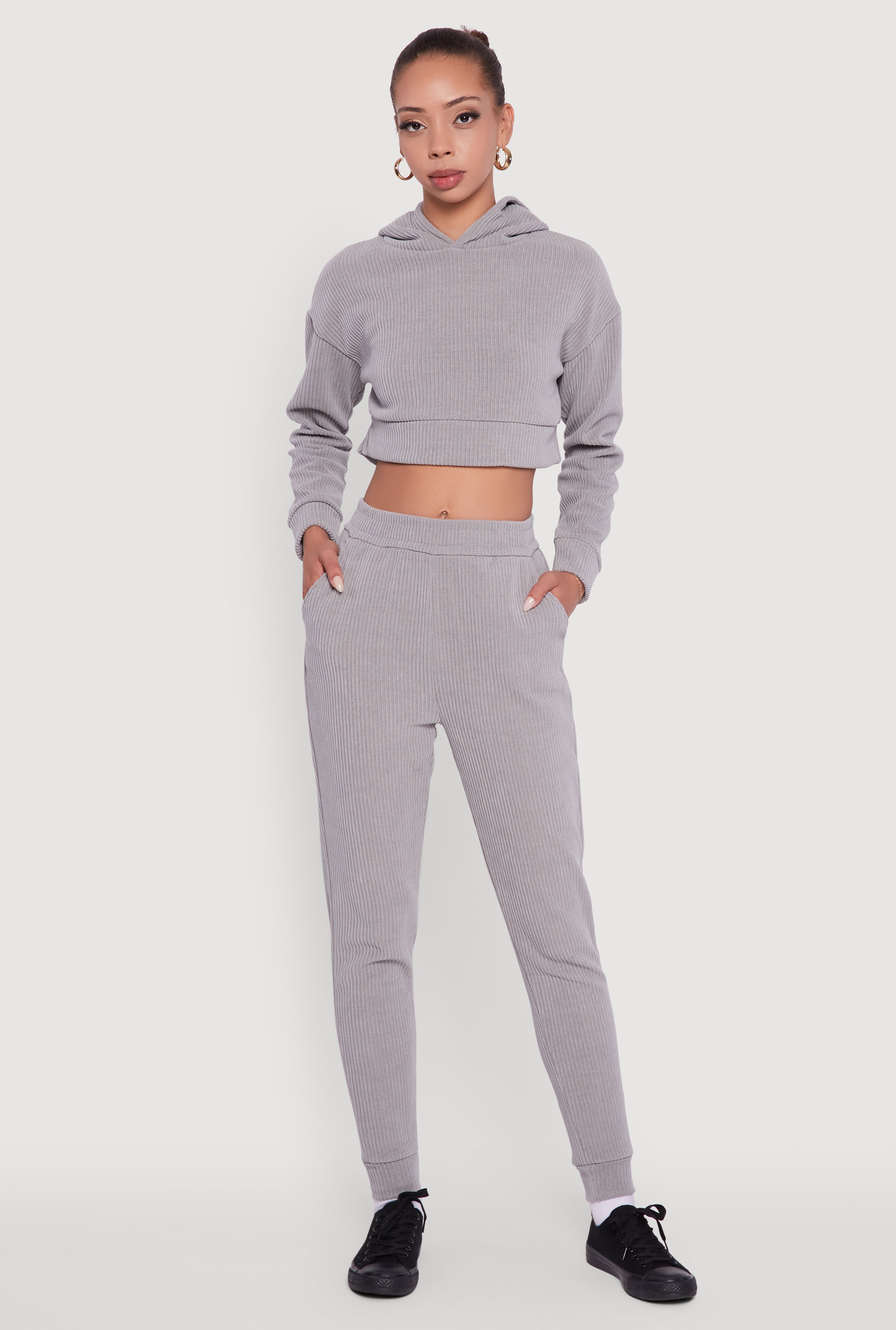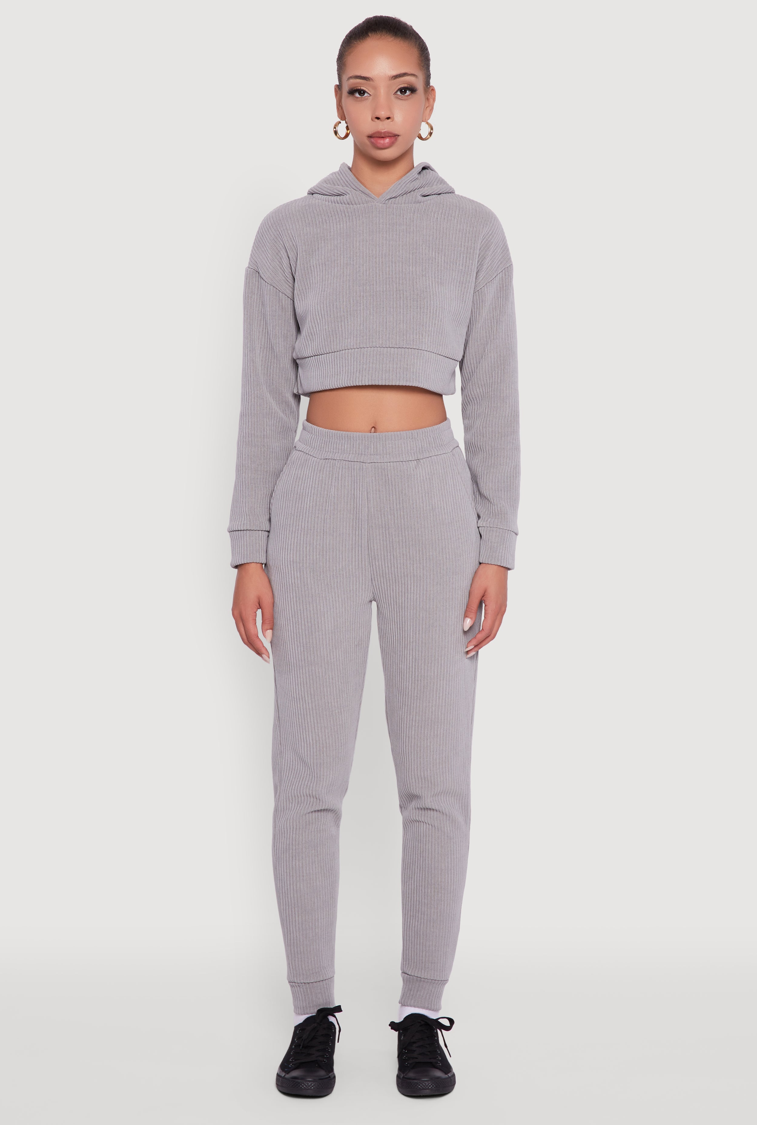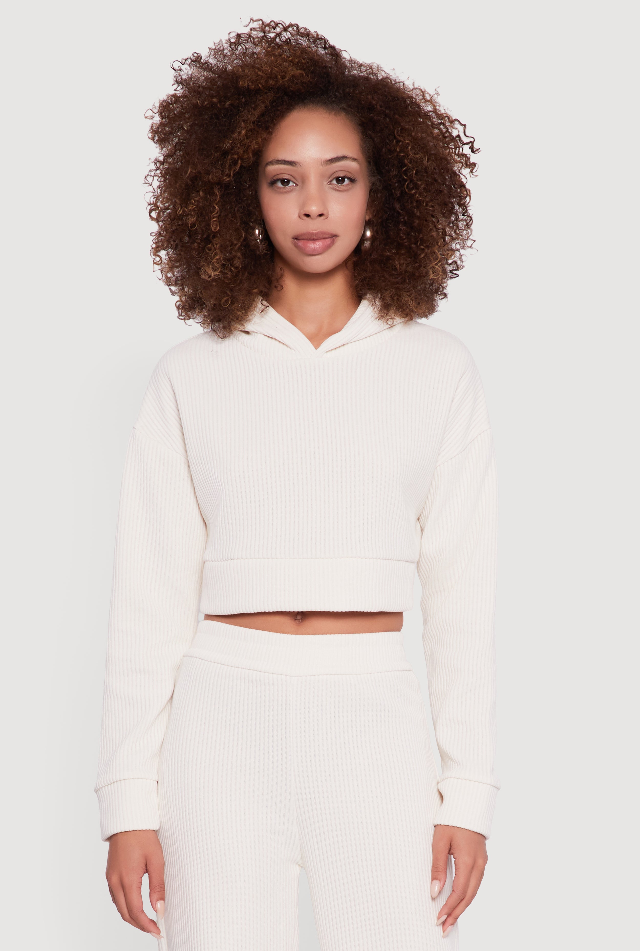 Ribbed Knit Long Sleeve Cropped Hoodie