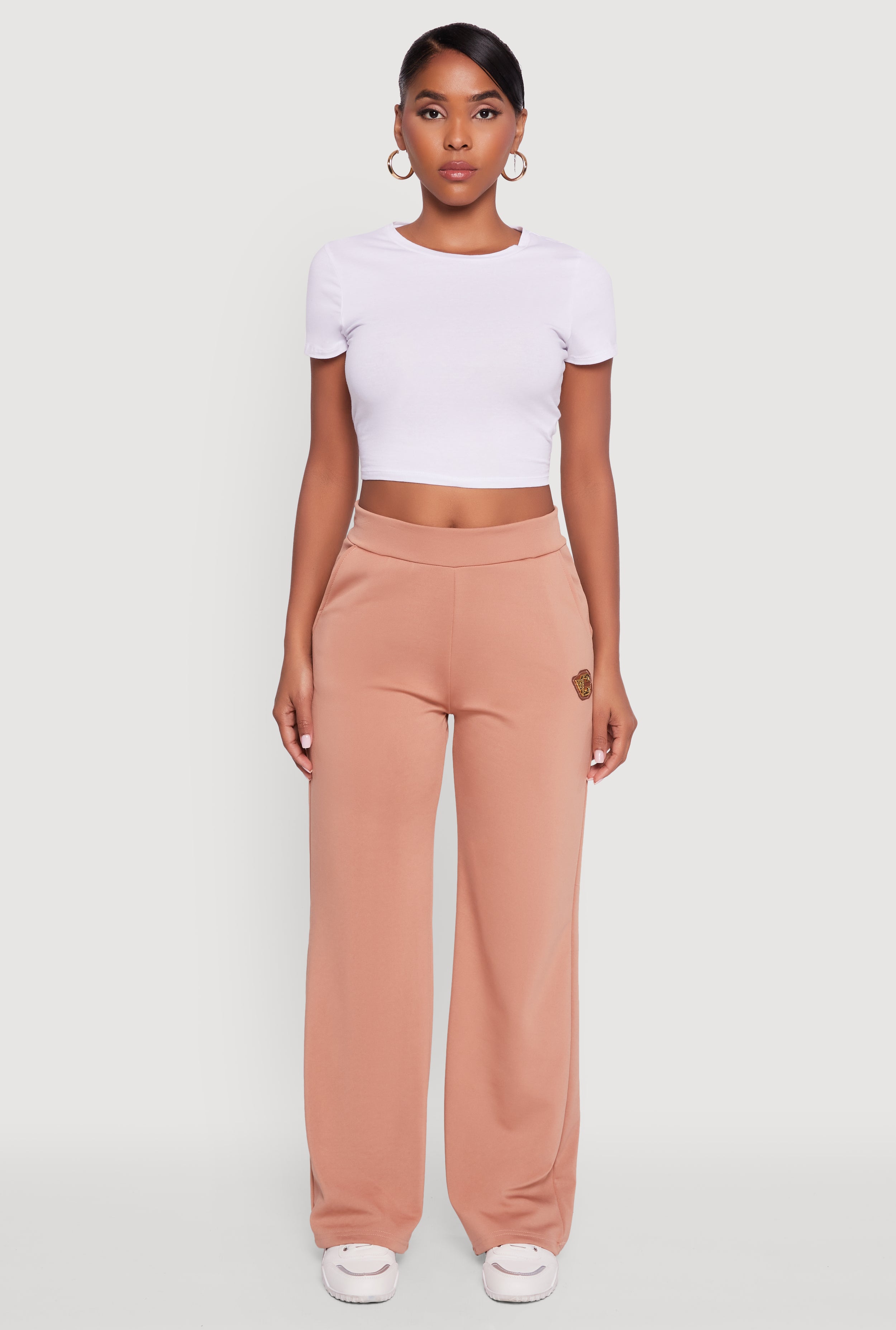 Fleece Lined Metallic Patch Wide Leg Pants