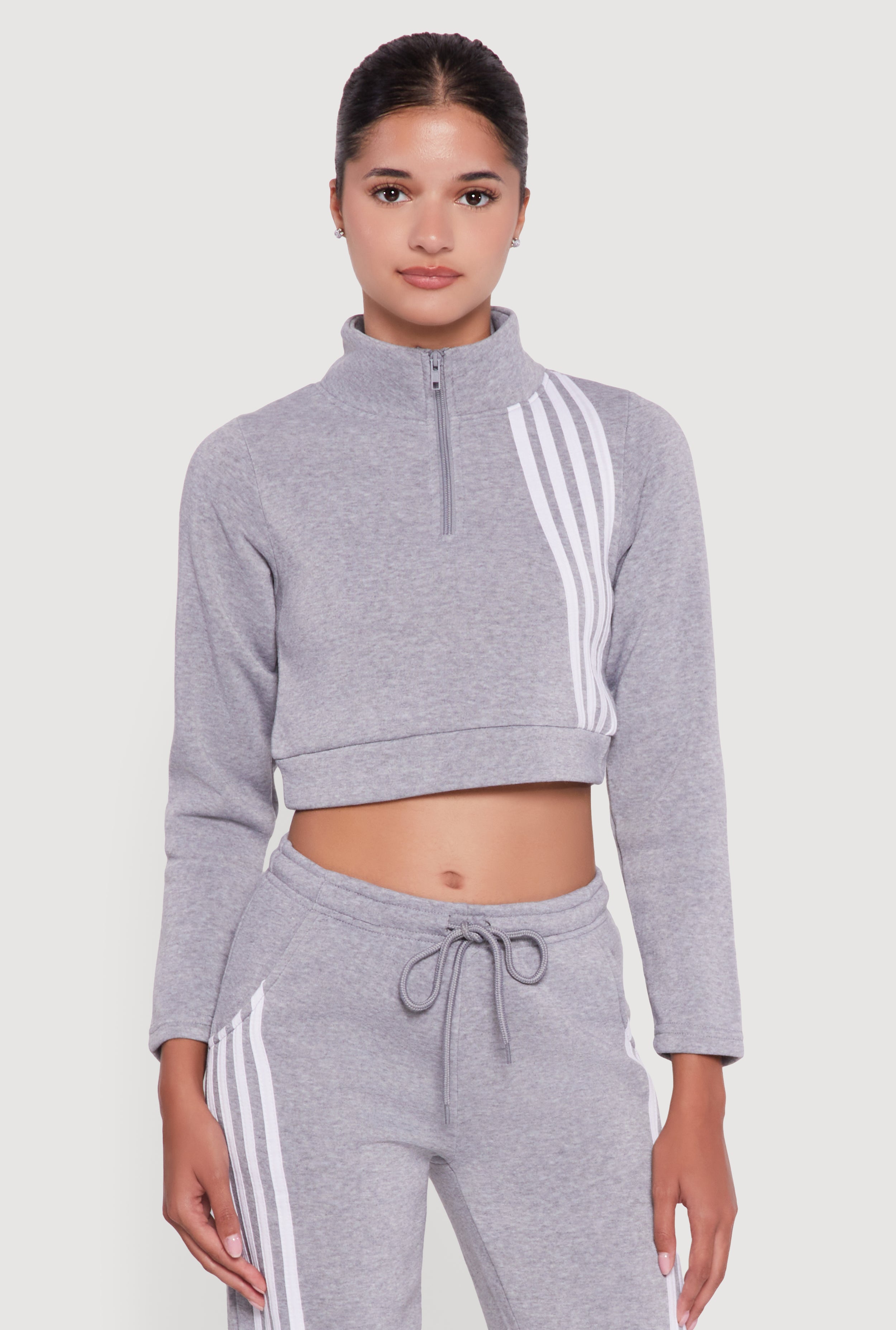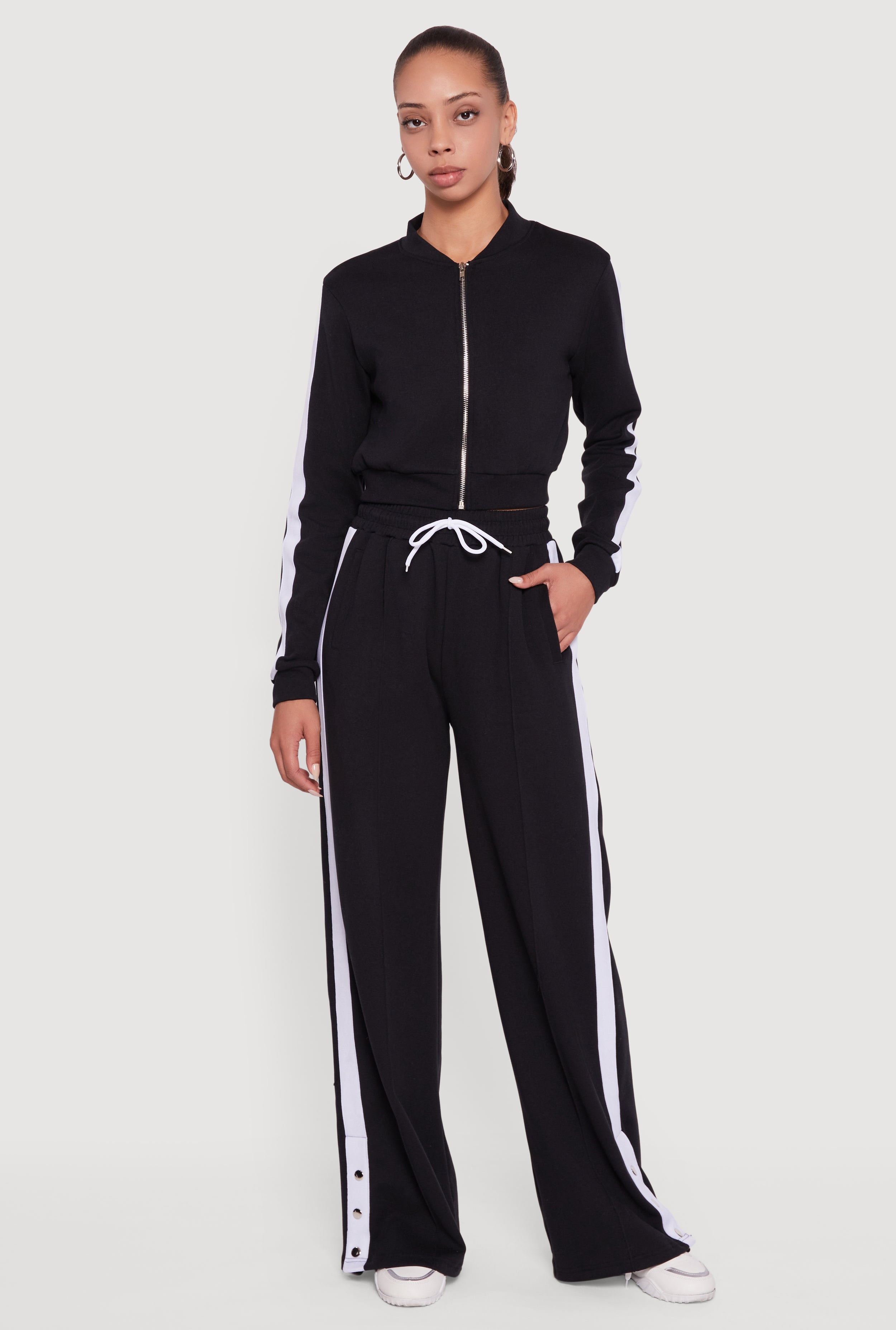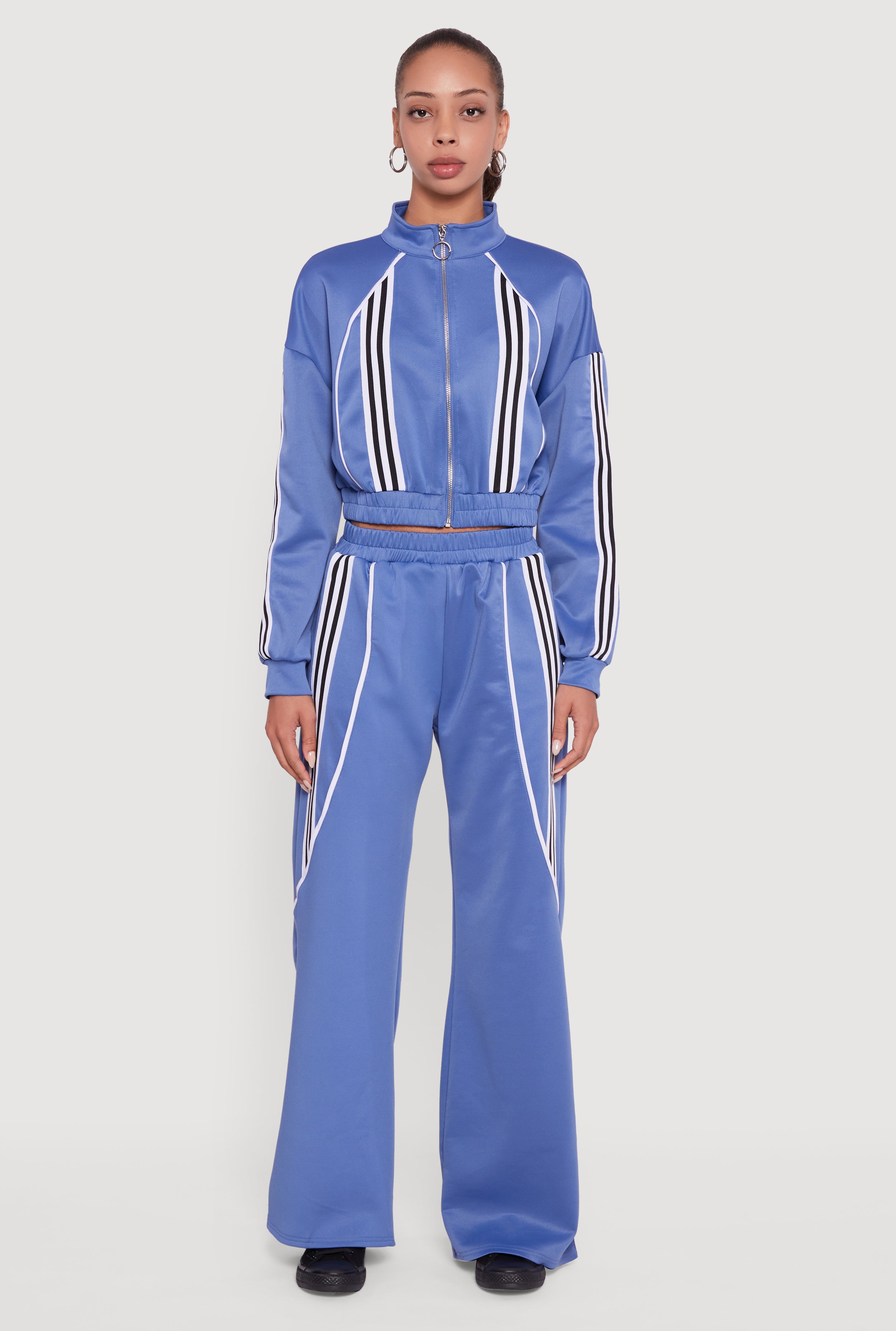Side Stripe Cropped Zip Front Track Jacket