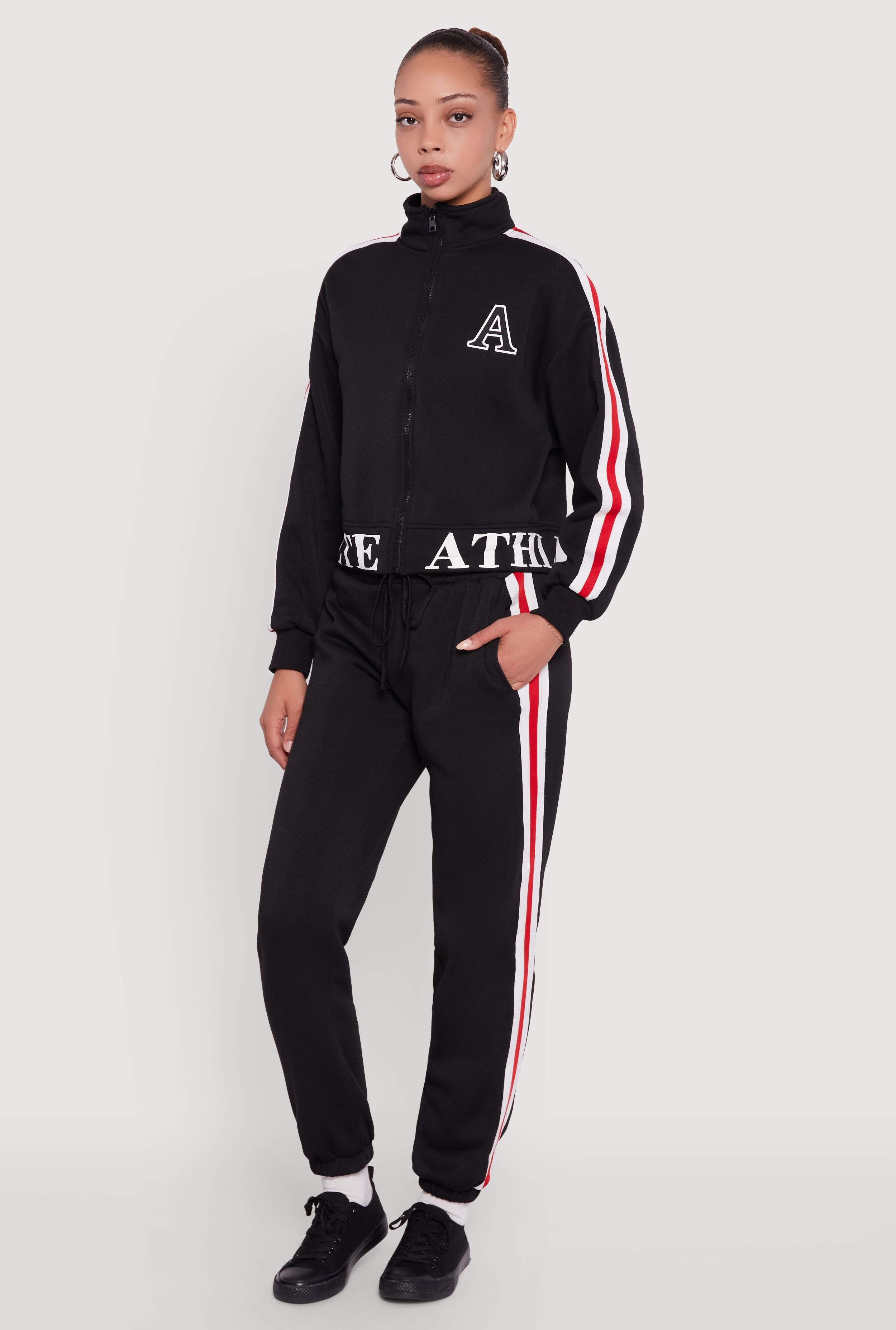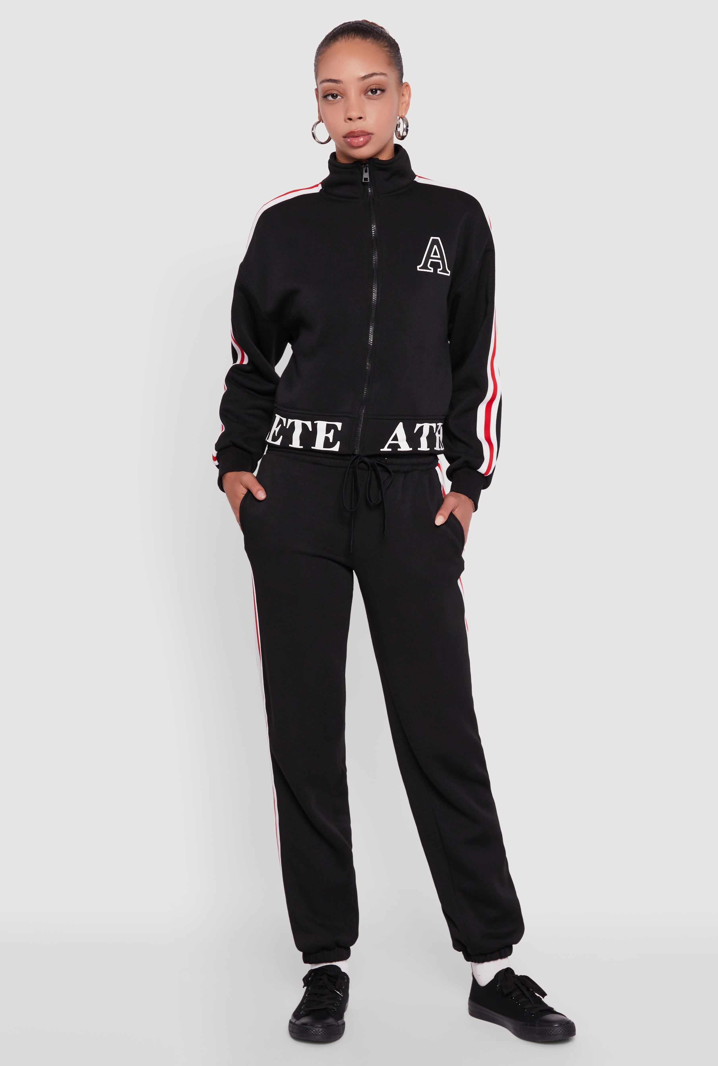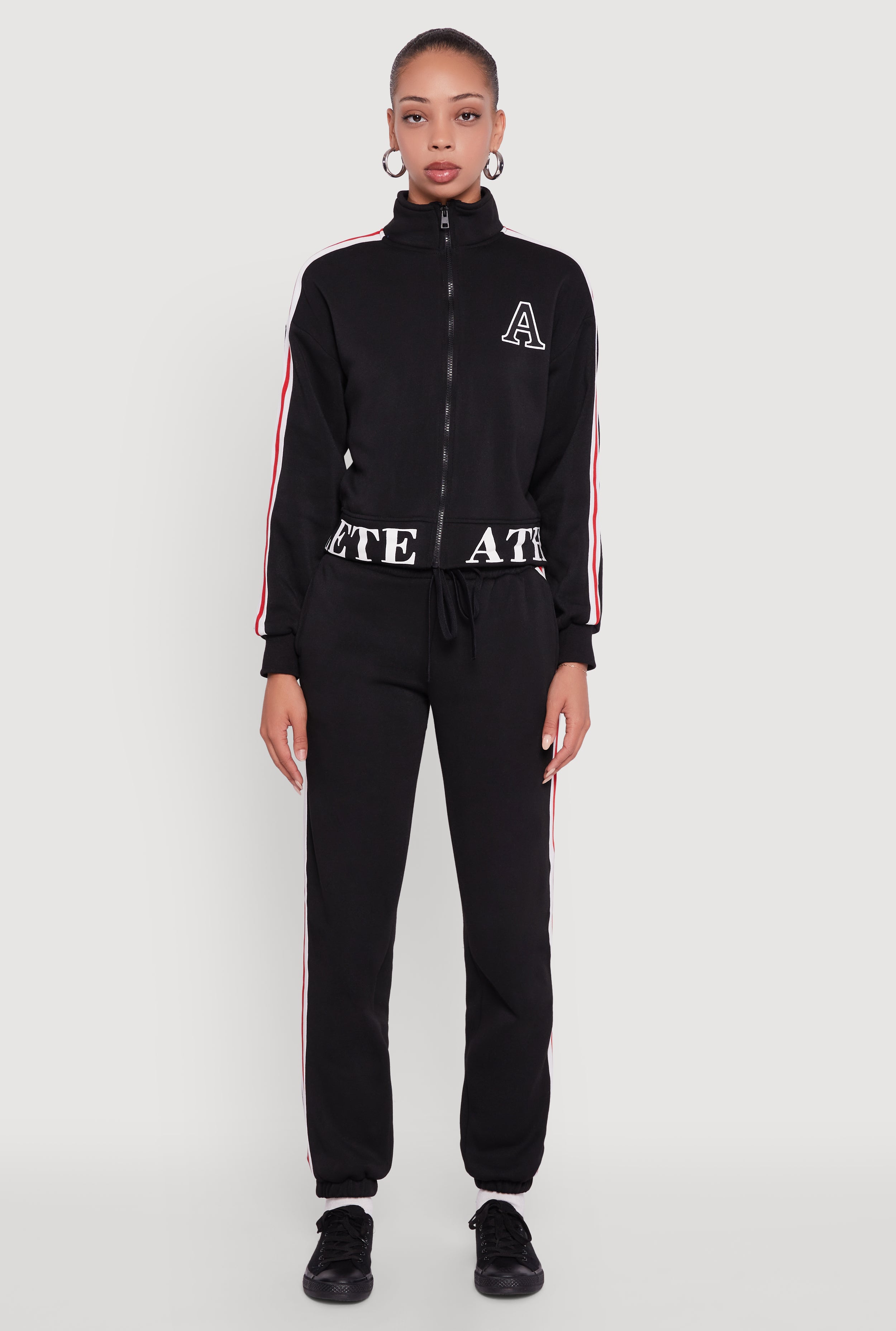 Side Stripe Zip Front Graphic Sweatshirt