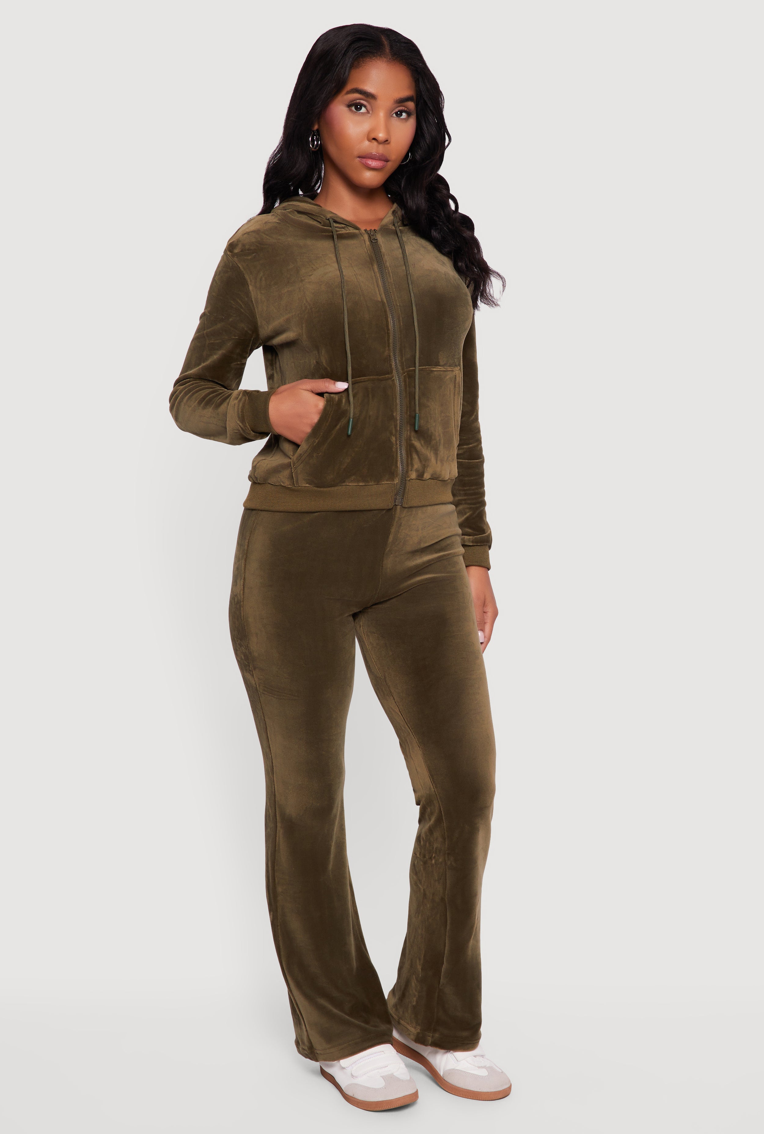 Velour Zip Front Drawstring Hoodie