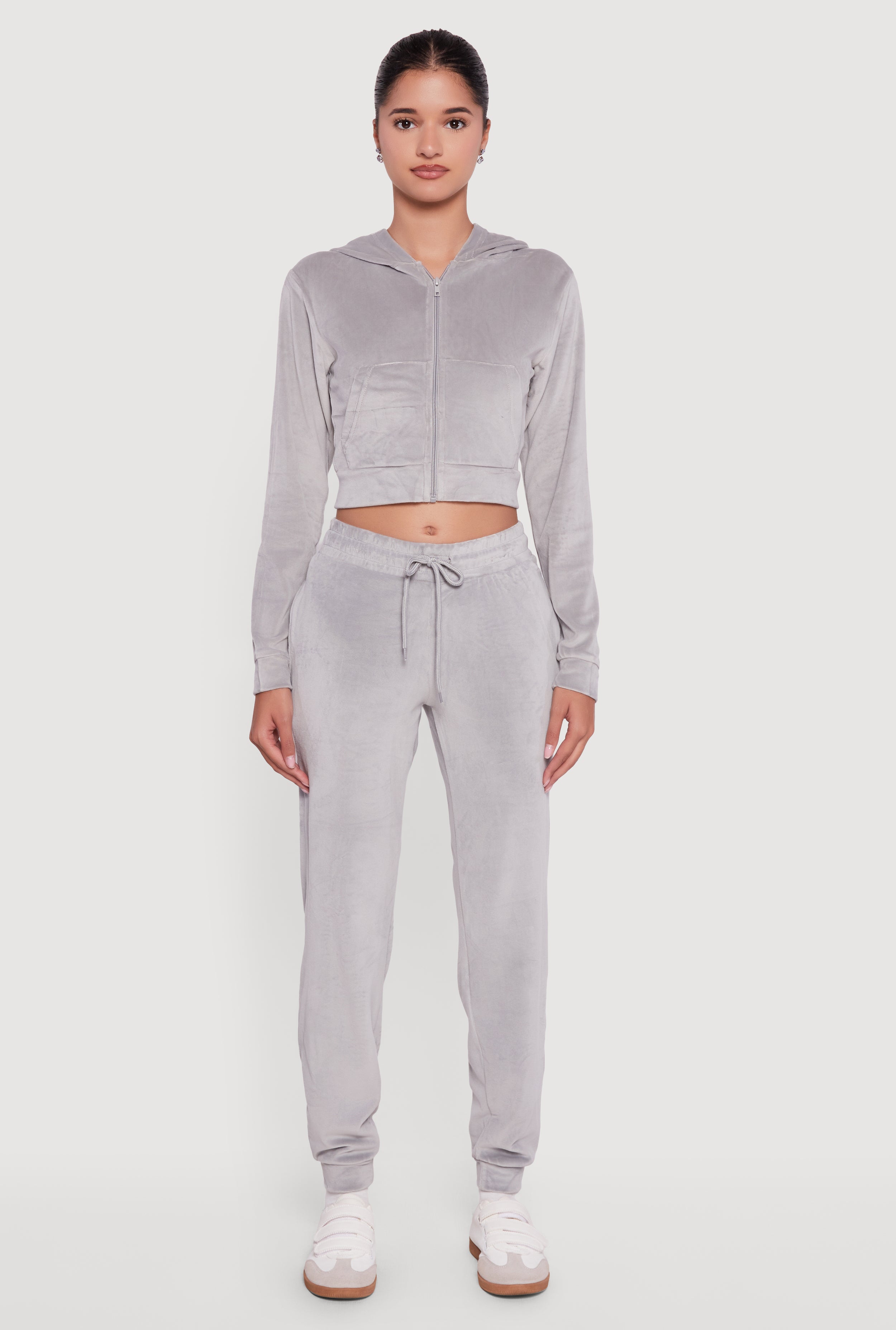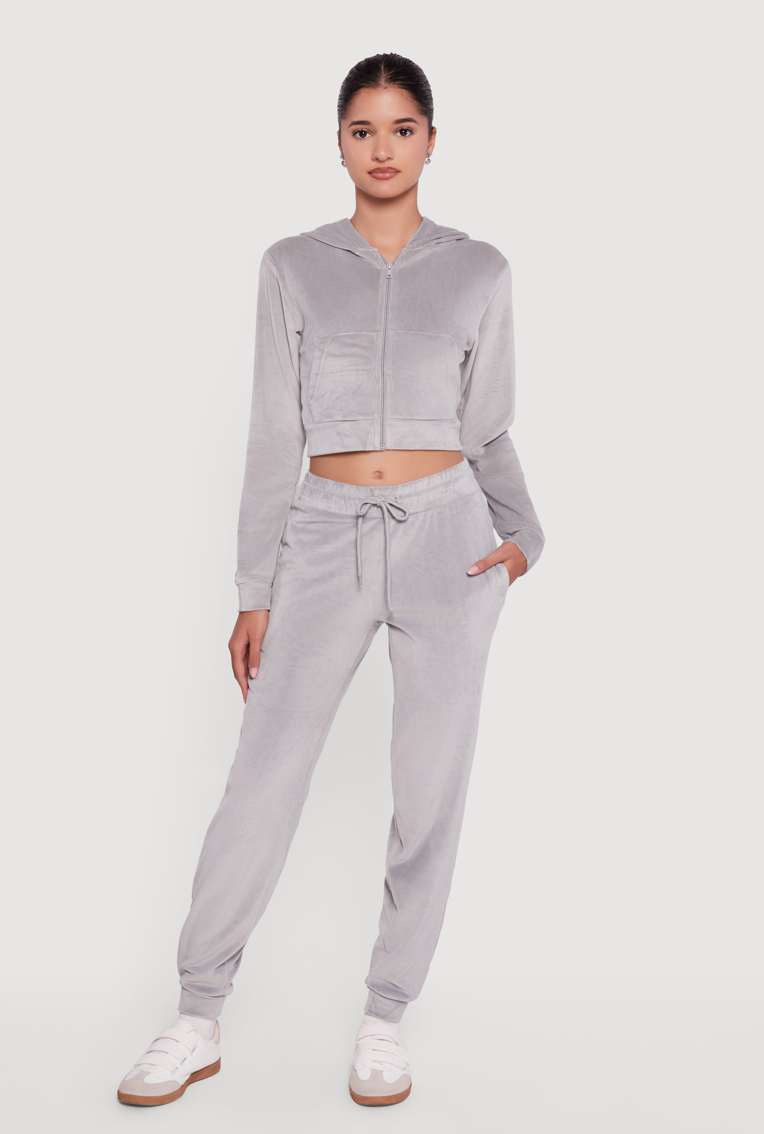Velour Long Sleeve Cropped Zip Front Hoodie