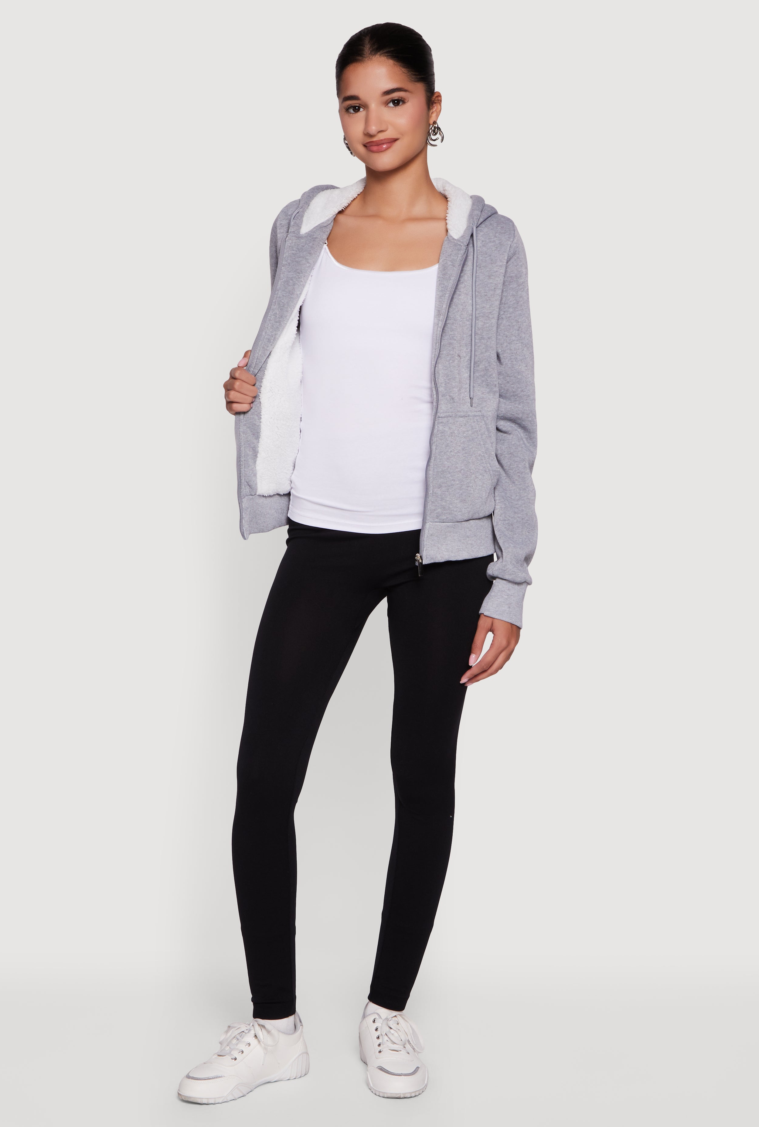 Cozy Sherpa Lined Hooded Zip Front Sweatshirt