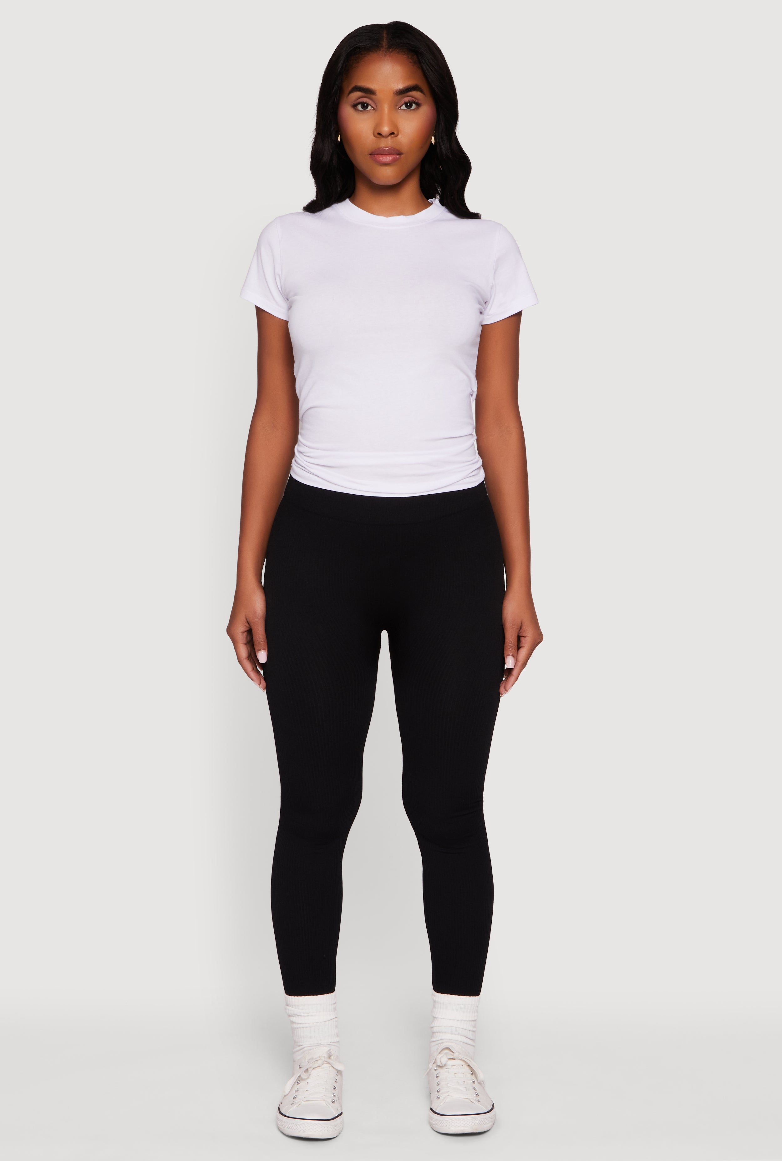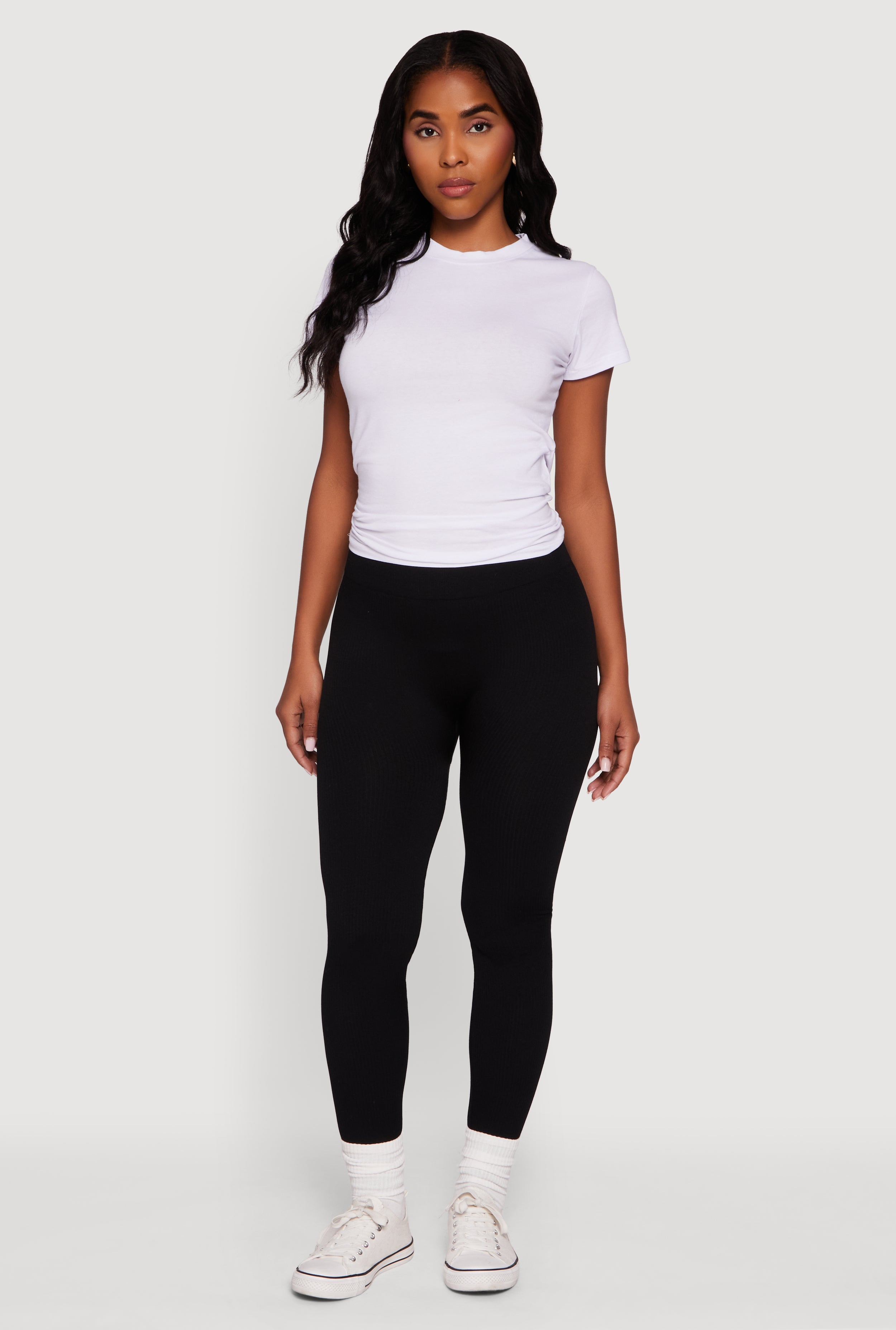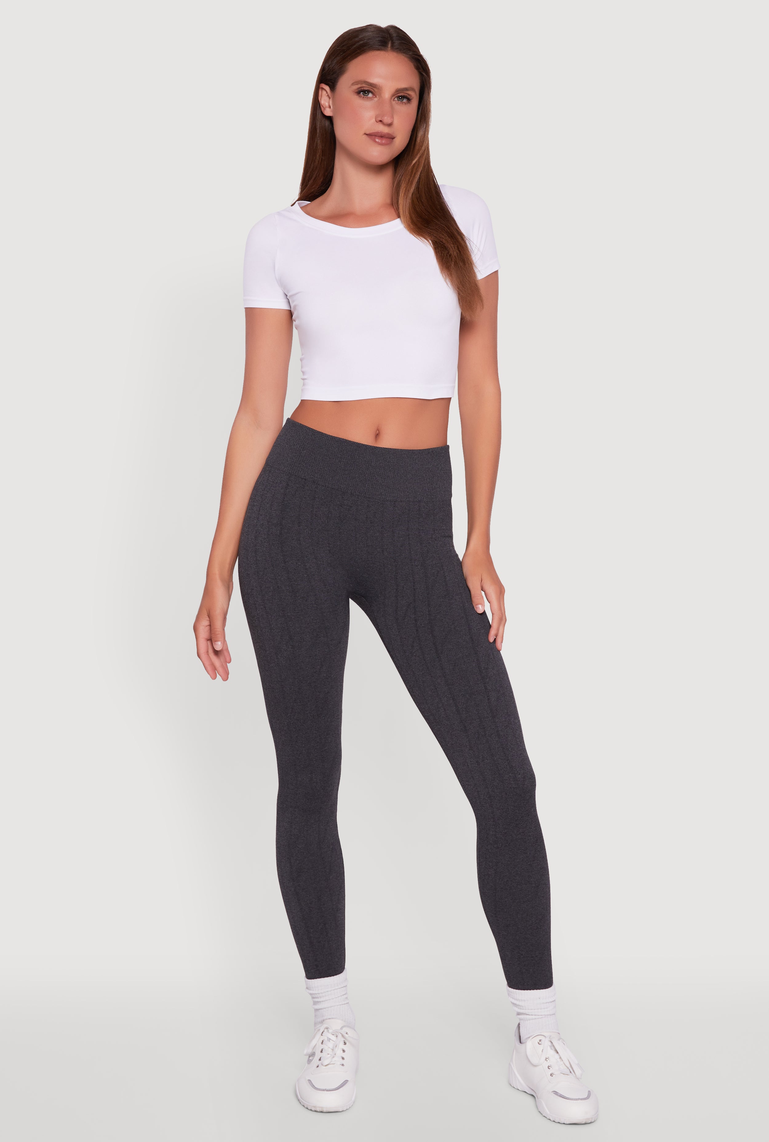 Fleece Lined Ribbed Knit Basic Mid Rise Leggings