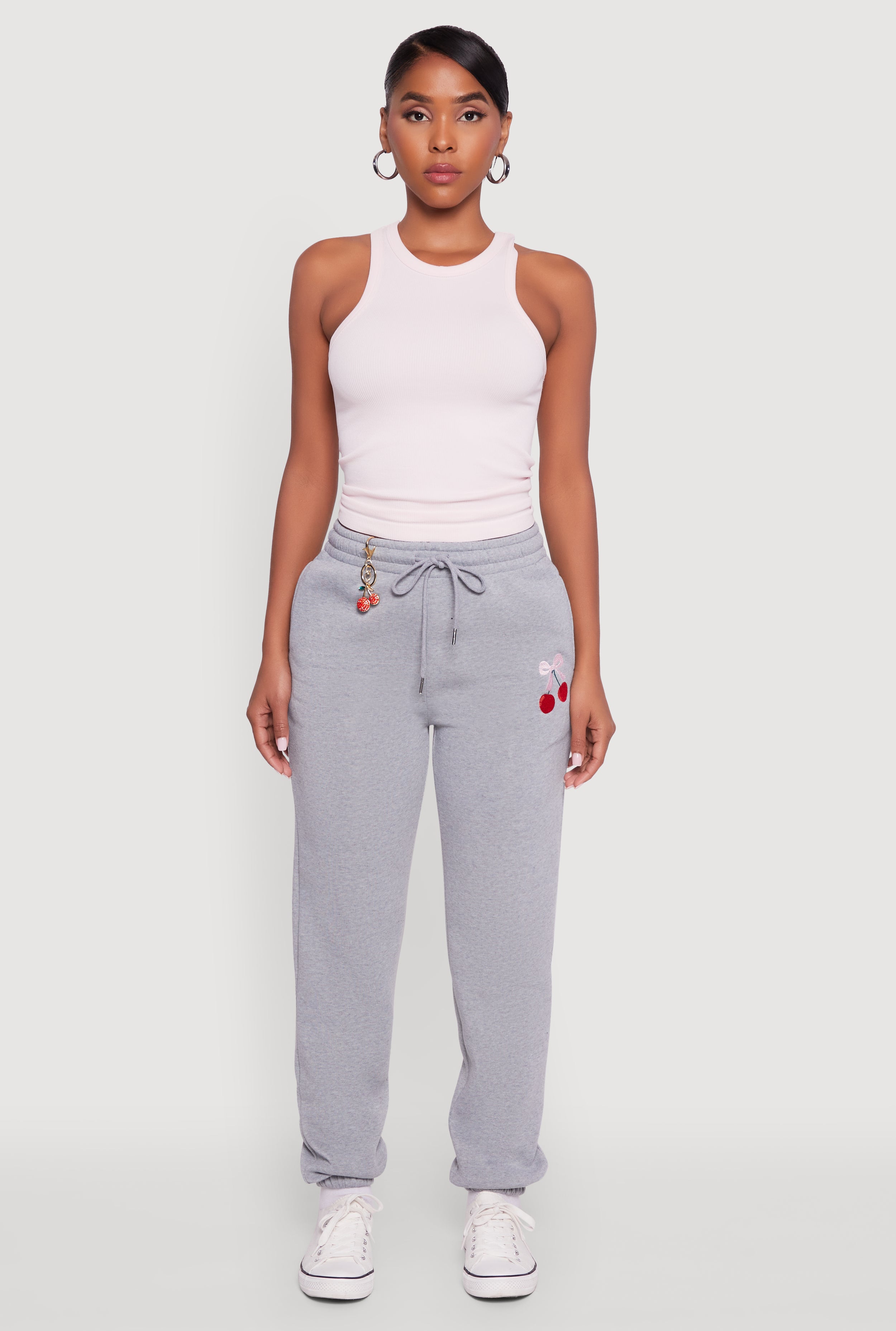 Drawstring High Waisted Embroidered Graphic Sweatpants