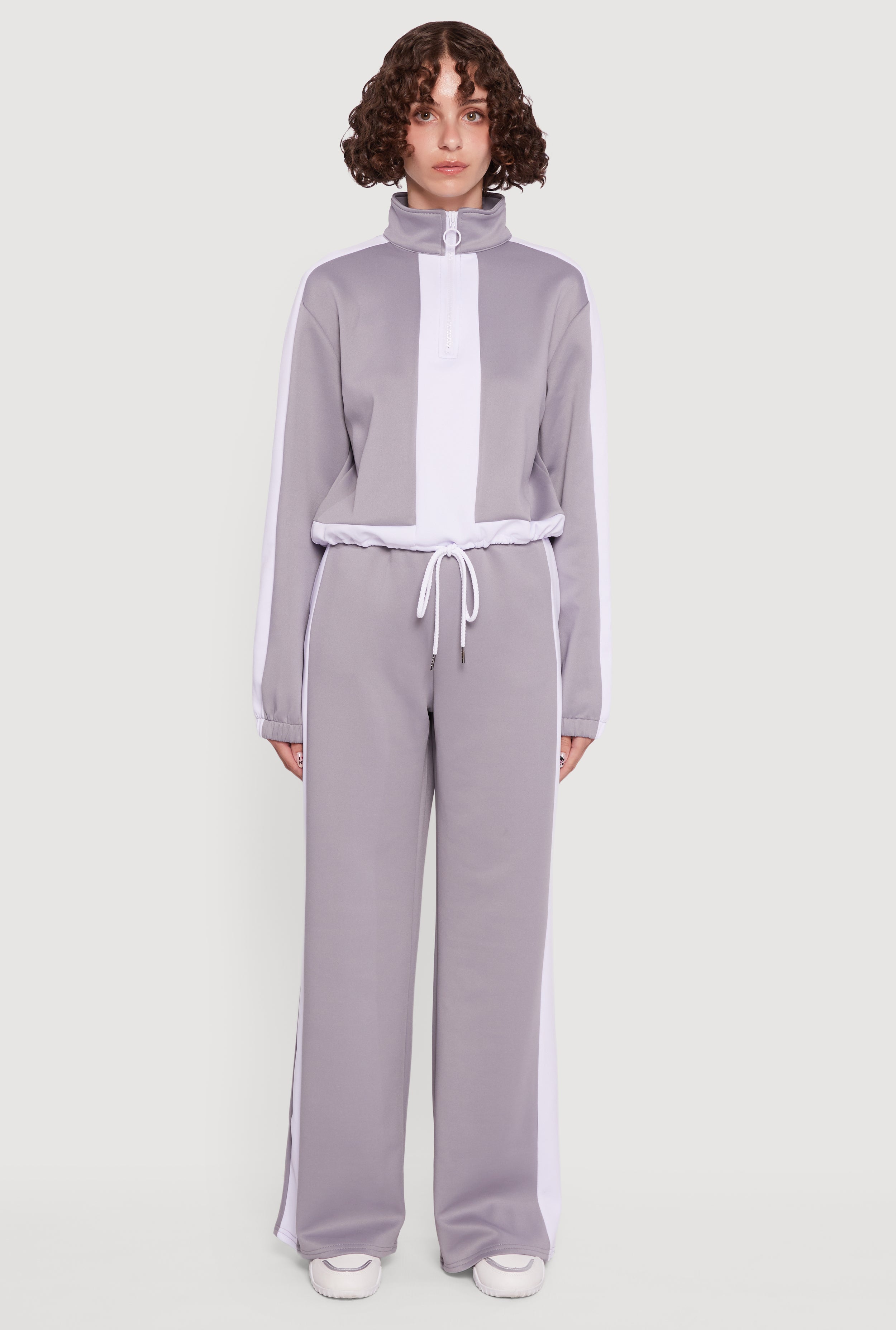 Contrast Trim Half Zip Drawstring Hem Pullover Top