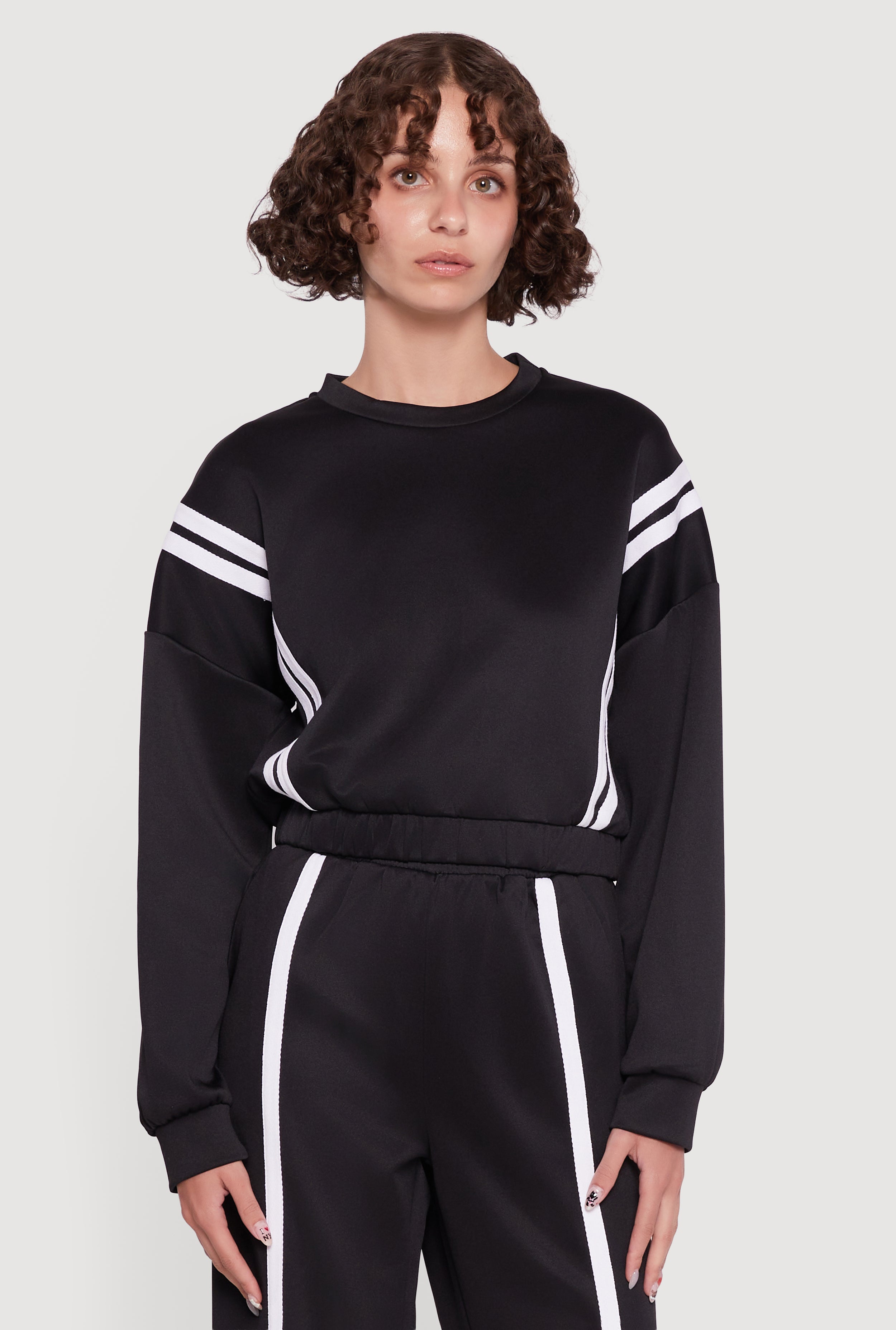 Contrast Trim Fleece Lined Cropped Sweatshirt