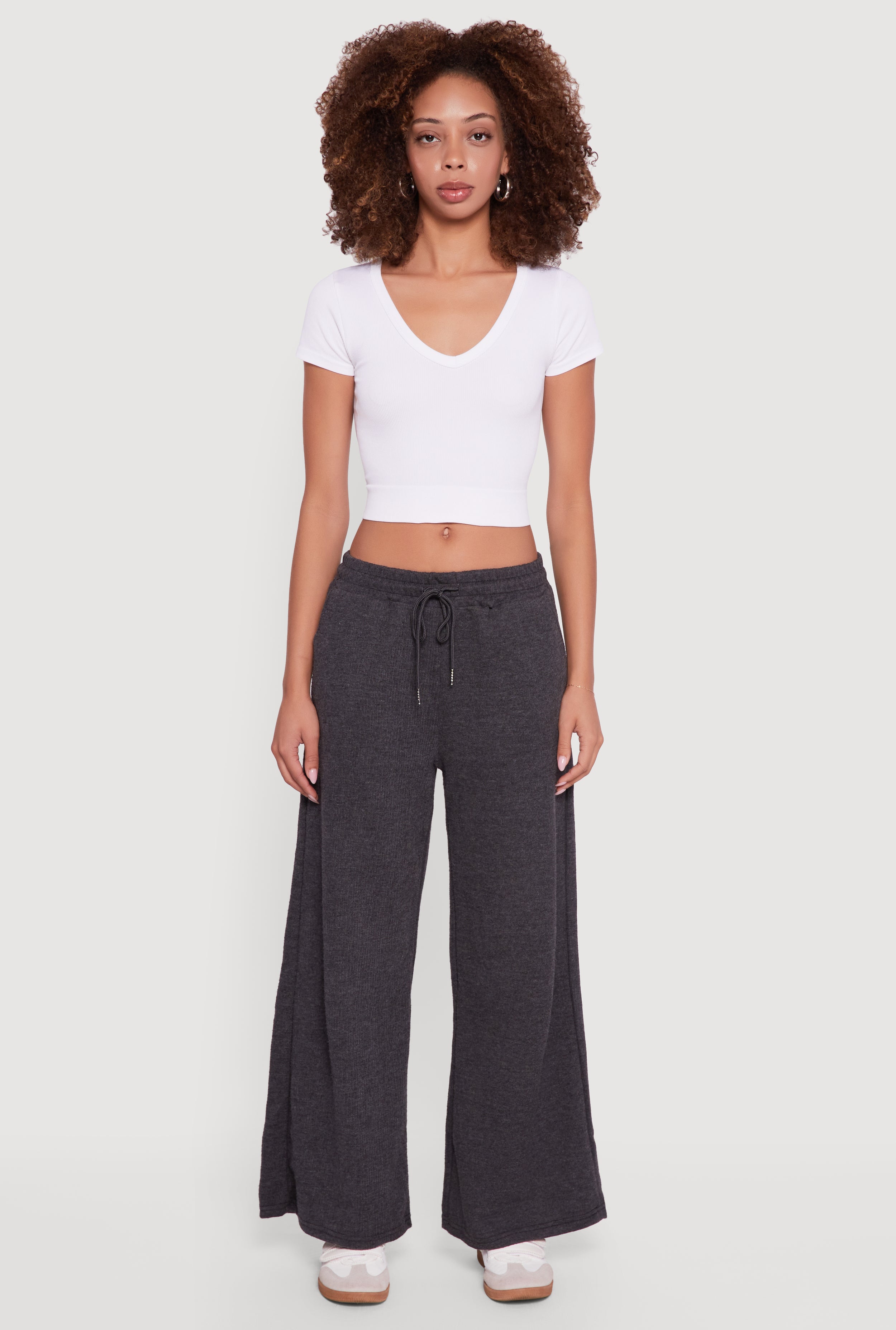 Marled Brushed Rib Knit Wide Leg Sweatpants