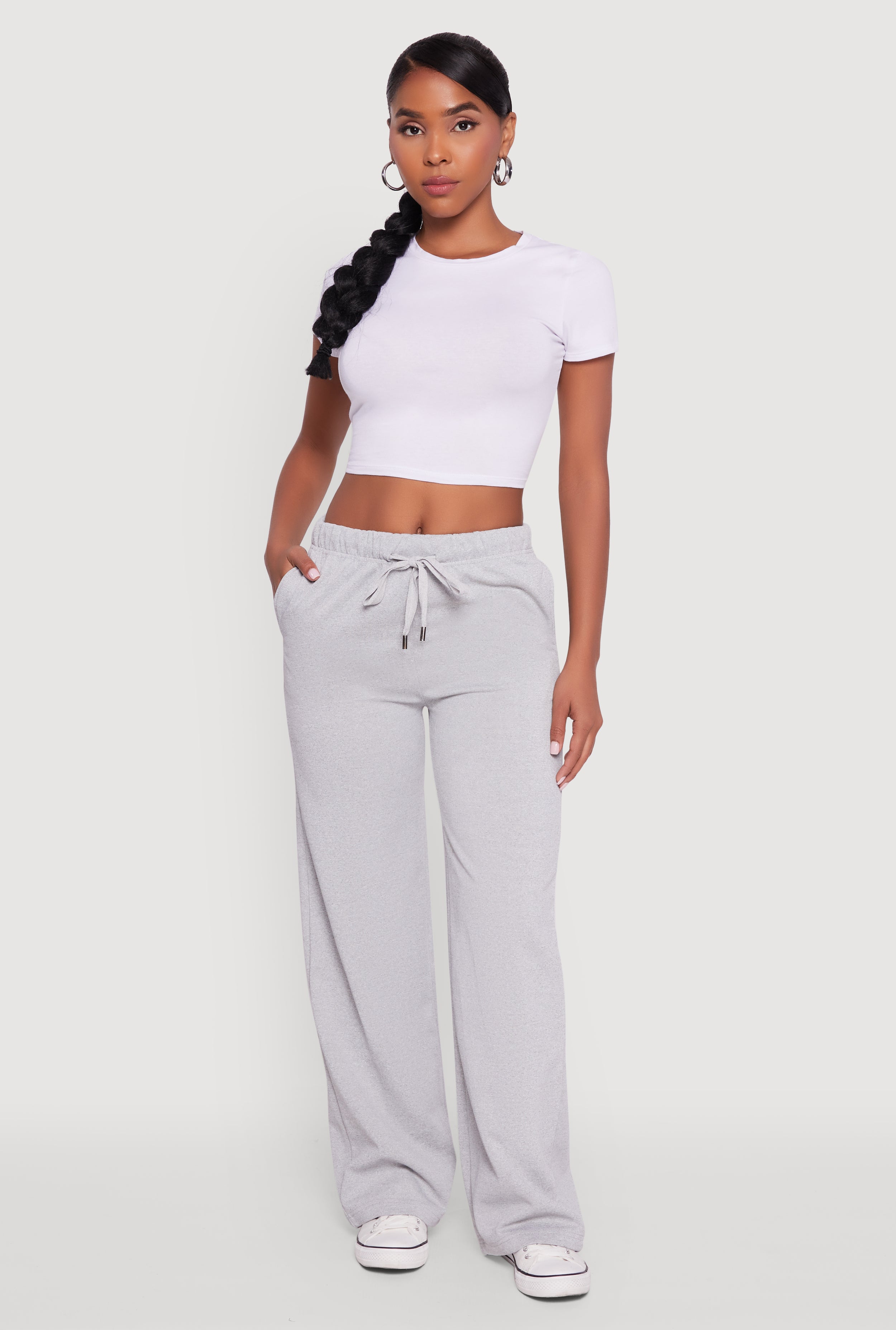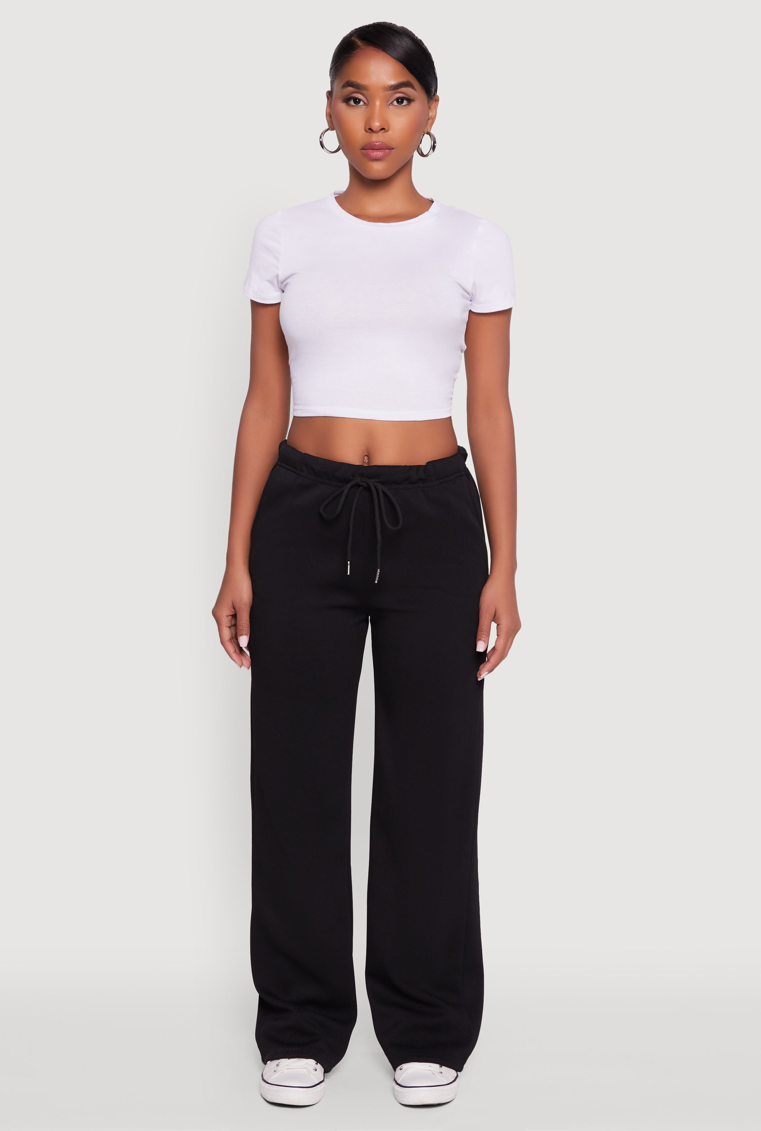 Drawstring Waist Wide Leg Sweatpants