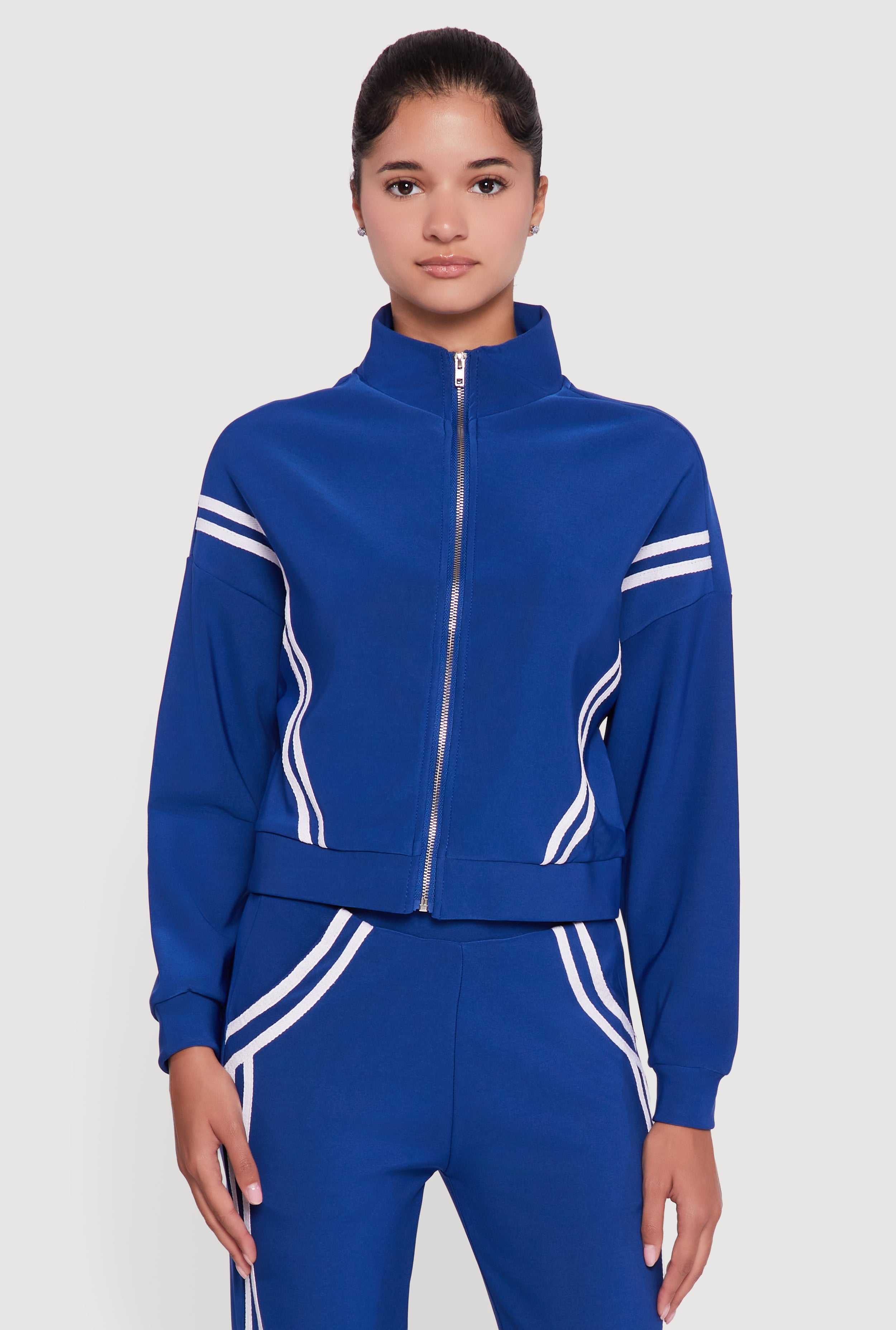 Stripe Detail Cropped Zip Front Track Jacket