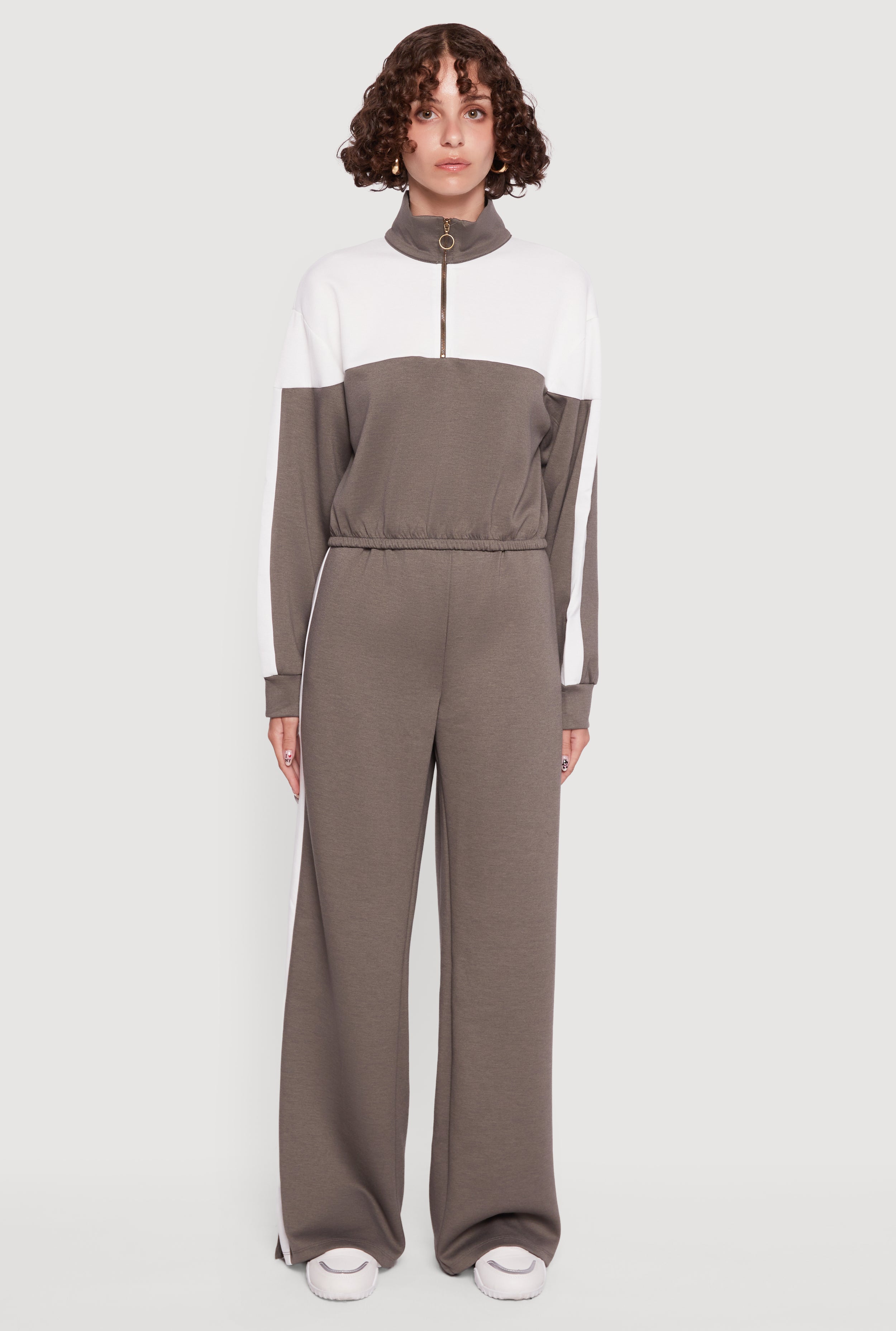 Color Block Half Zip Mock Neck Sweatshirt