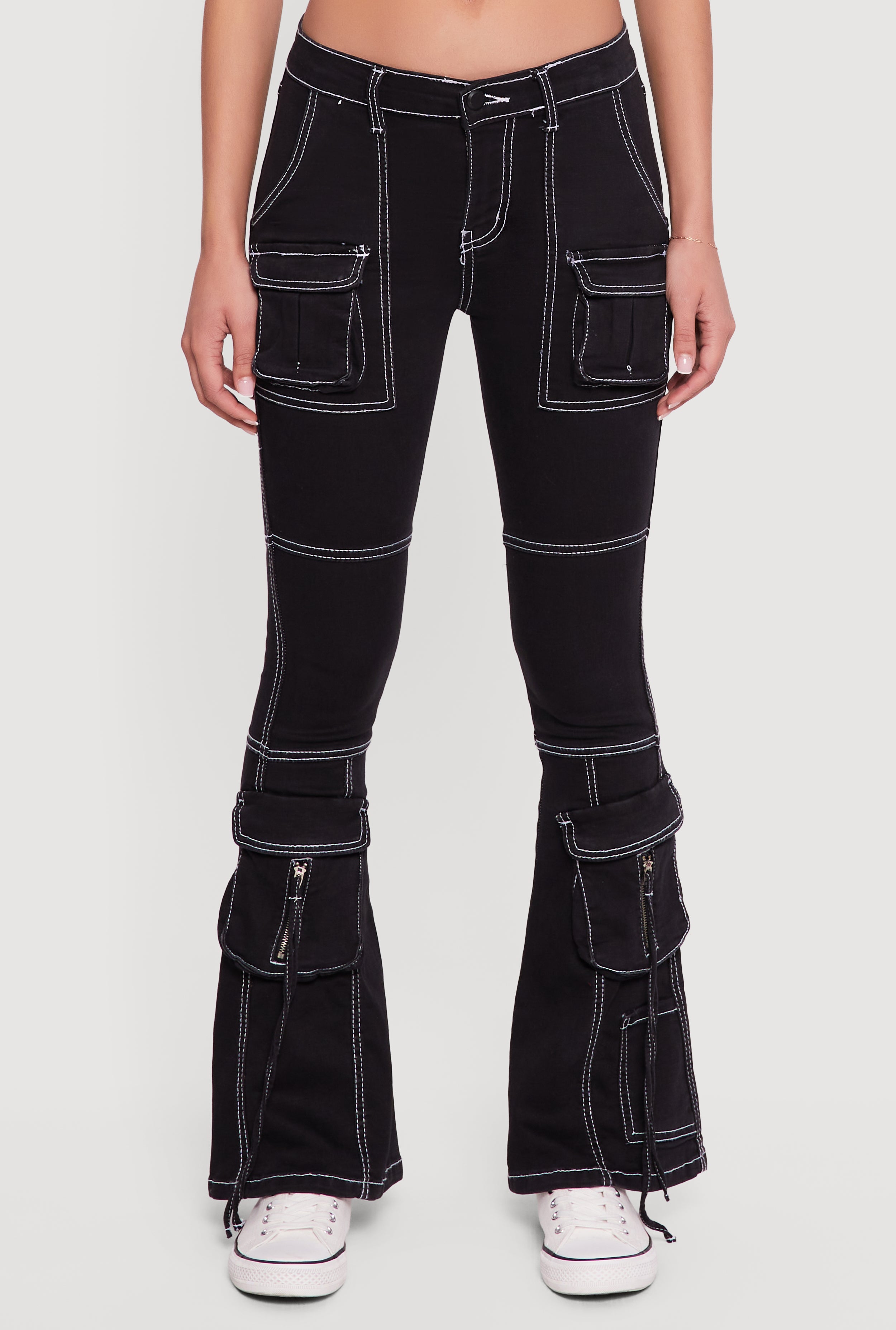 Step up your casual game with these Flare Leg Cargo Jeans designed to turn heads and keep you comfy all day. Featuring a trendy low rise and a sleek slim fit, these denim jeans blend classic flare-leg style with practical cargo pockets for that perfect mix of fashion and function. Whether you鈥檙e out with friends or running errands, these jeans offer a laid-back vibe with a hint of edge.