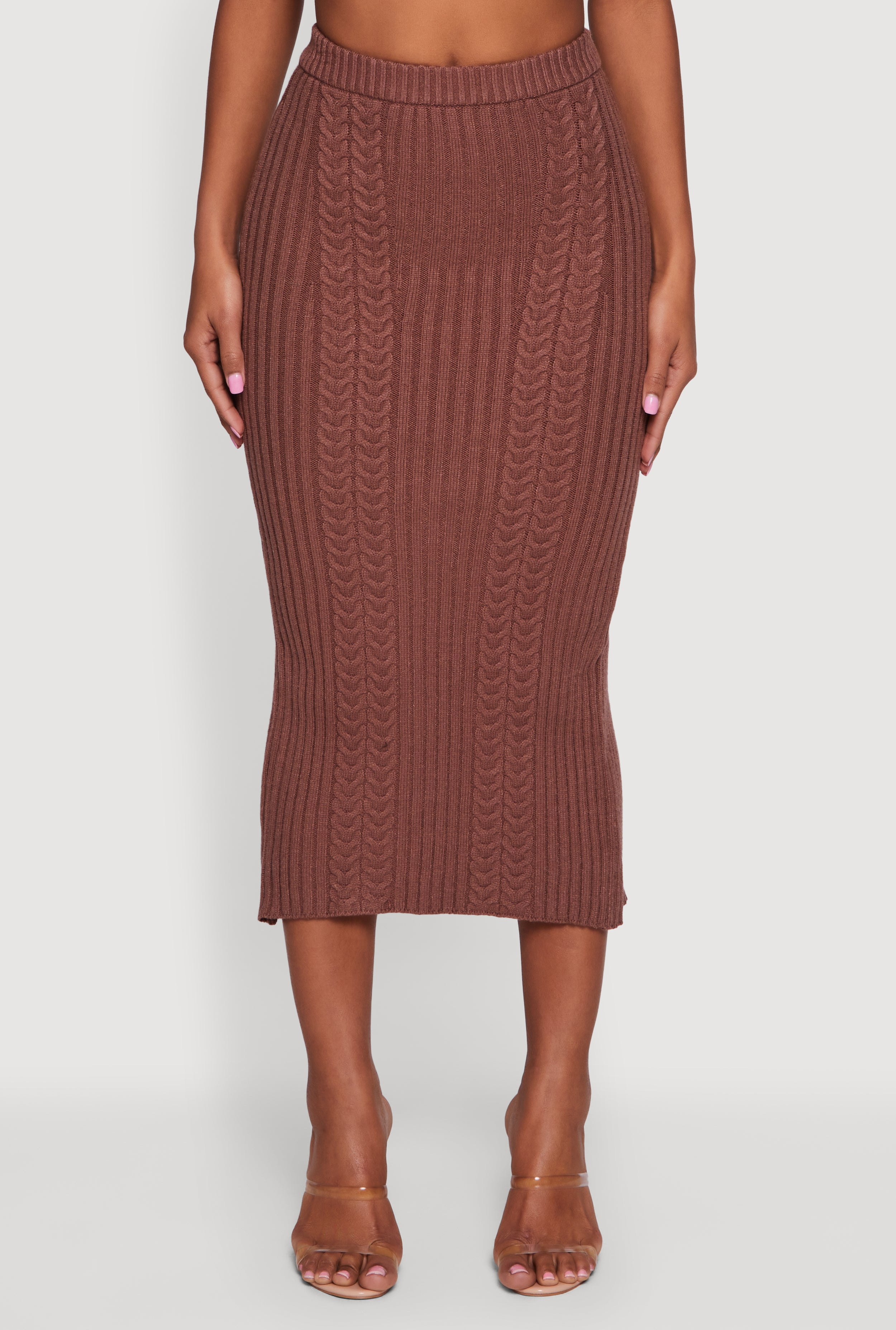 Step up your style game with this Cable Knit Slit Back High Waisted Pencil Skirt. Designed to hug your curves in all the right places, this high-waisted, mid-length skirt combines cozy cable and ribbed knit textures for a chic yet casual look. The subtle slit at the back adds a flirty touch while keeping your moves unrestricted. Perfect for effortless everyday wear or dressing up for a laid-back night out.