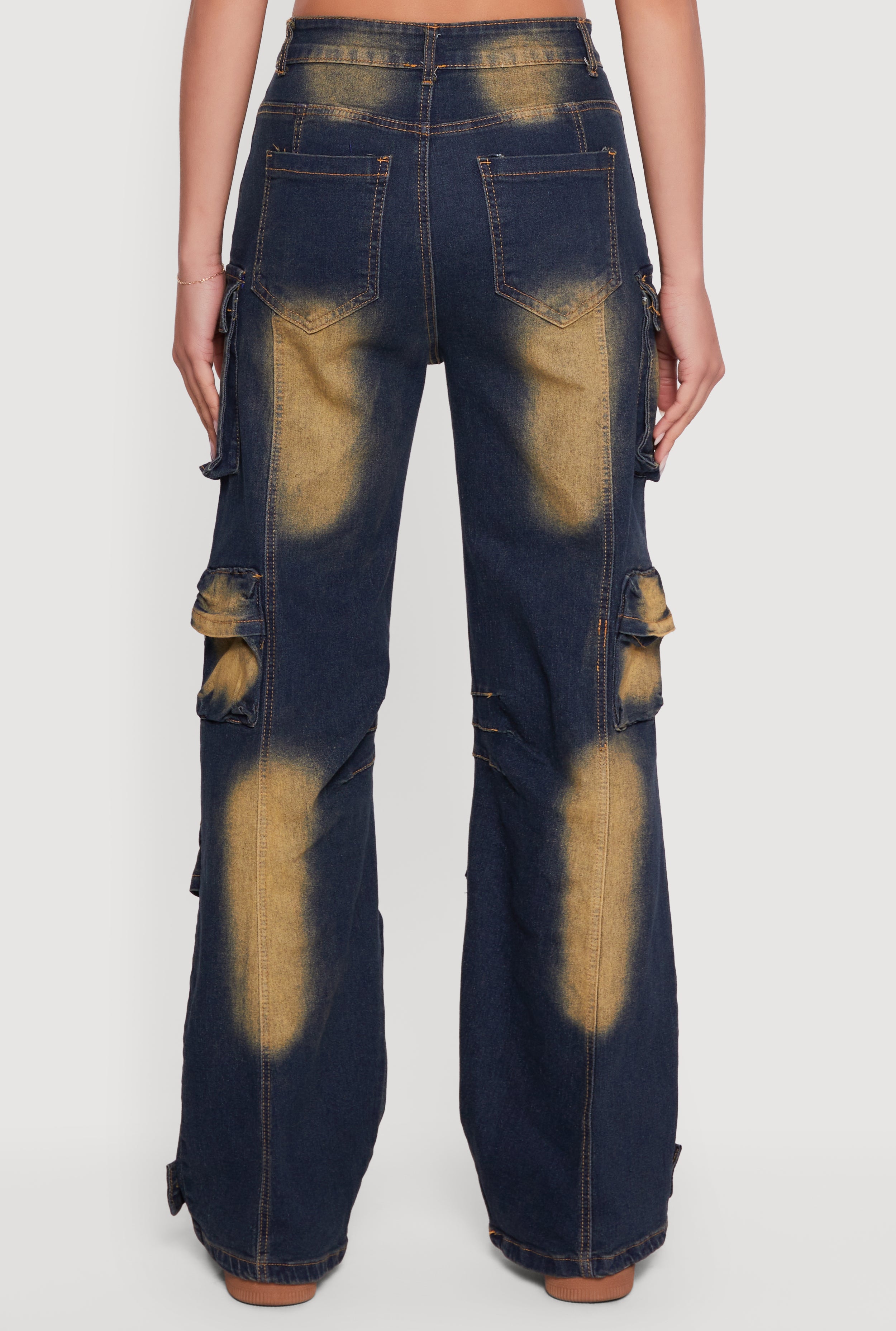 Step up your casual game with these Bleached Detail Mid Rise Wide Leg Cargo Pocket Jeans. Designed for those who love a laid-back streetwear vibe, these baggy denim jeans combine comfort and style effortlessly. The mid rise fit flatters your waist while the wide-leg silhouette adds a cool, relaxed touch. Bleached detailing and cargo pockets bring trendy, functional flair perfect for everyday adventures.