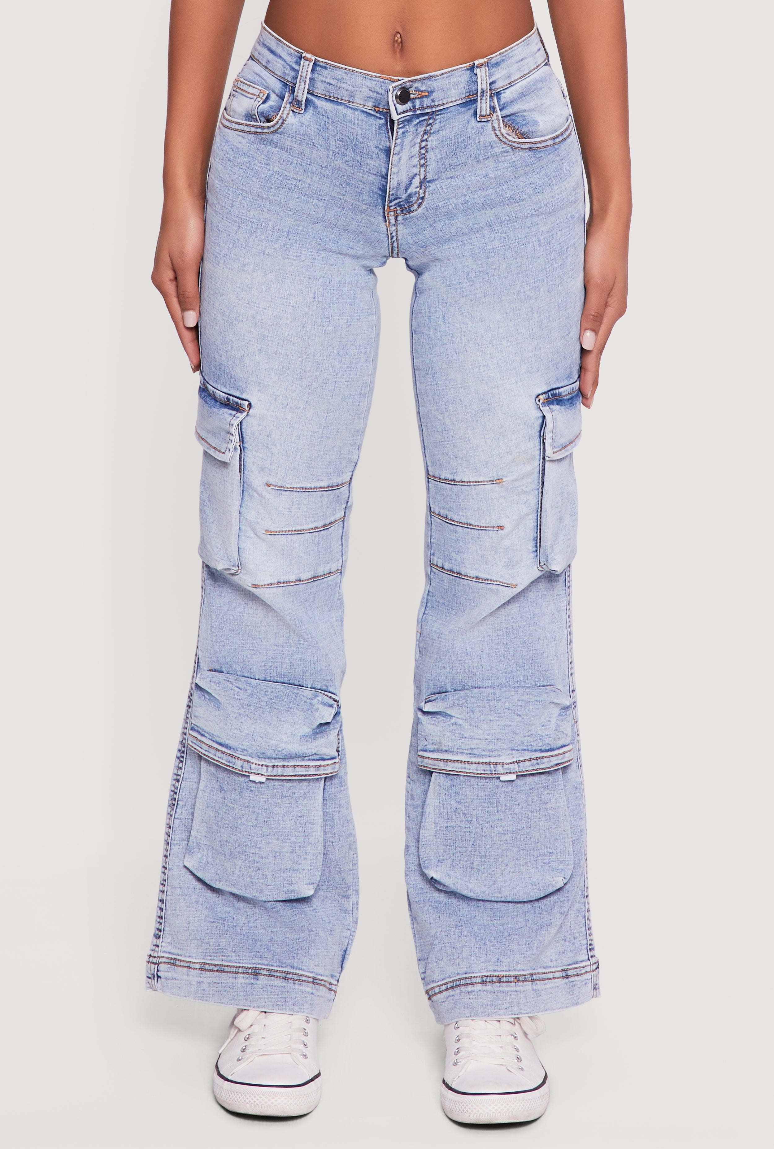 Step up your casual game with these Stone Wash Cargo Pocket Flare Leg Jeans. Designed for effortless streetwear vibes, they feature a relaxed fit and mid-rise waist that flatters every shape. The flare leg adds a trendy twist while the cargo pockets bring both style and function. Made from comfortable denim with subtle whiskering and decorative stitching, these jeans are perfect for everyday adventures or laid-back hangouts.