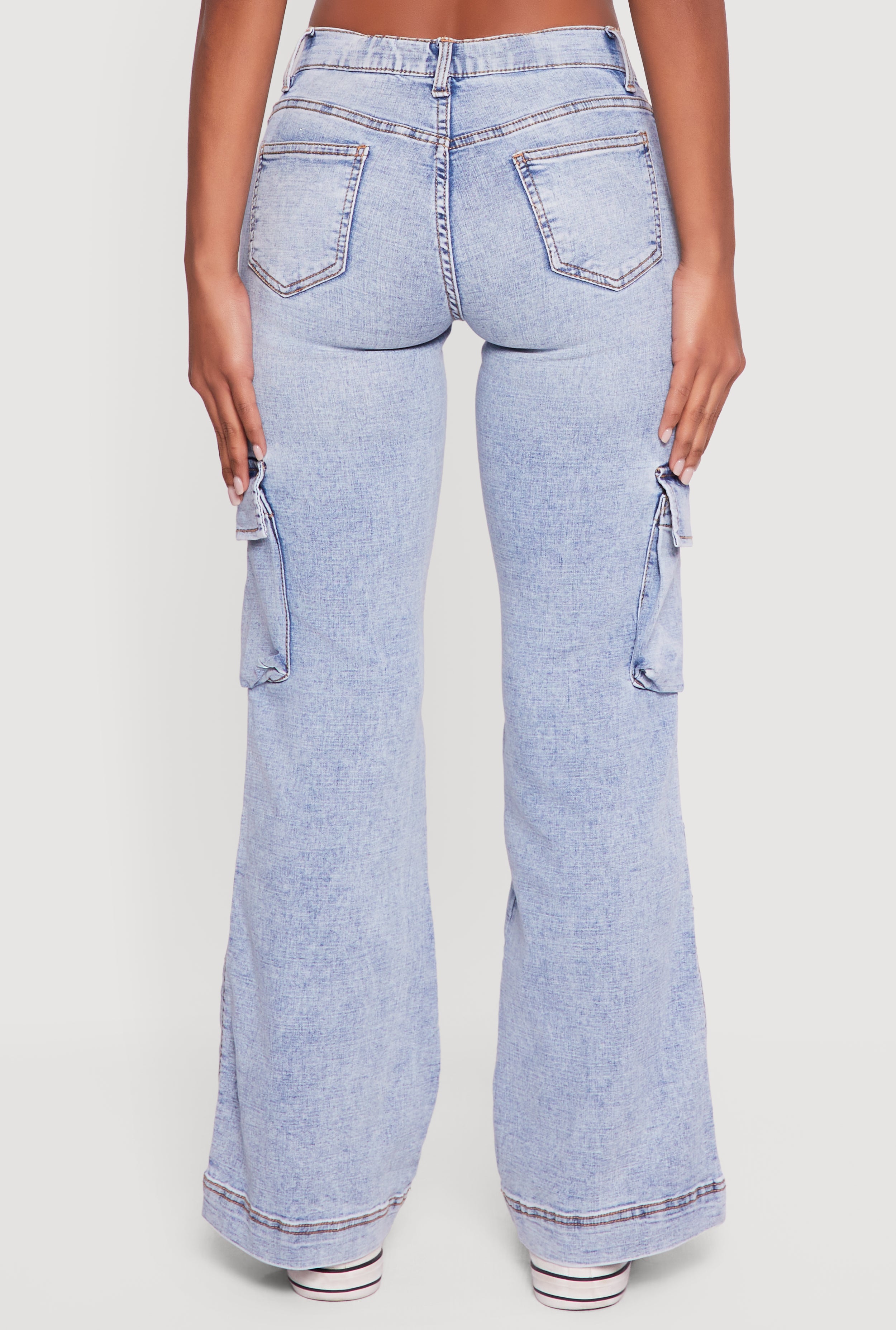 Stone Wash Cargo Pocket Flare Leg Jeans