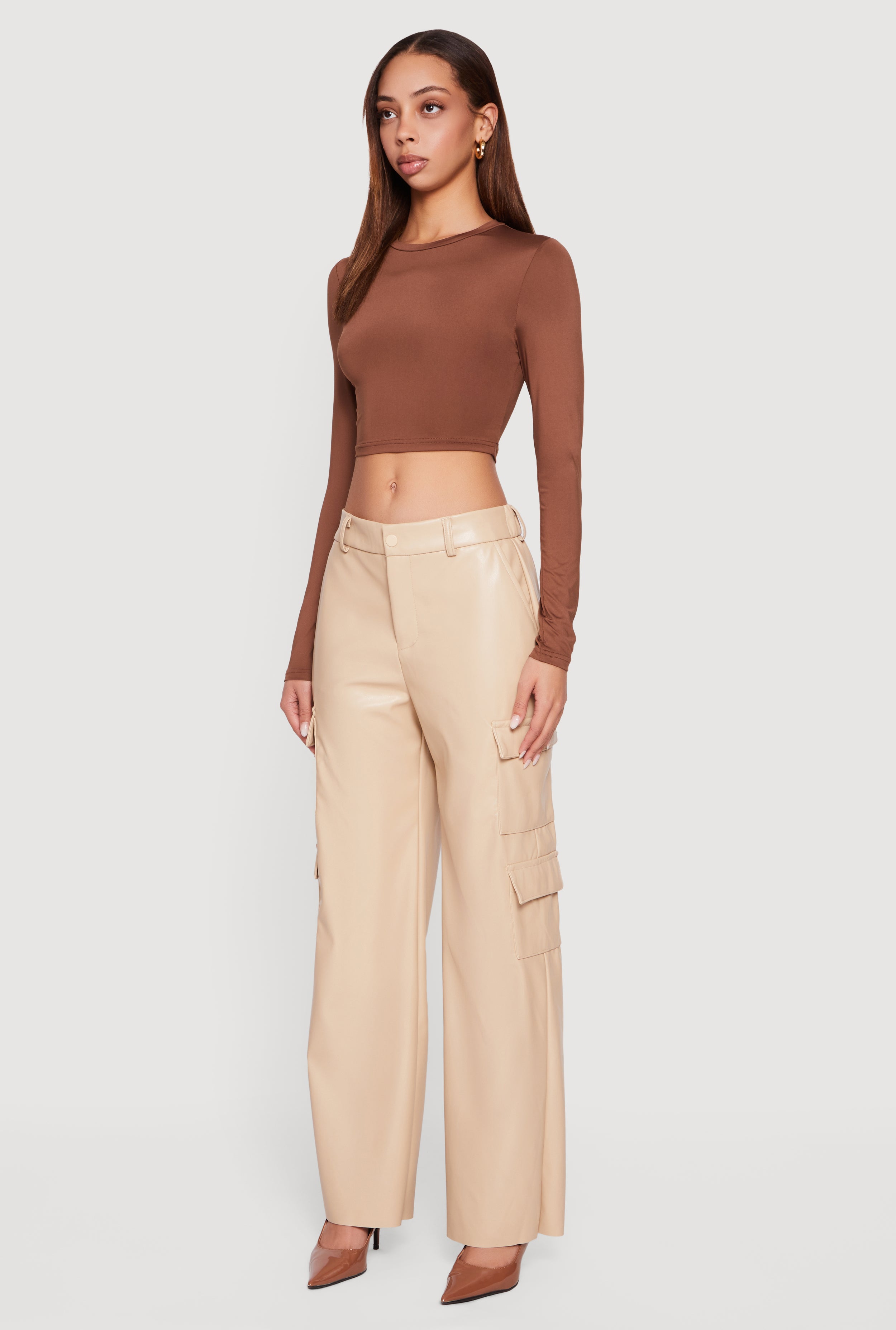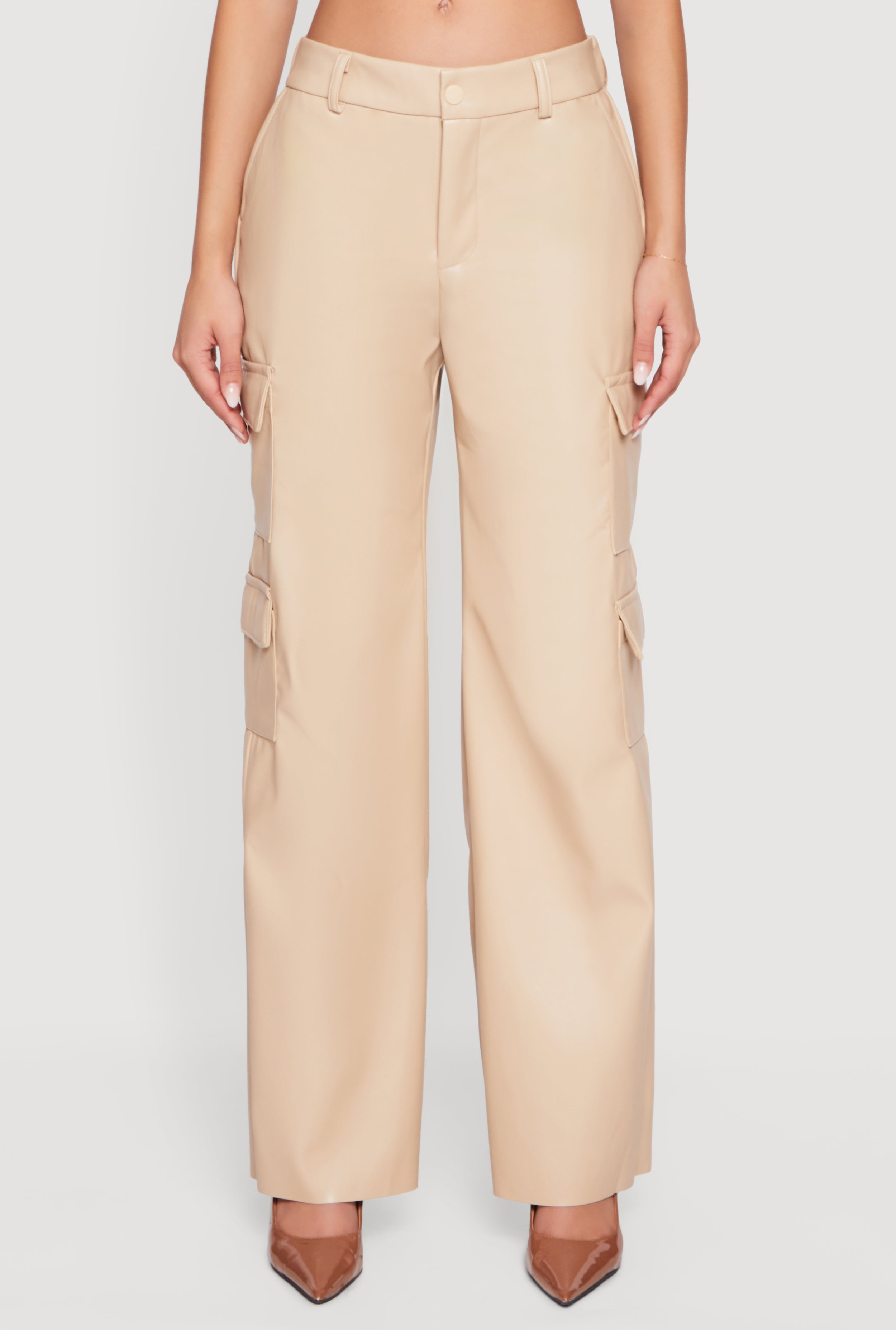 Step up your style game with these Faux Leather Straight Leg Utility Pants. Designed with a mid-rise and classic straight leg fit, they blend edgy faux leather with cozy fleece lining for all-day comfort. The snap closure and utility-inspired cargo pockets add a cool, casual vibe perfect for everyday wear. Whether you're heading out with friends or running errands, these pants bring effortless style and practicality together.
