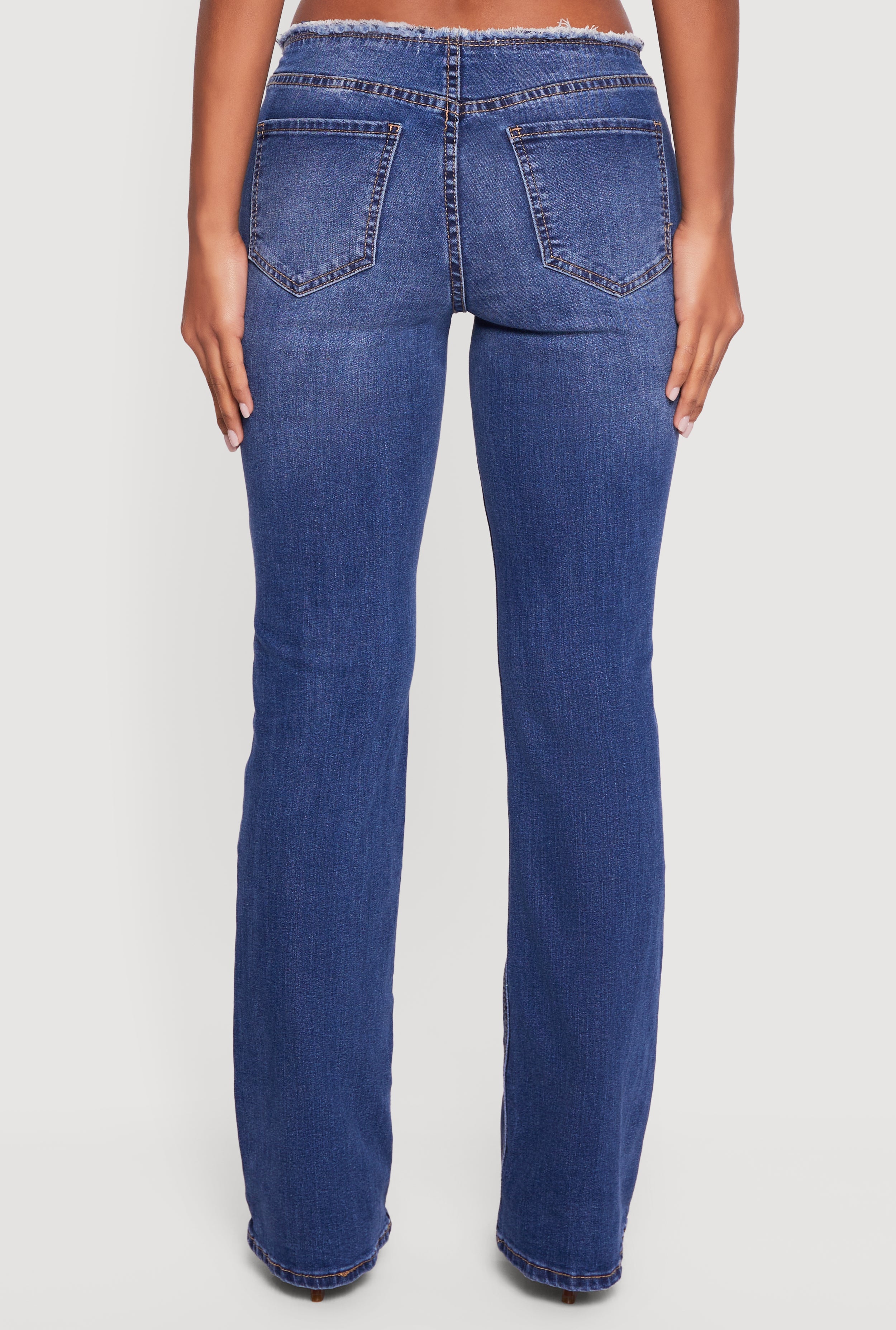 Step out in style with the Almost Famous Frayed Waistband Slim Leg Jeans, designed to keep your casual look effortlessly cool. These low-rise denim jeans hug your legs with a flattering slim fit, while the unique frayed waistband adds an edgy twist that sets you apart from the crowd. Perfect for everyday wear, they combine comfort and trendiness in one versatile piece.