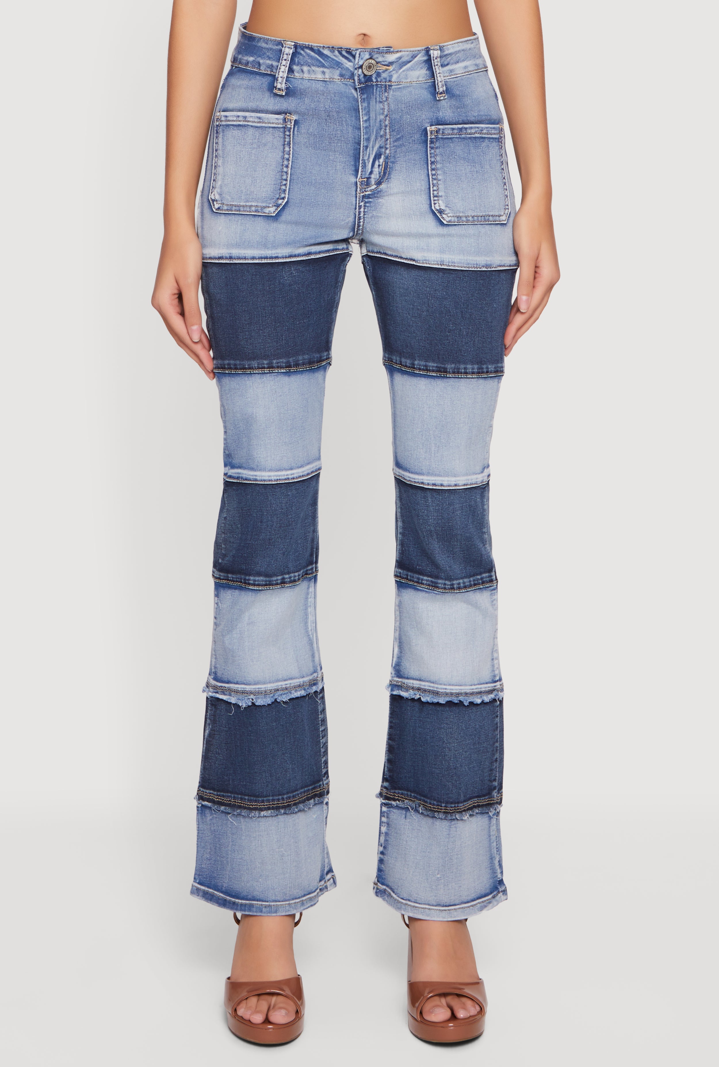 VIP Two Tone Patchwork Flare Jeans