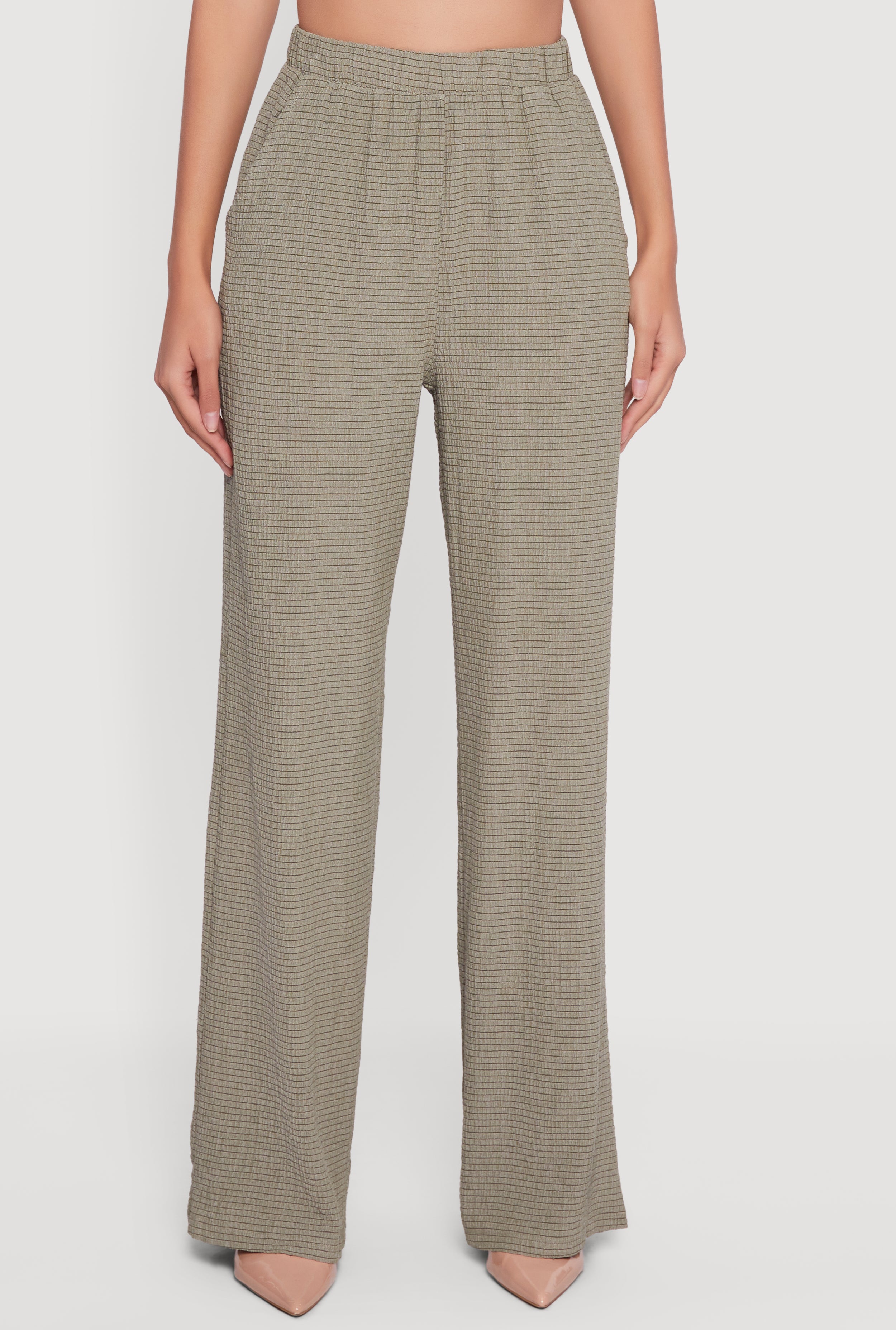 Step into effortless style with these Seersucker High Waisted Pull On Straight Leg Pants. Perfect for casual days when you want to look put together without trying too hard, these pants combine a relaxed fit with a breezy seersucker fabric that keeps you cool and comfy. The high waist flatters your silhouette while the pull-on design makes getting dressed a breeze. Plus, handy pockets add a practical touch for your essentials. Whether you're running errands or meeting friends, these pants are your new go-to for easy, everyday chic.