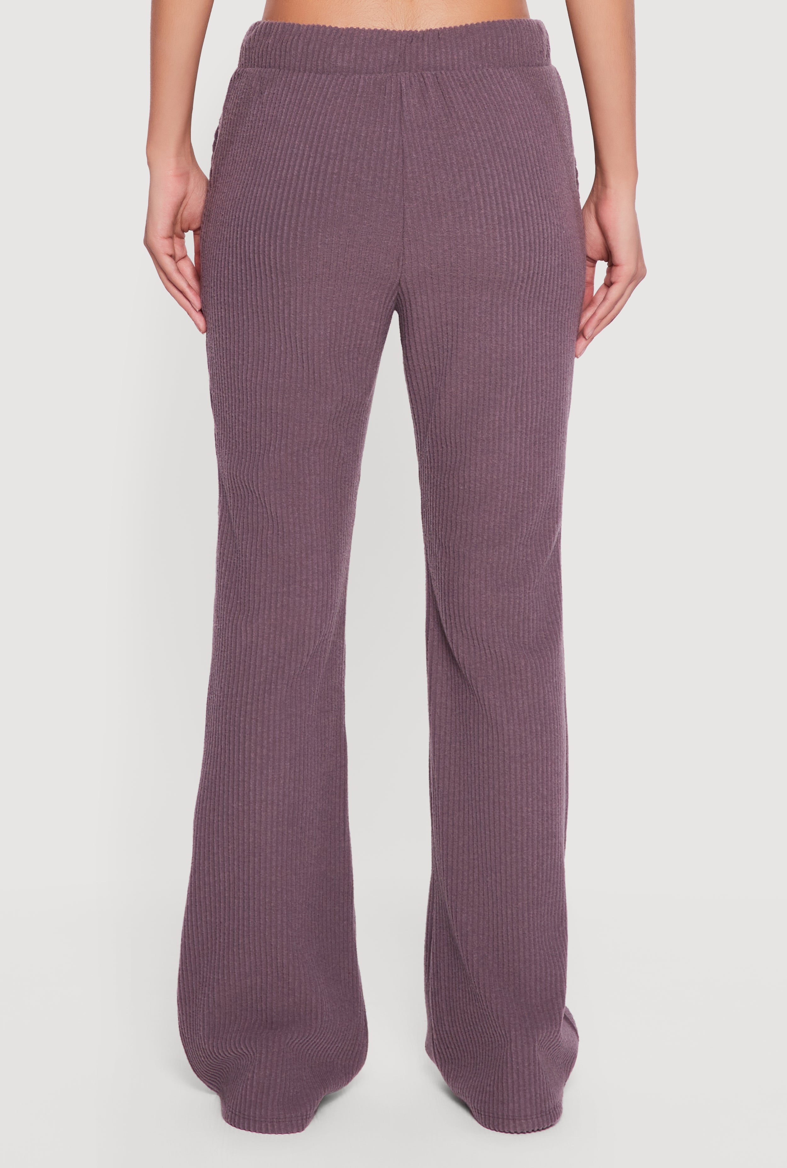 Brushed Rib Knit High Waisted Flare Leg Pants