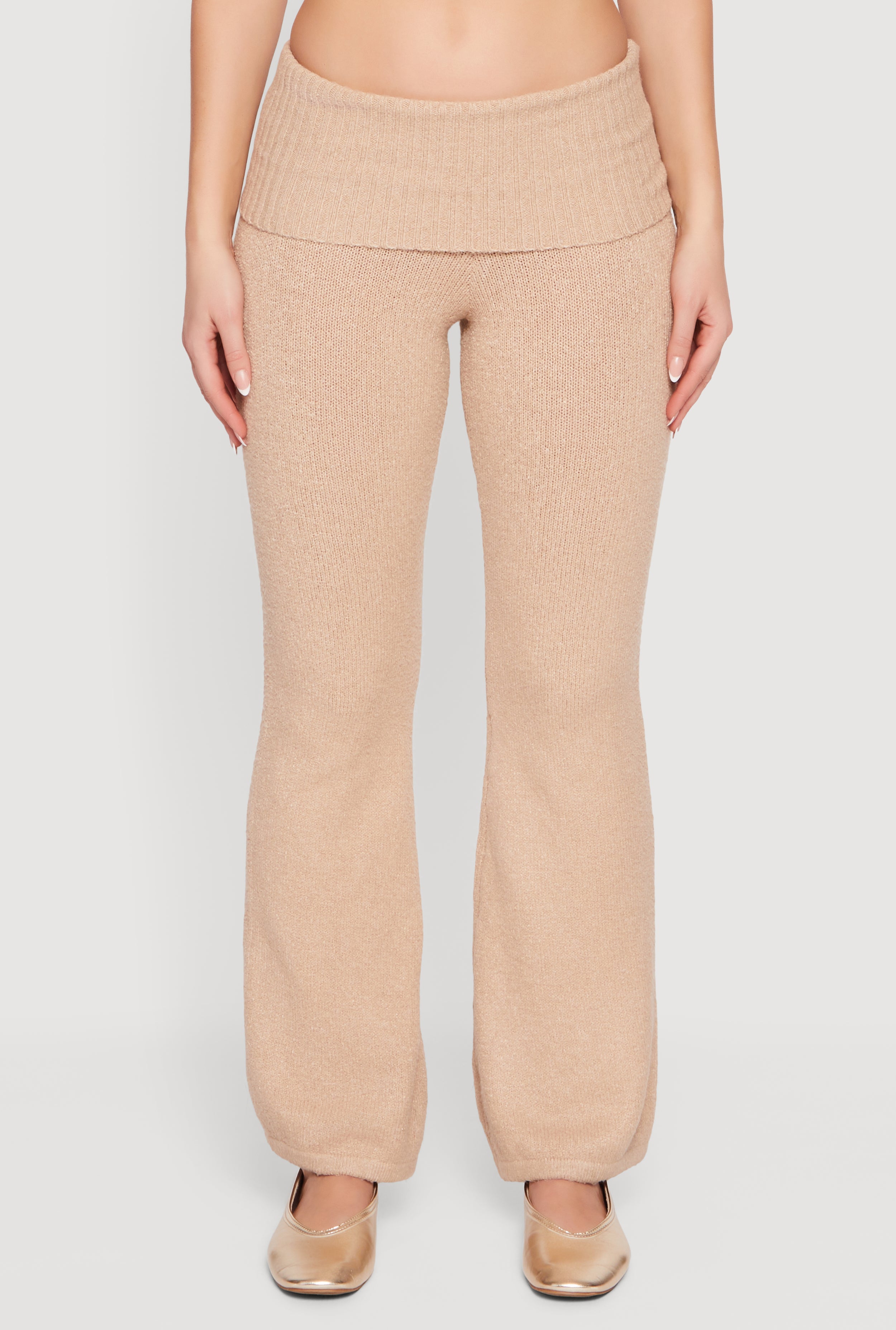 Slip into ultimate comfort with the Knitted Flare Leg Fold Over Pants from Almost Famous. These casual, mid-rise pants feature a classic fit and a trendy flare leg that effortlessly elevates your loungewear game. Perfect for chilling at home or running errands in style, their solid color makes them easy to pair with your favorite tops. The fold-over waistband adds a playful touch and customizable fit, making these pants a must-have for your everyday wardrobe.