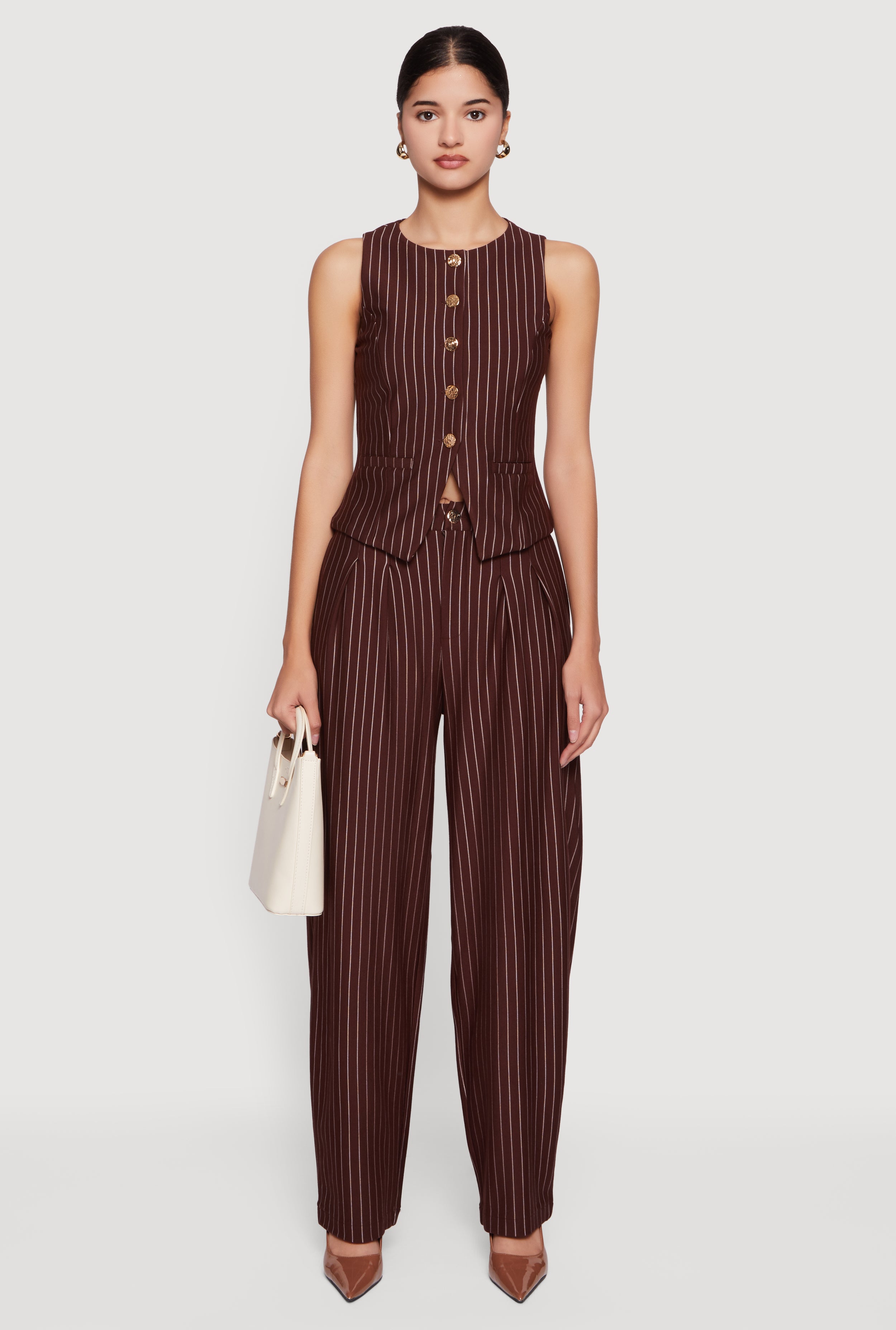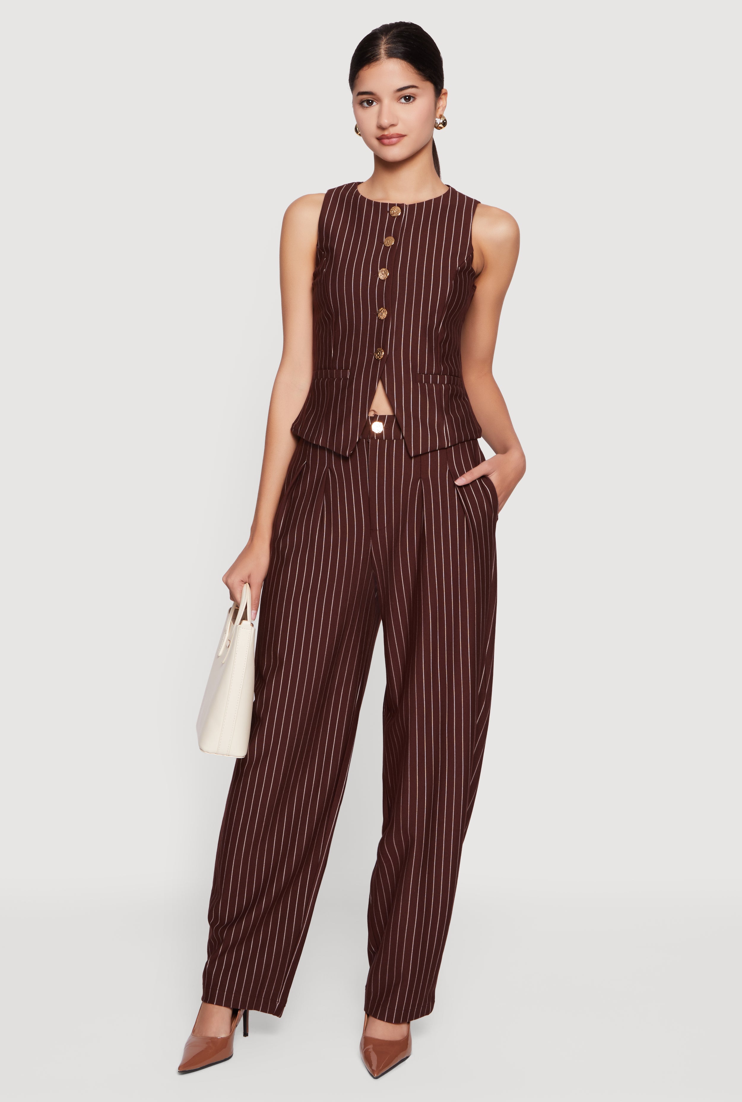 Pinstriped High Waisted Pleated Dress Pants