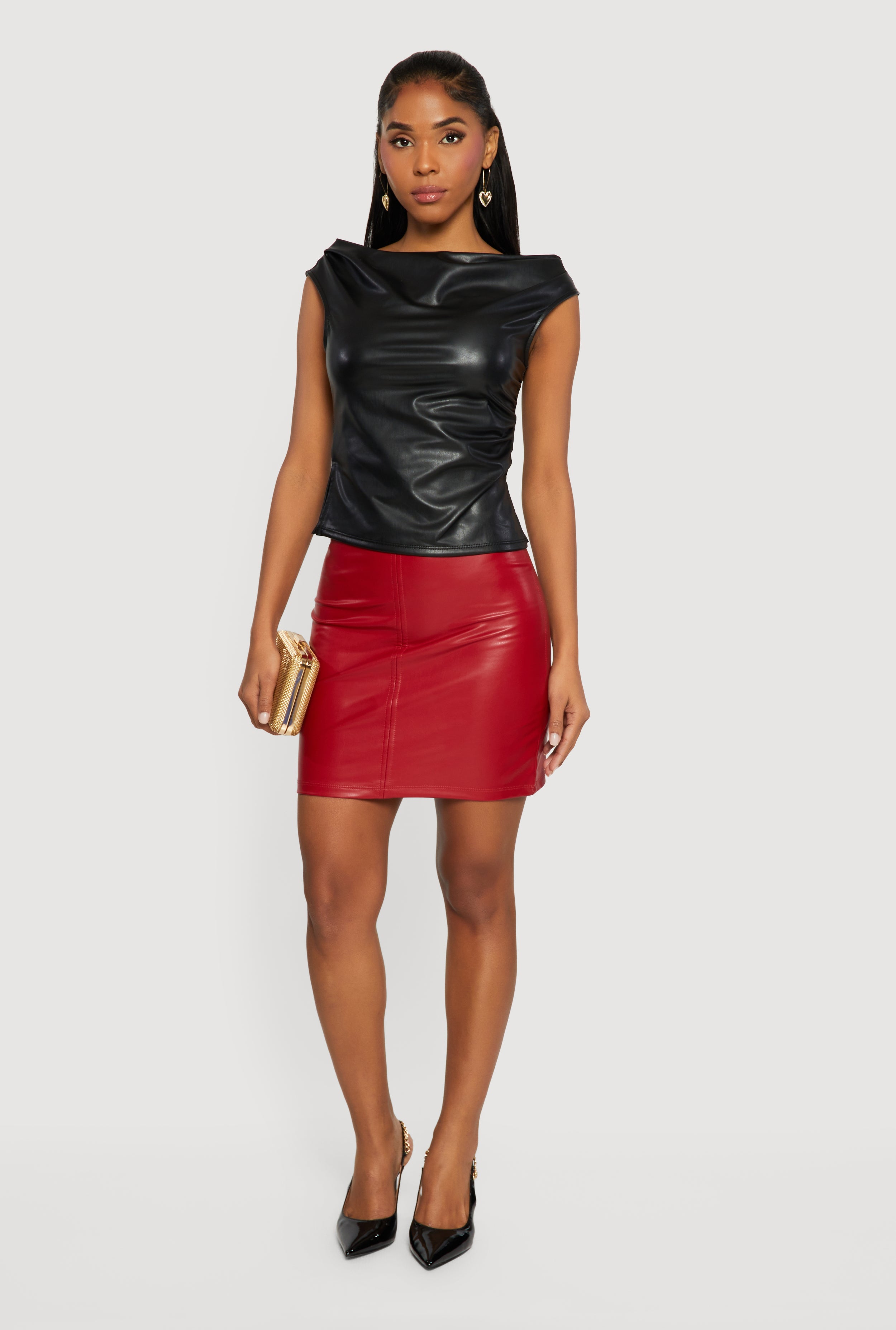 Faux Suede High Waisted Pull On Mini Pencil Skirt
