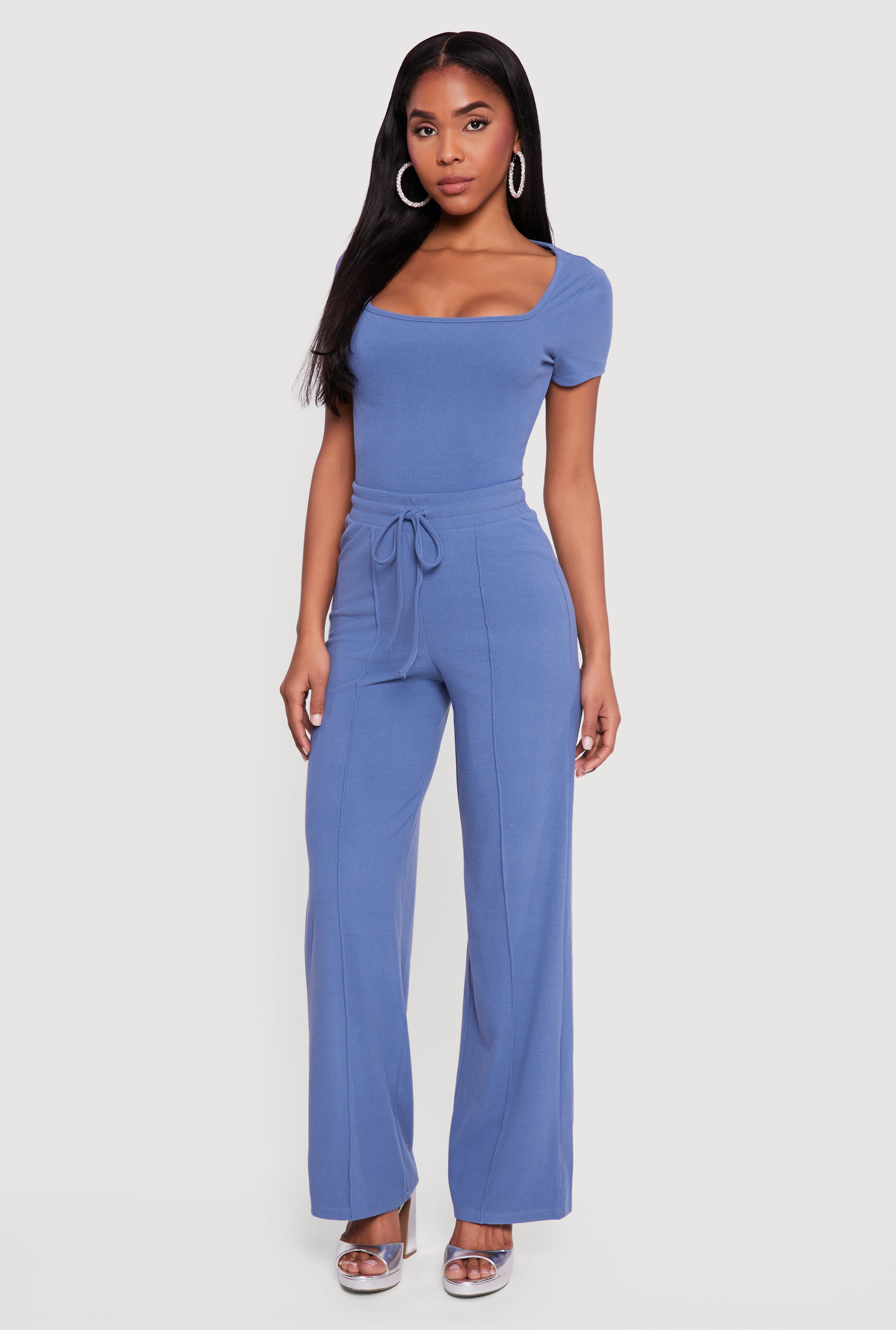 Ribbed Knit Drawstring Waist Pants
