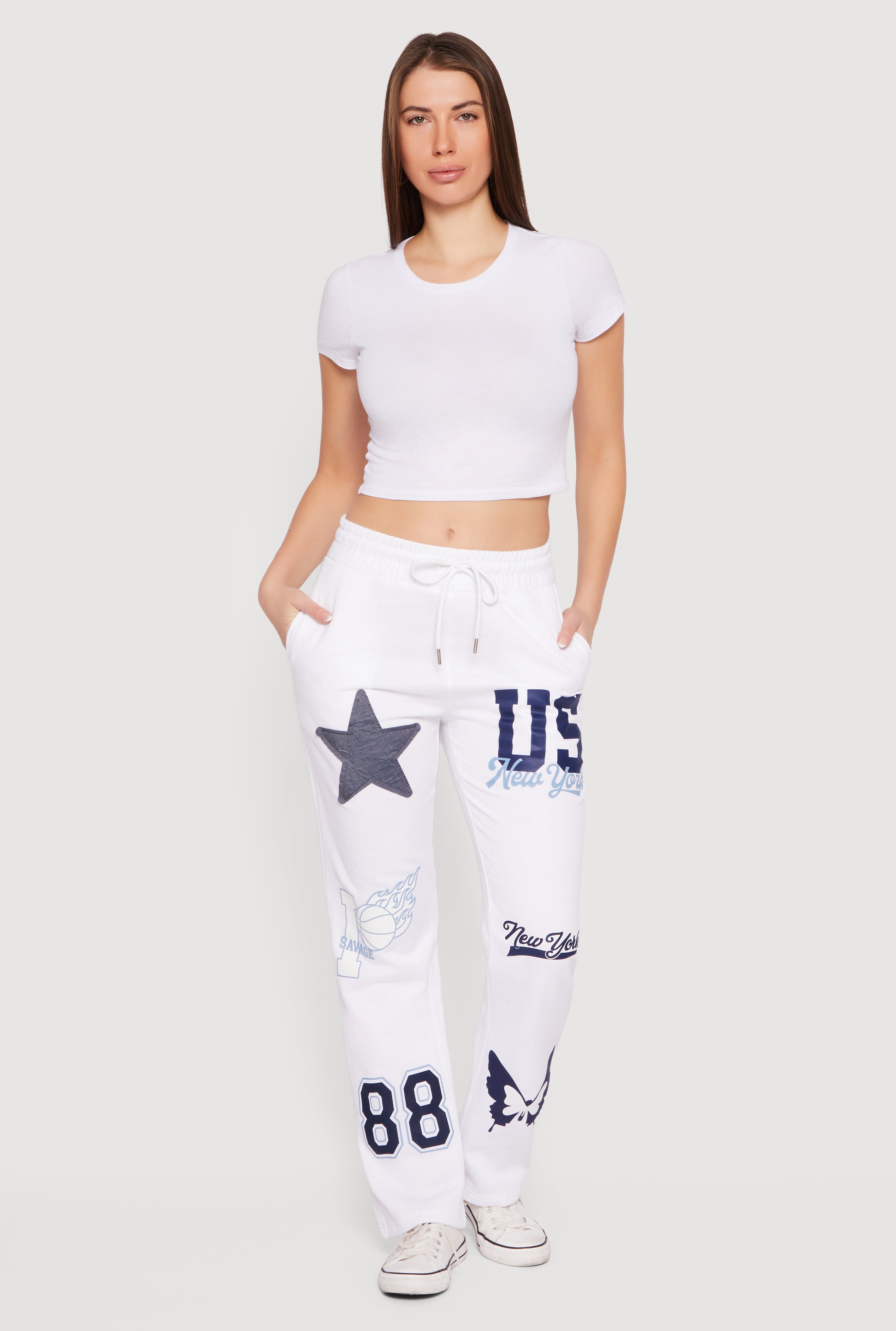 Mid Rise Assorted Patch Graphic Sweatpants